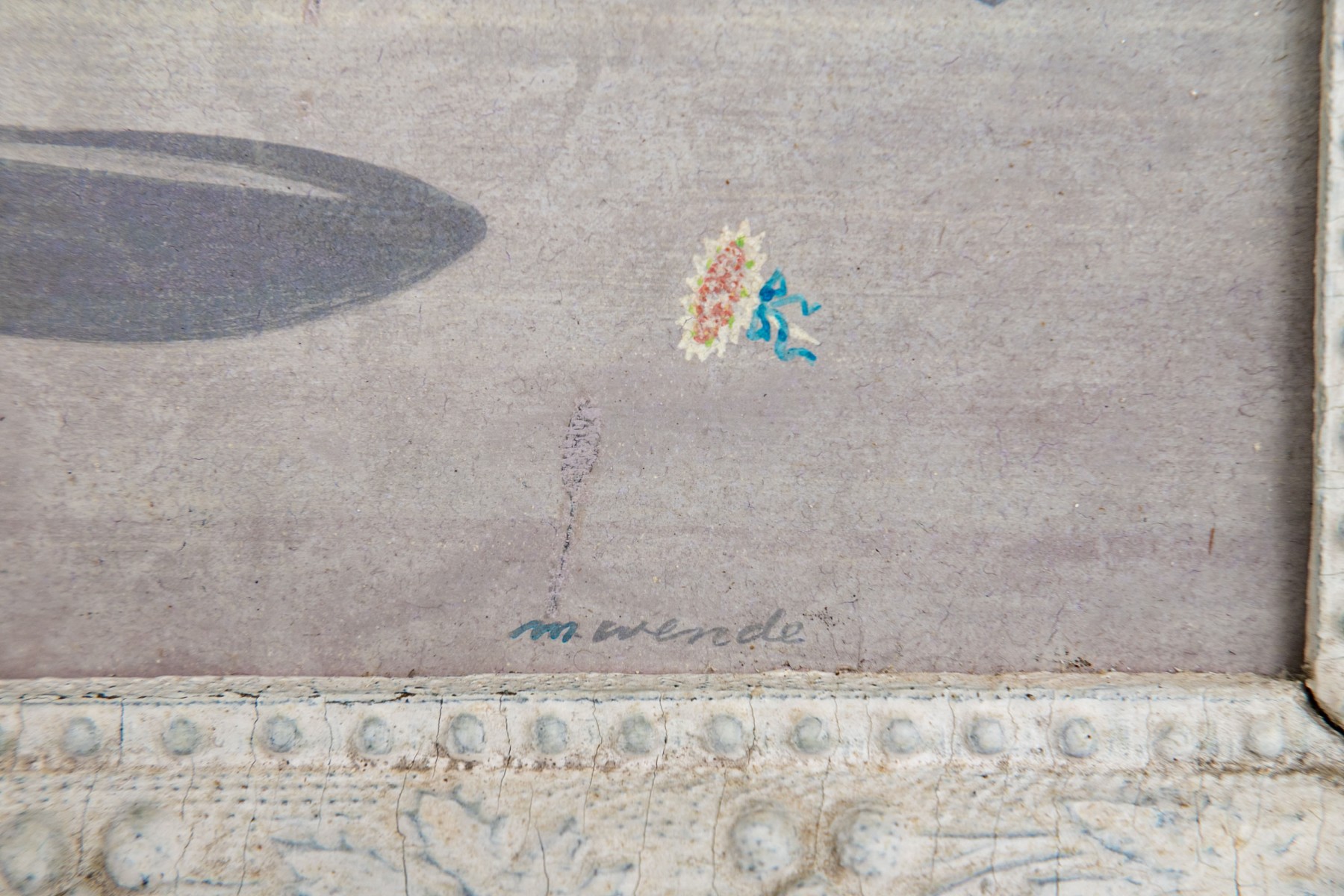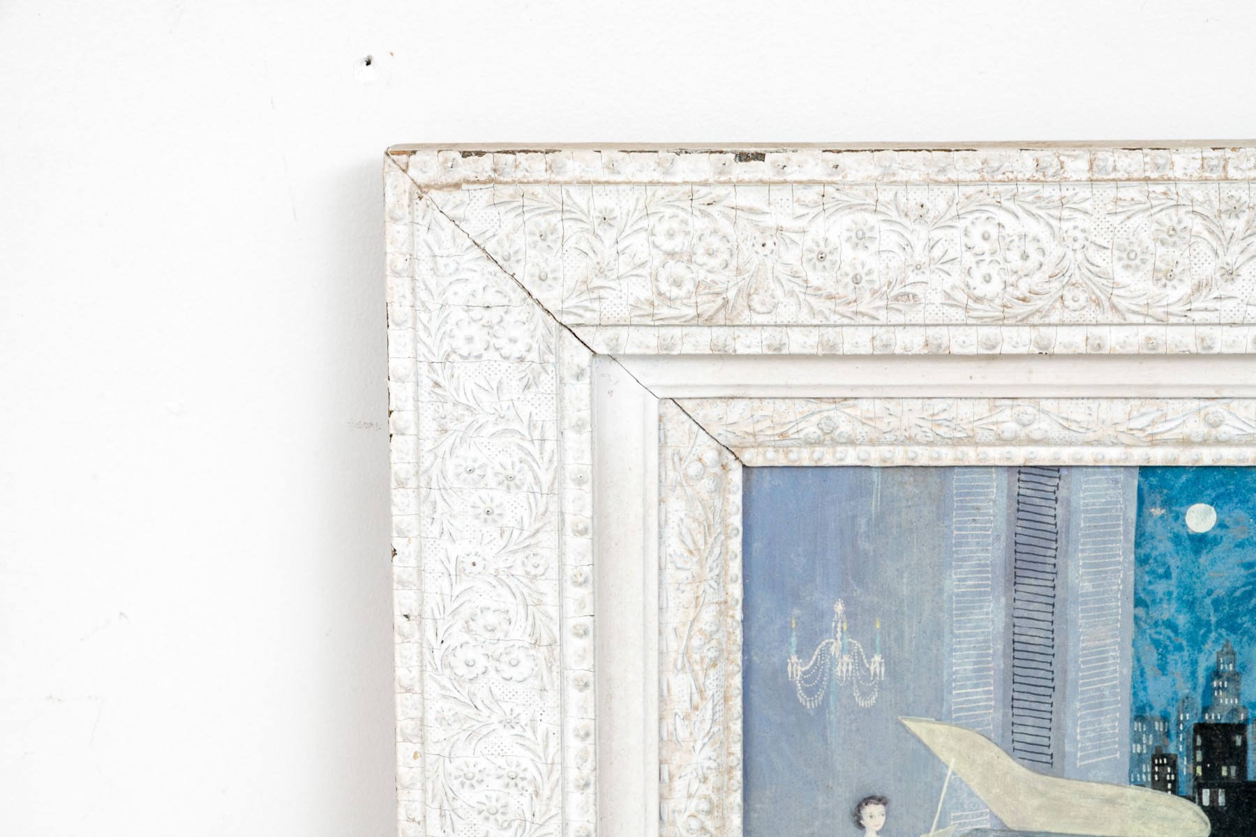 Condition: Craquelure to the painted finish and staining with losses to the corner edges of the frame.