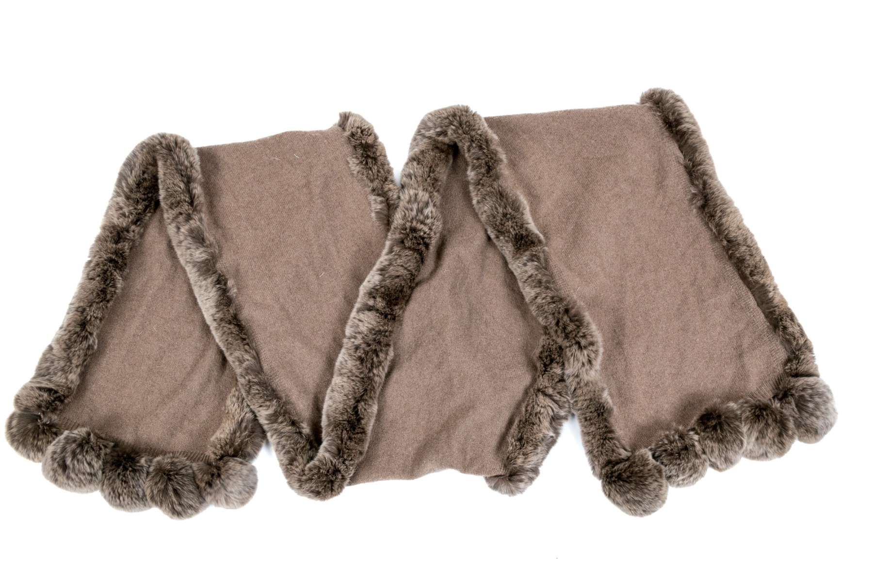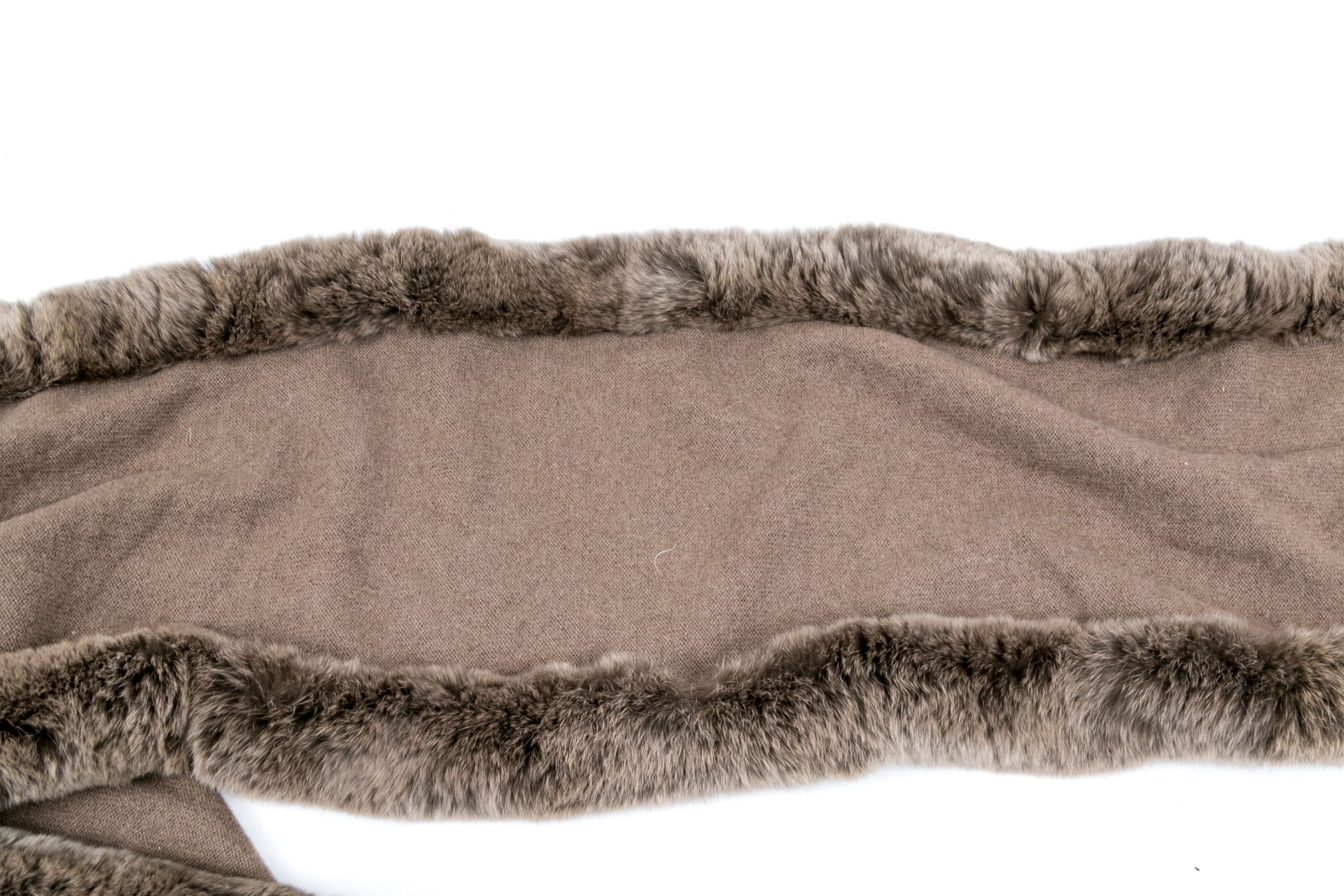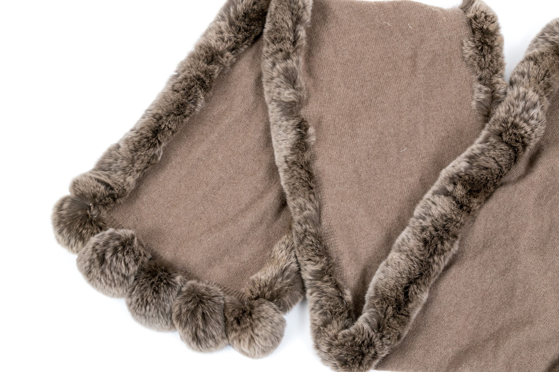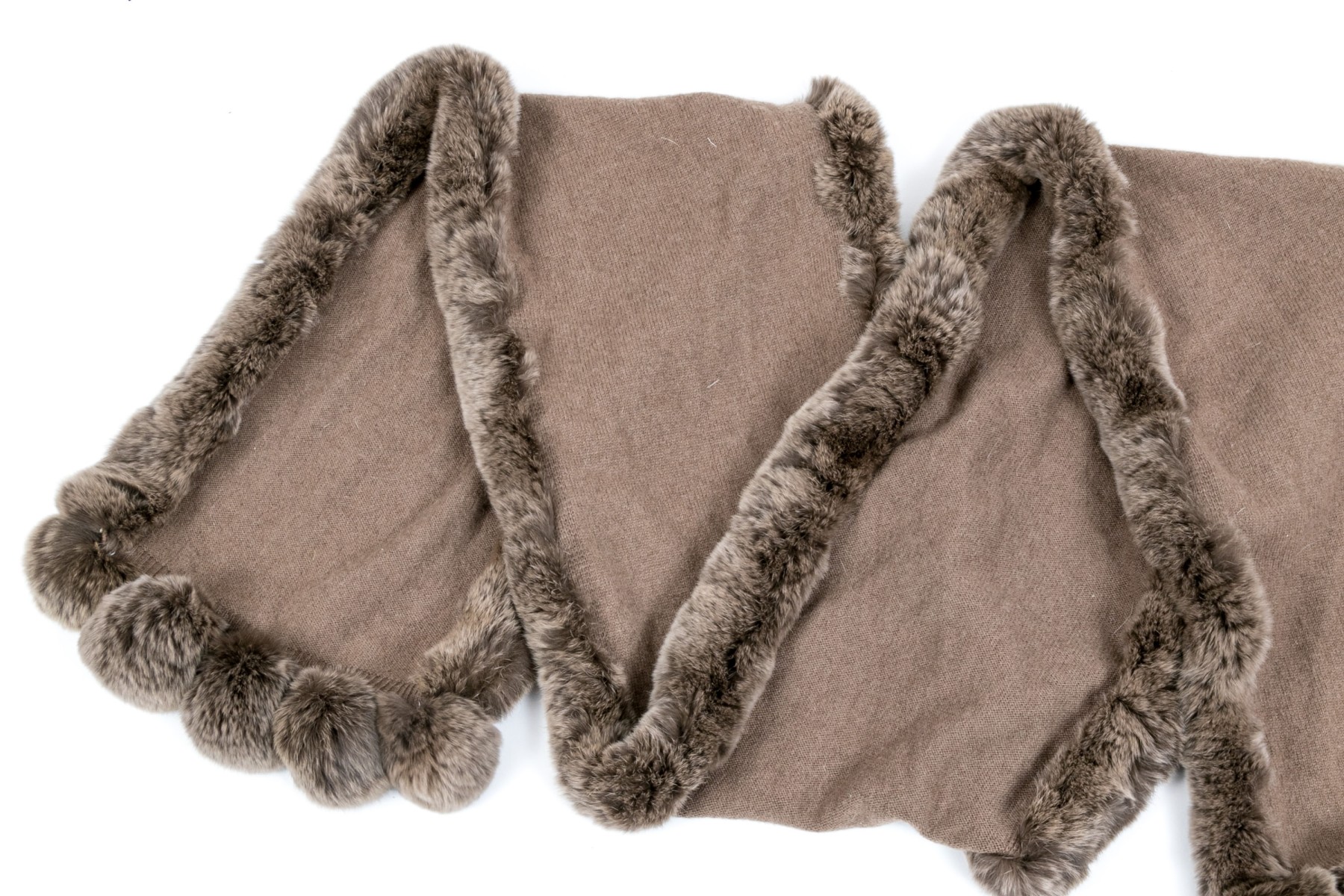 Magaschoni fabulous taupe cashmere and fur trimmed scarf