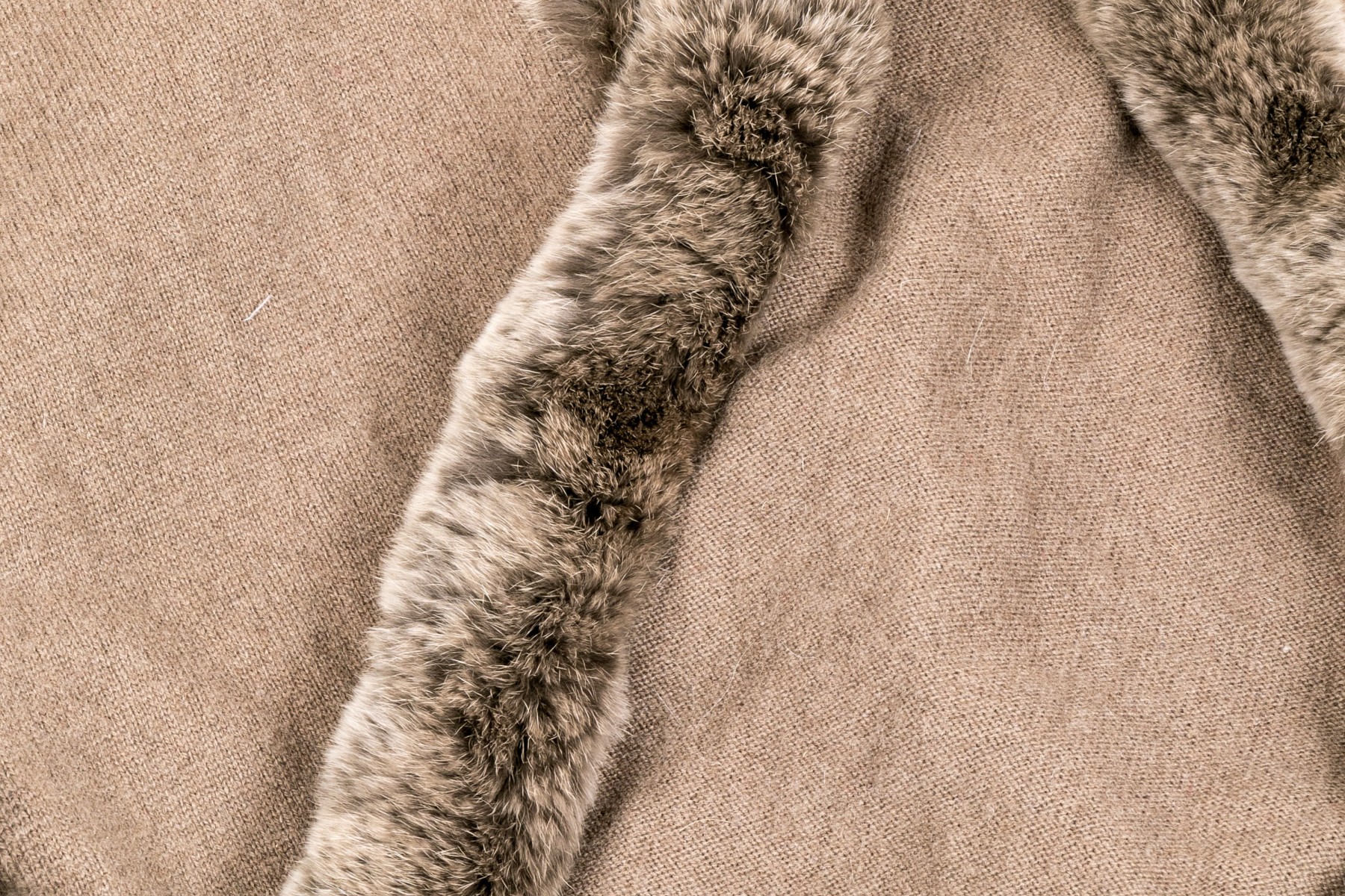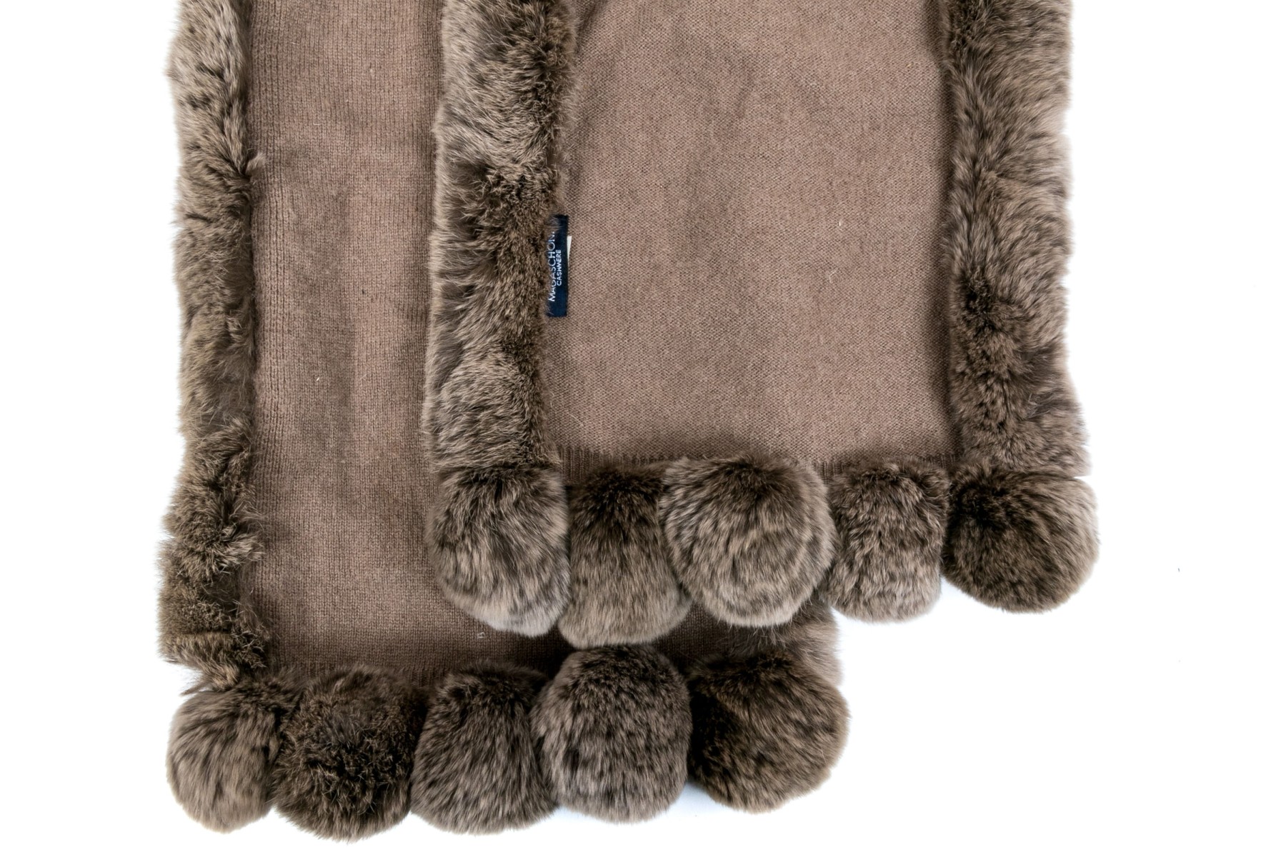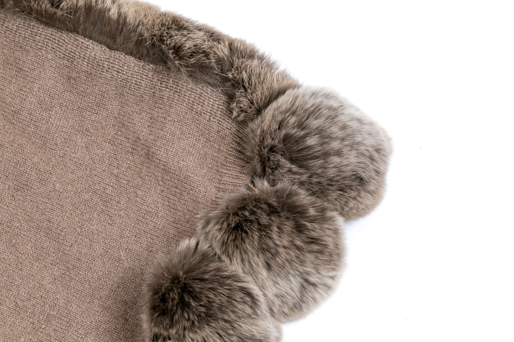 Magaschoni fabulous taupe cashmere and fur trimmed scarf