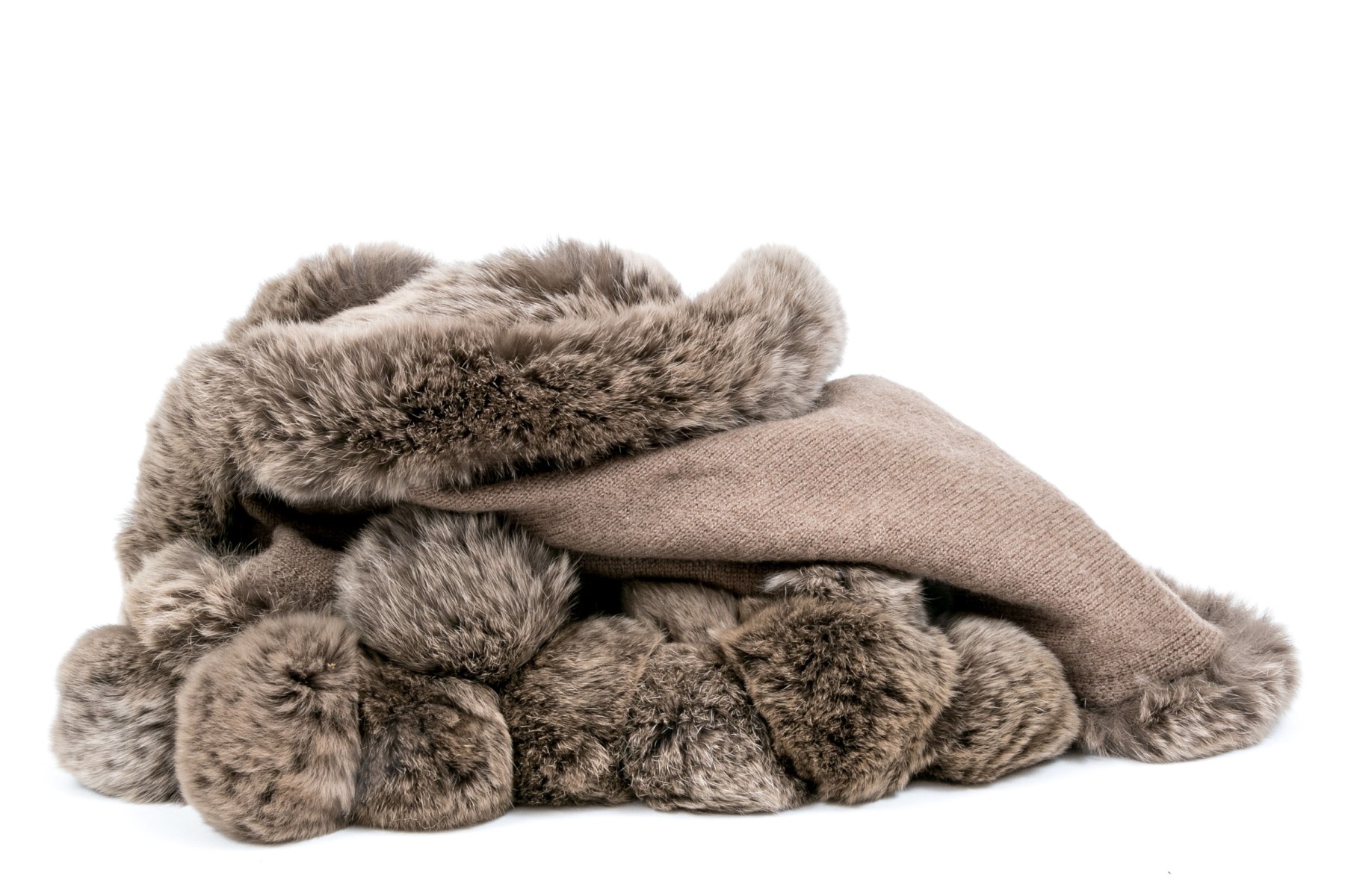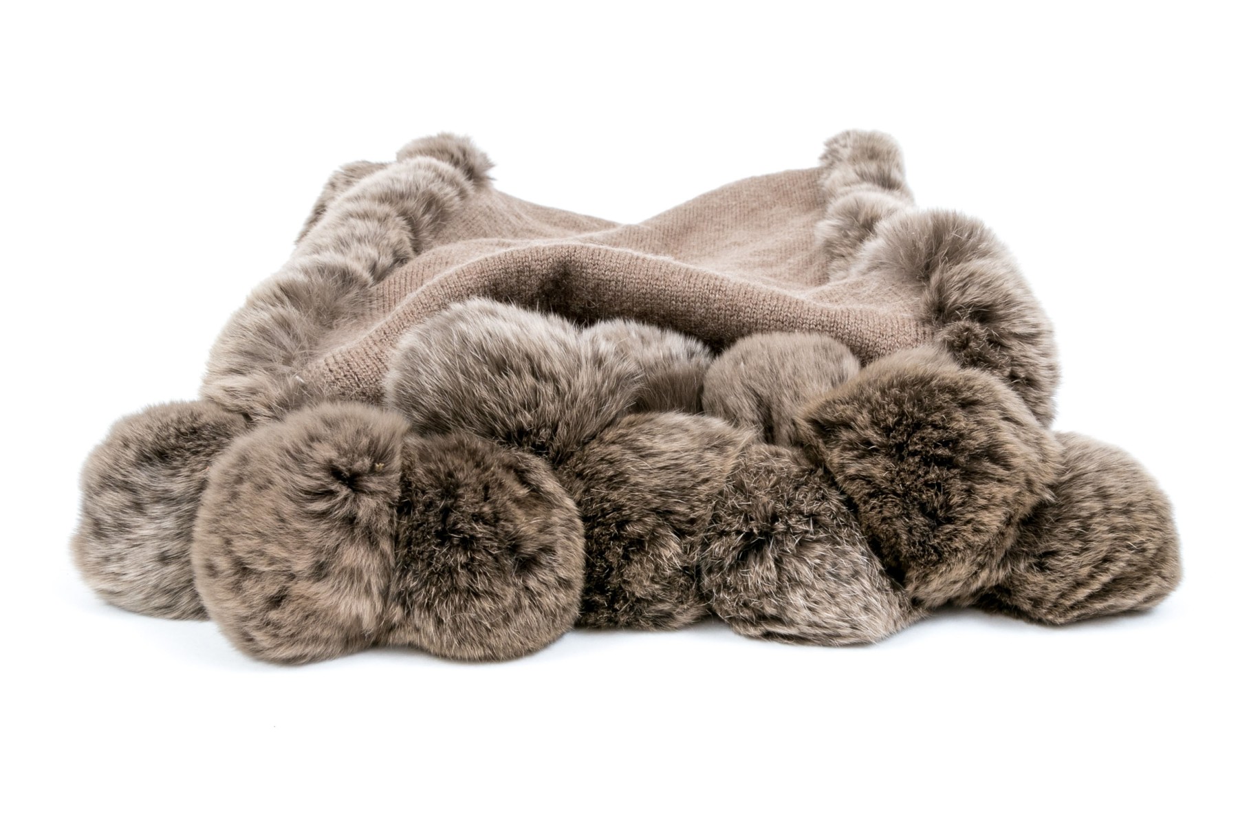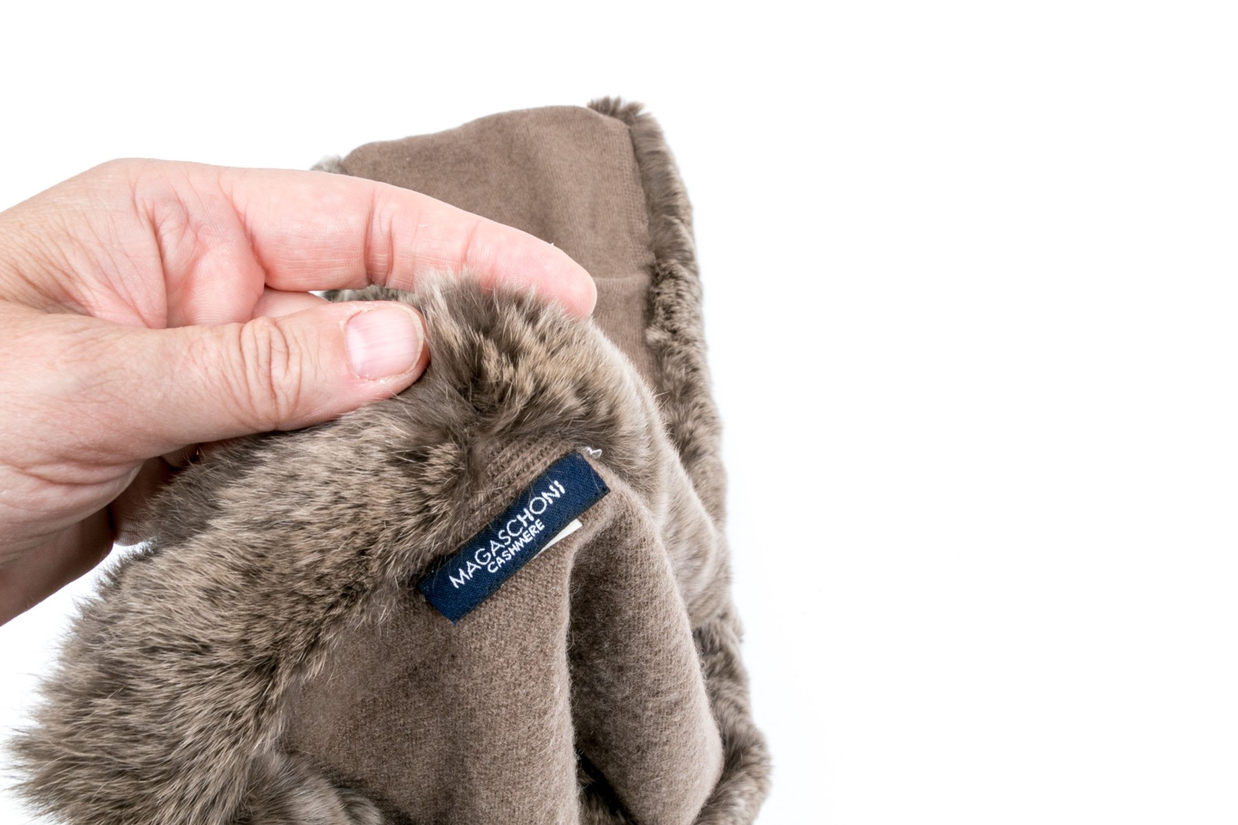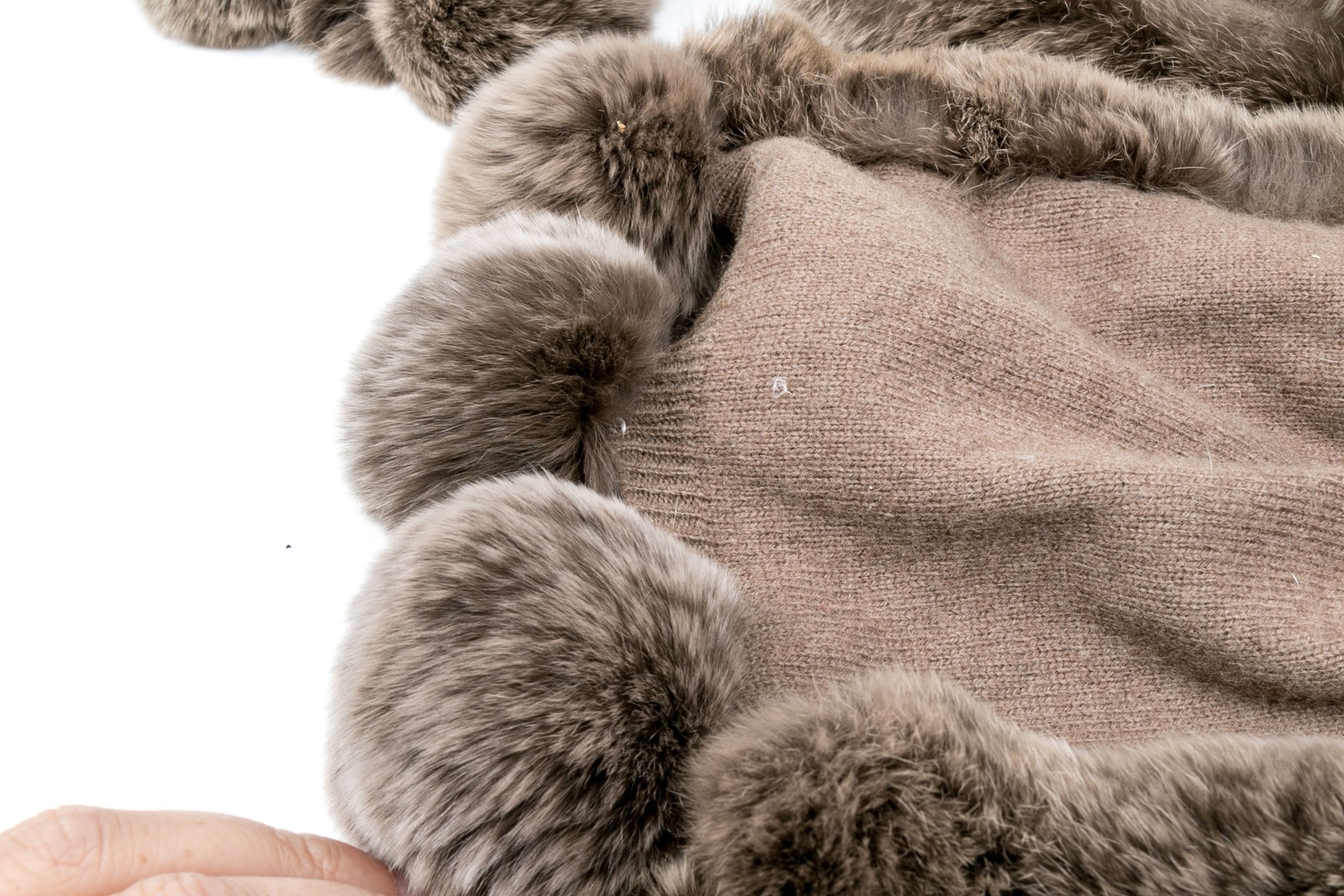 Magaschoni fabulous taupe cashmere and fur trimmed scarf