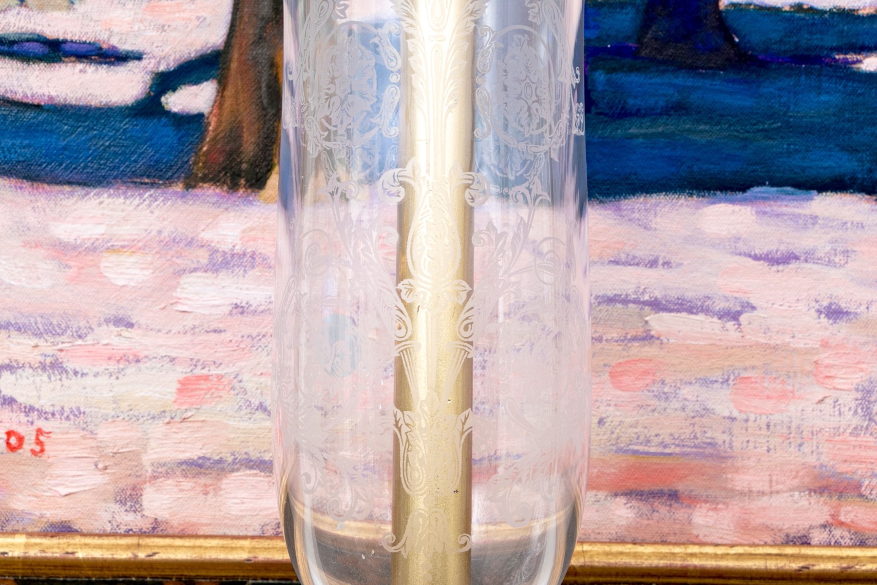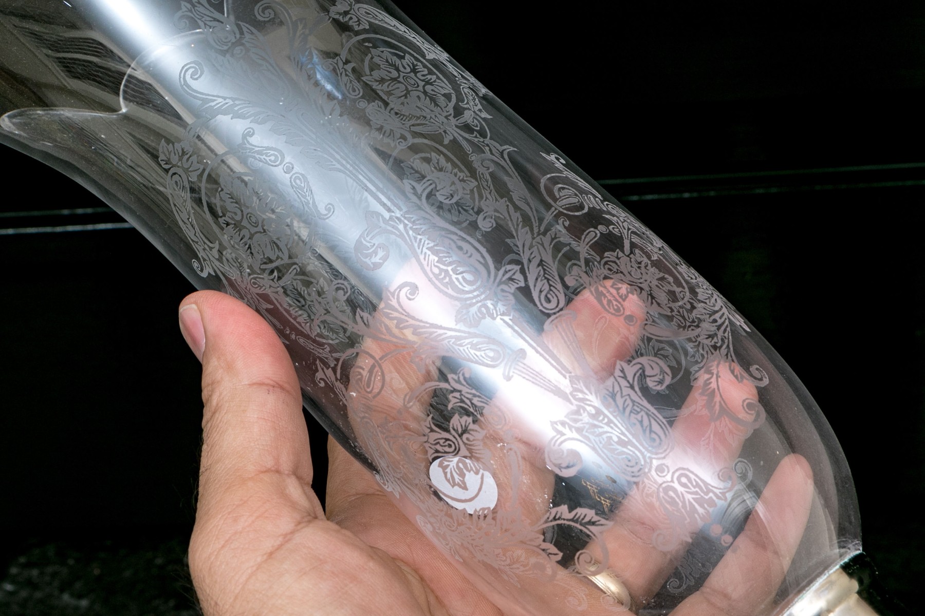 Shades with acid etched decoration. The sticks with swirl fluted motif.