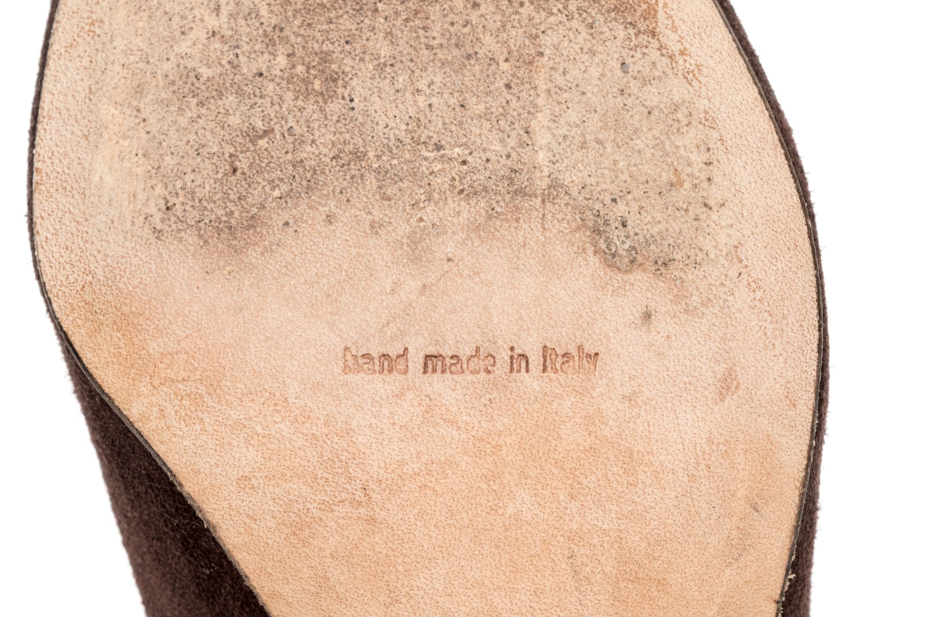 Manolo Blahnik Striking "T" Decorated Brown Suede Pumps, Size 41 1/2 #456459. Black Rock Galleries provides high end estate liquidation services through online estate auctions and a 50,000 sq ft designer showroom. estate liquidator, estate sale, online auction, antiques, fine art, liquidation, clean outs, auction, consignment, interior design, fine jewelry, collectibles, appraisals, estate appraisals, estate services, decor, furniture, furniture consignment, antique center, consignment shop. We offer appraisal services and specialize in fine art, jewelry, antiques and decorative arts. Sell with us. Black Rock Galleries is the tri-state's largest estate liquidator serving New England and the greater New York City area. We are the trusted source for expert appraisals, auction services, estate sales, and consignments. Black Rock Galleries is the east coast's largest and most trusted estate liquidator, with locations in Connecticut, greater Boston, MA and Raleigh, NC, Fairfield, Southport, Apex, TX. We are the best source for expert appraisals, auction services, estate sales and consignments. We have served thousands of families and estates with compassion, professionalism and expertise. BRG works with attorneys, executors, realtors and families to bring the greatest return on personal and estate property in the current market. Our unique combination of services make us the easy choice to get the job done in a timely and stress-free manner. We are with you from the initial consultation to the final clean out. Our house-built online auction software platform offers clients a dynamic approach to liquidating their personal property. This venue is most successful in bringing the best return with the least amount of disruption for our clients. See our services page for a complete description of this offering. Manolo Blahnik Striking "T" Decorated Brown Suede Pumps, Size 41 1/2 #456459