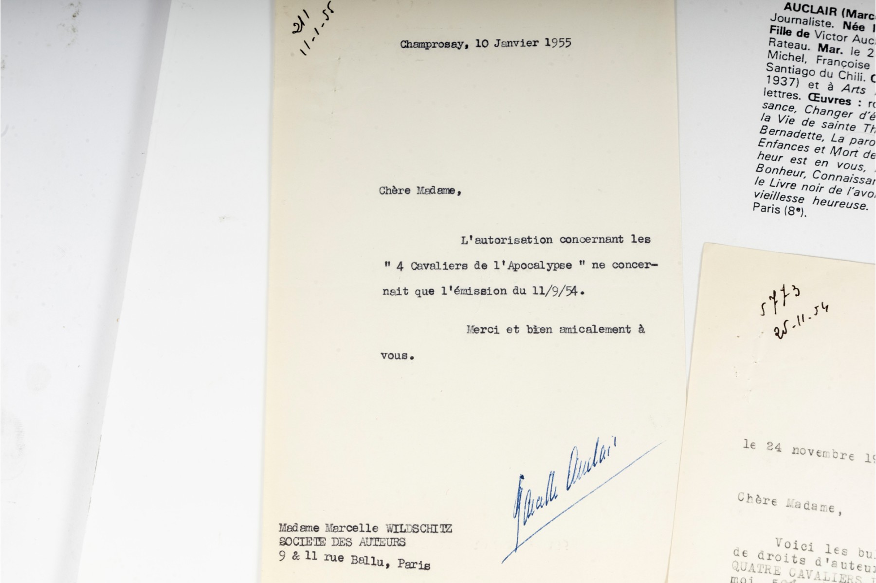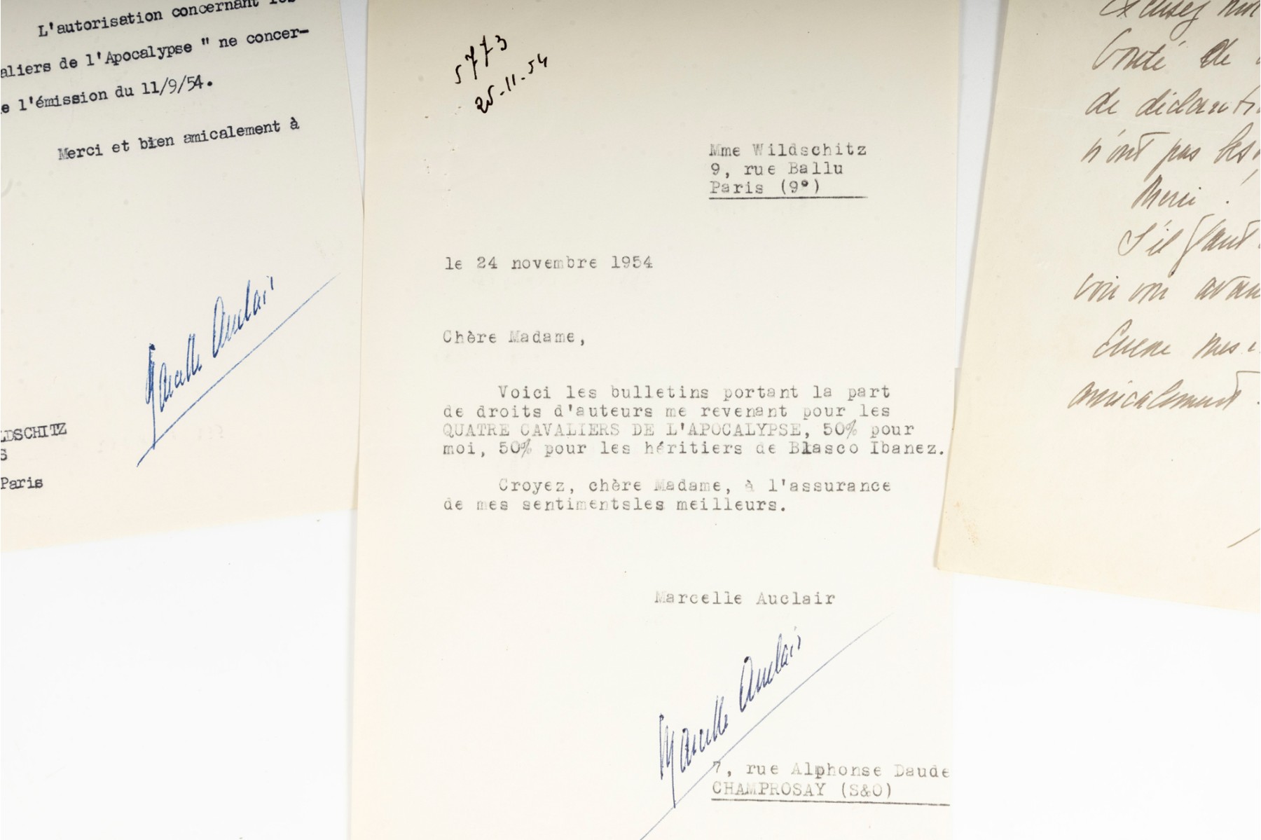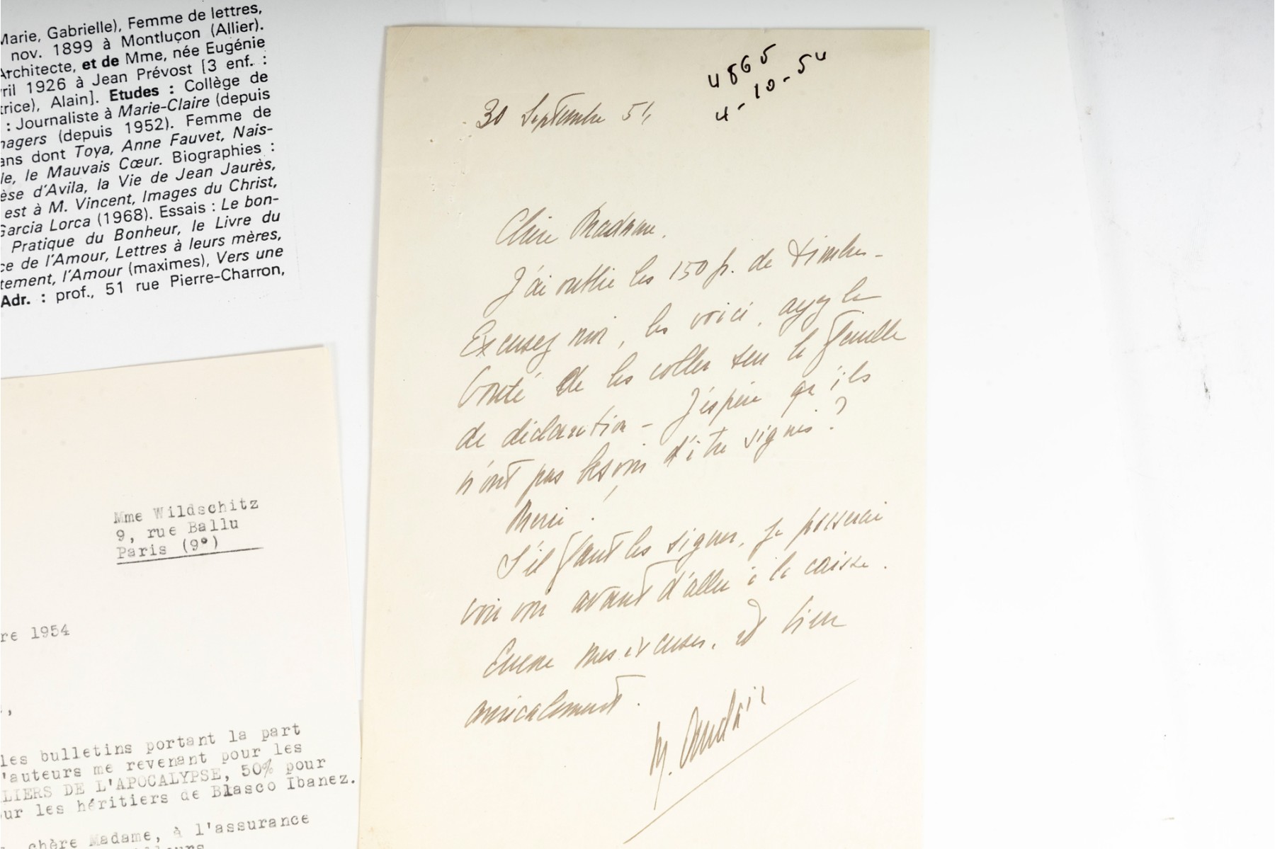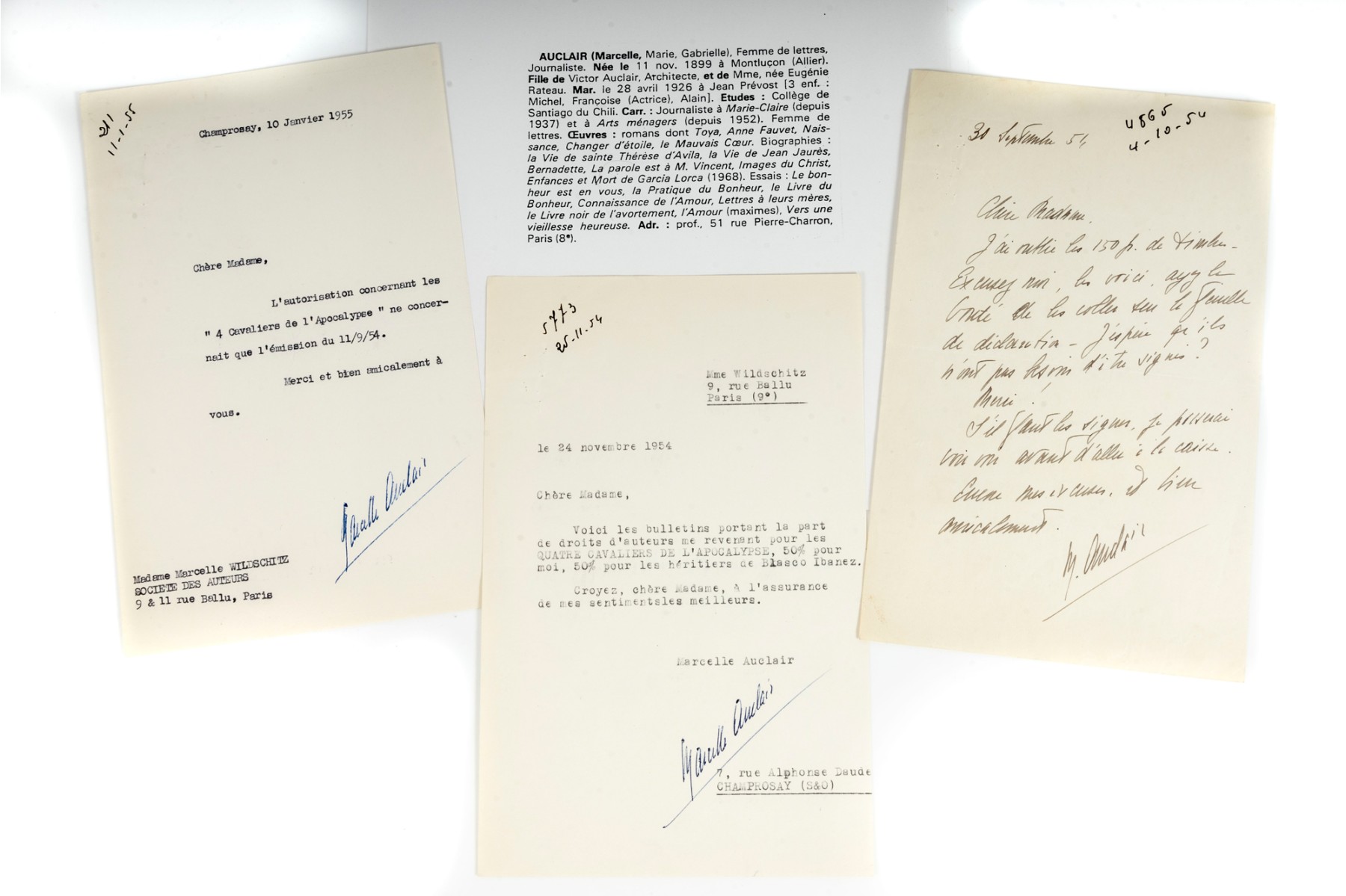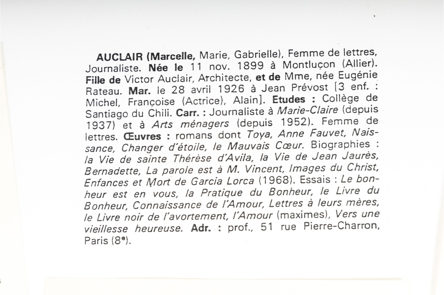 Vintage Letters from Marcelle Auclair, renowned playwright and co-founder of Marie Claire, offers a unique insight into the mind and creative process of this influential figure in French literature and journalism. See photos for details.
