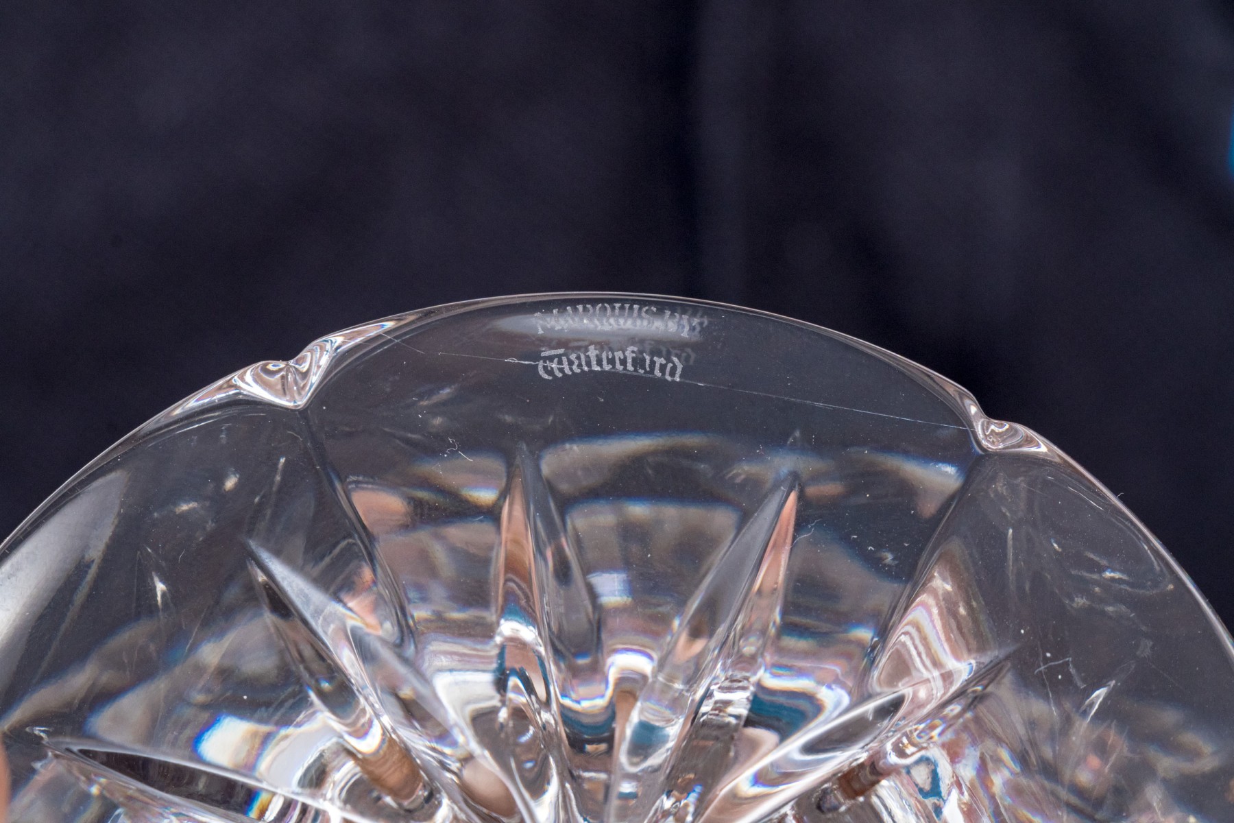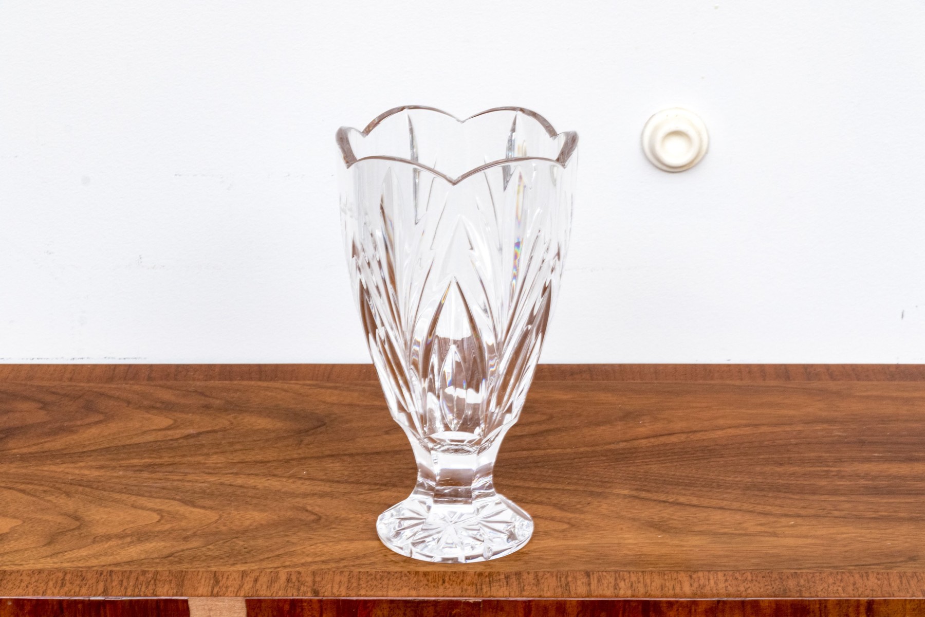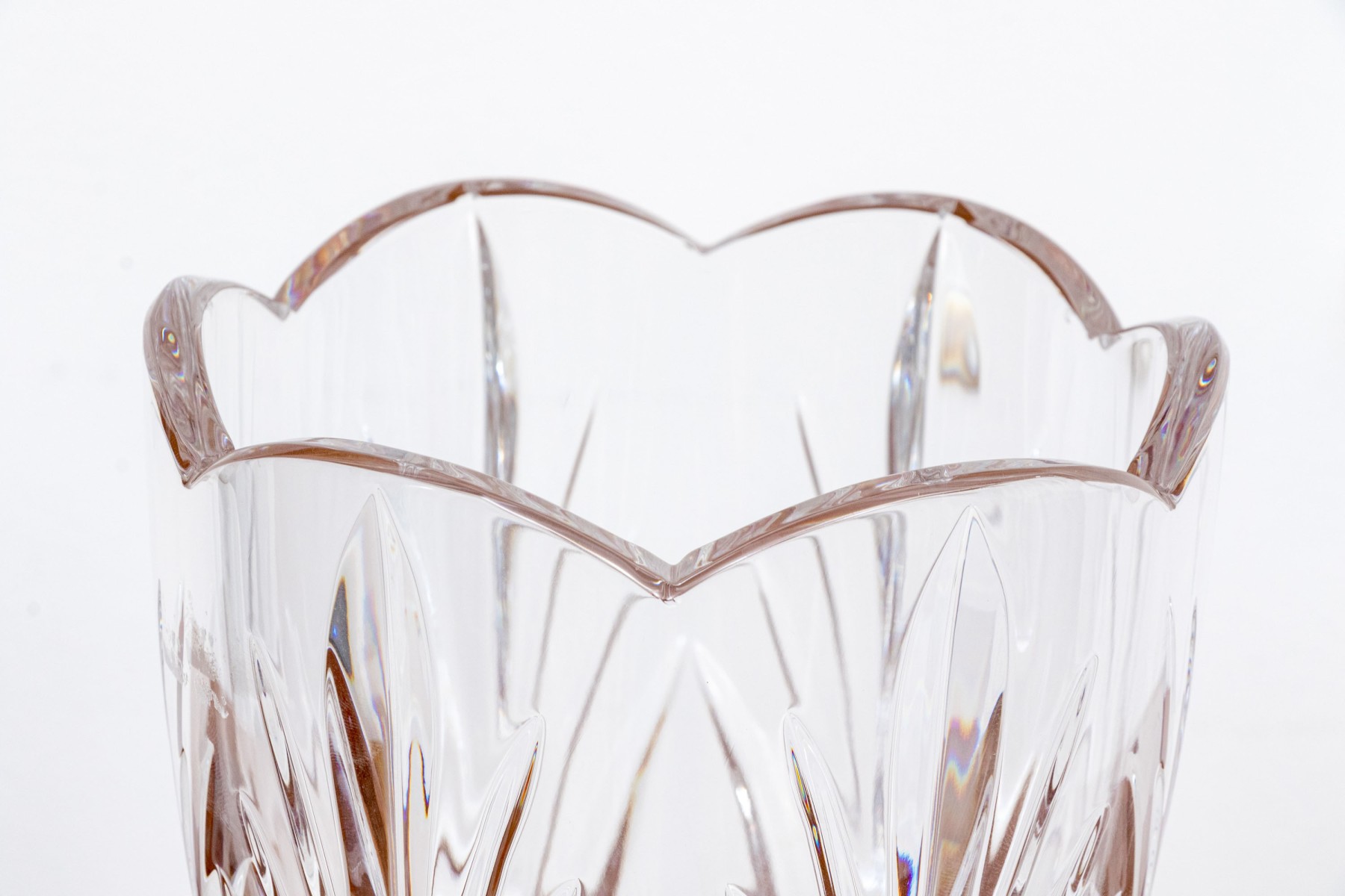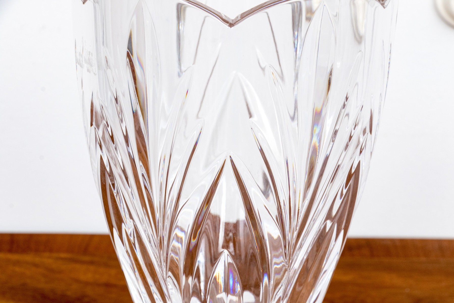 Marquis by Waterford Canterbury cut crystal vase displaying elegant cut designs and a circular foot.