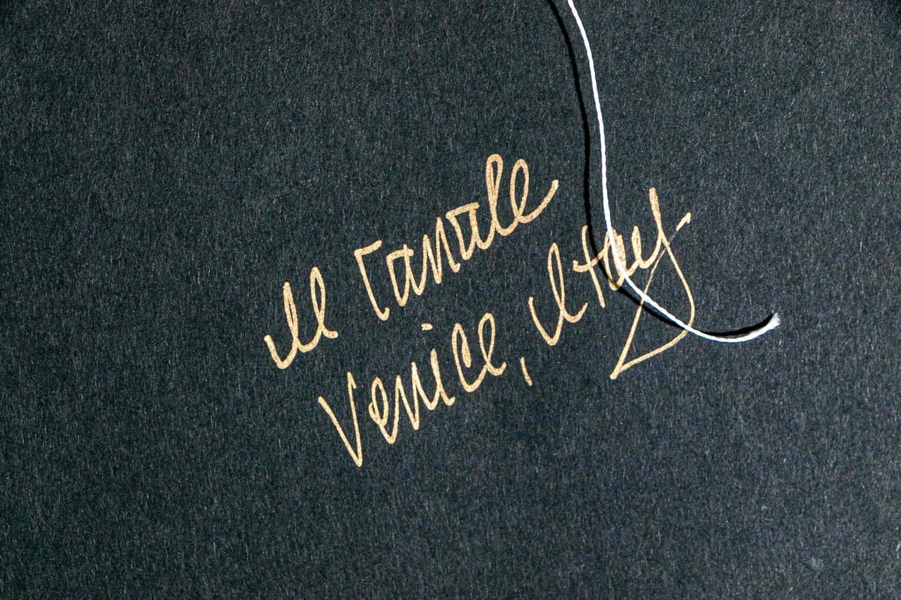 Signed lower left and titled on the verso. displayed matted in a black frame with elegant relief borders.