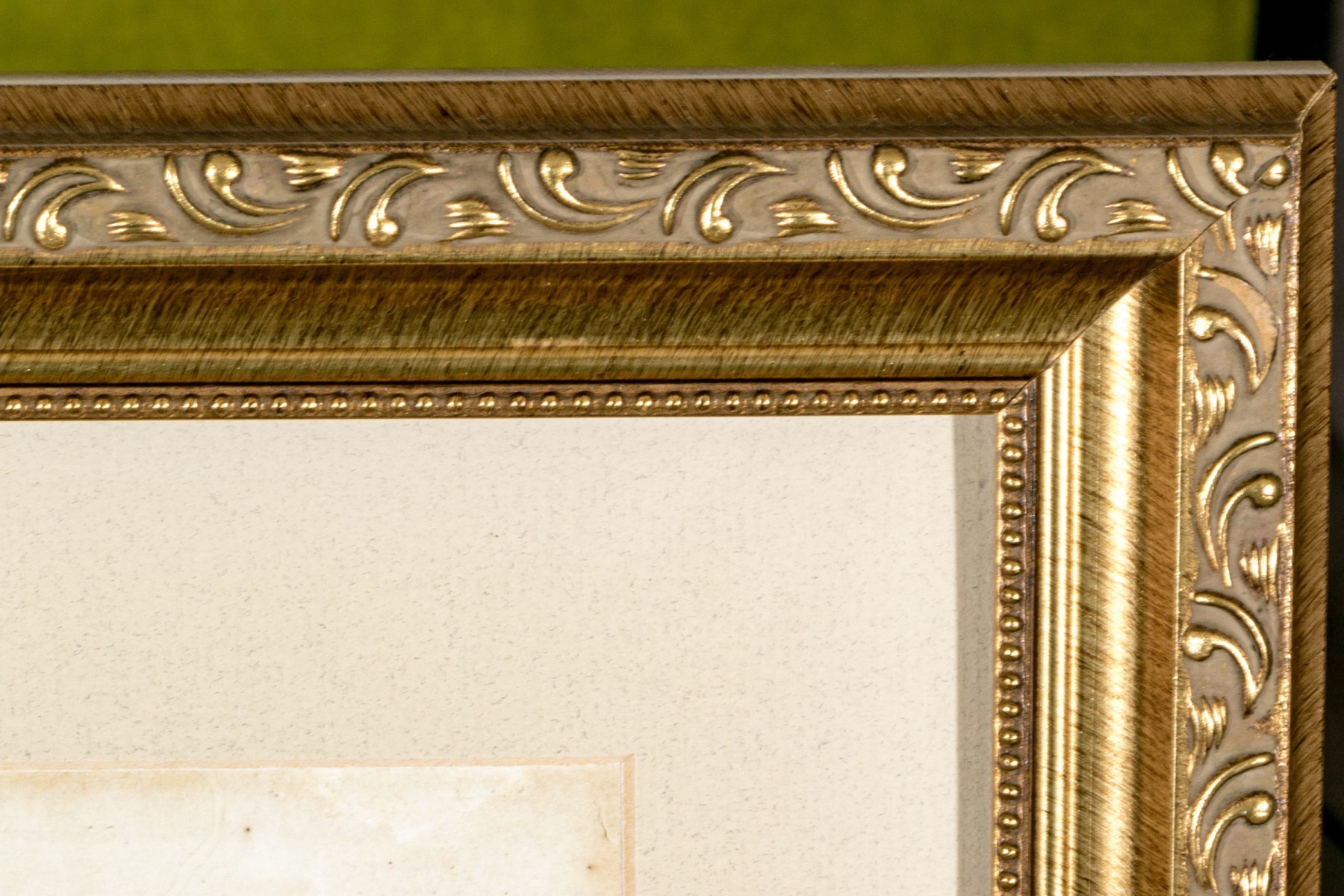 Presented custom matted, framed and glazed in a gilt decorative frame.