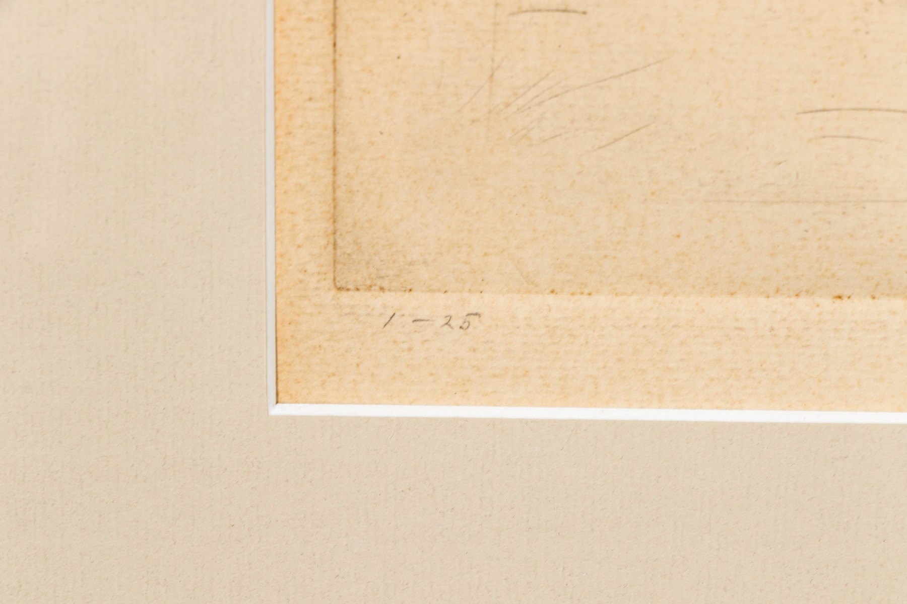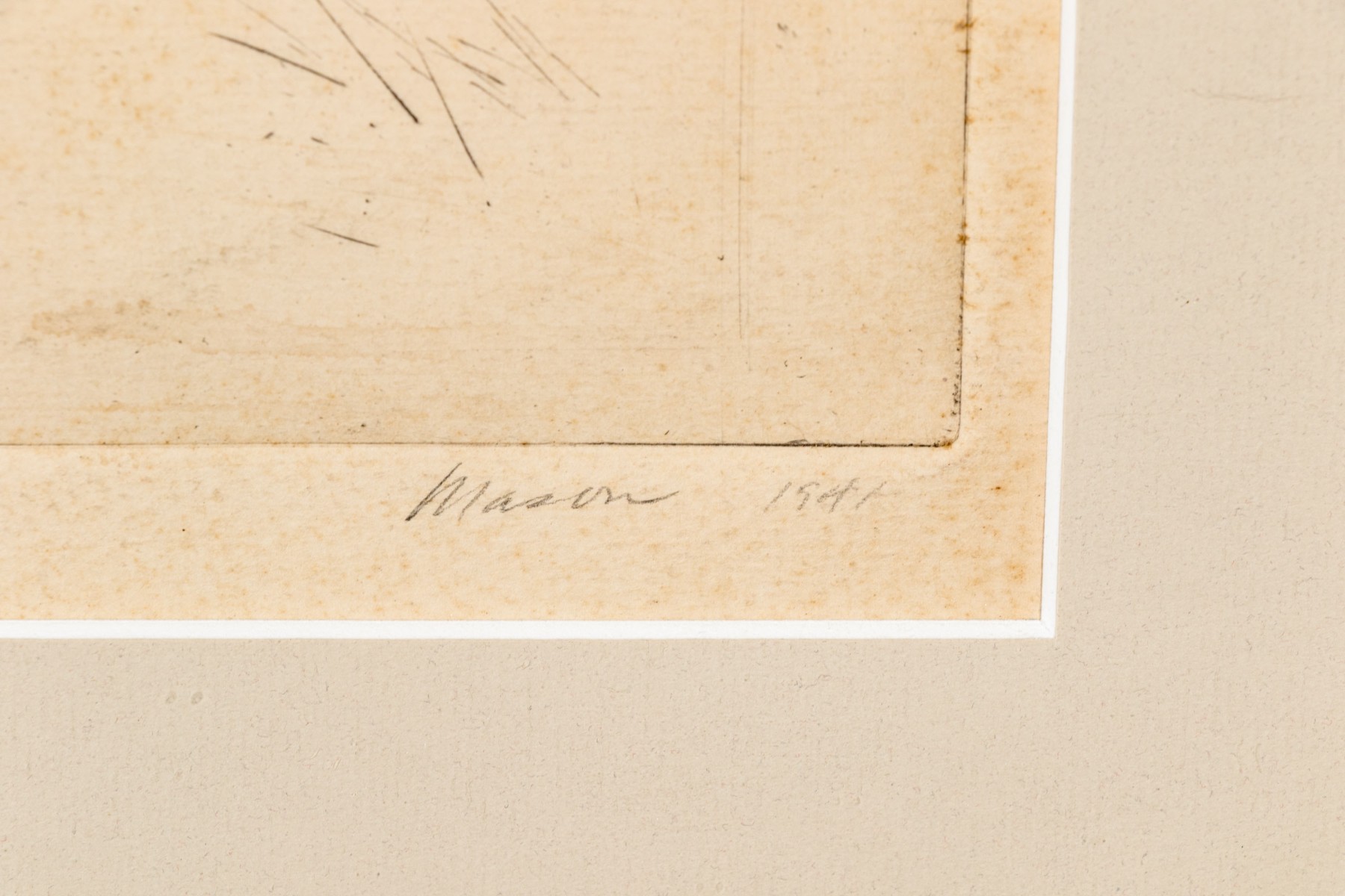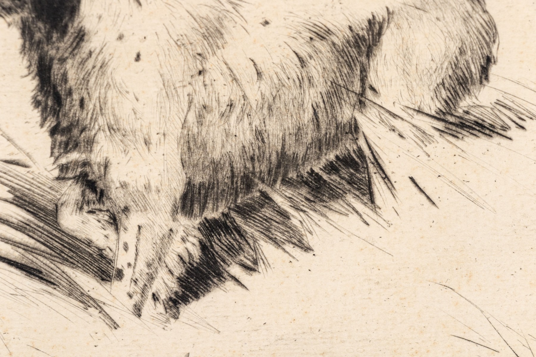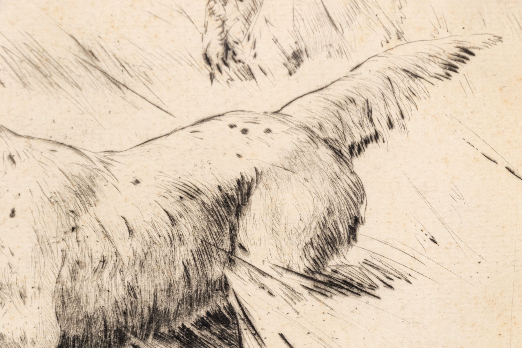 Pencil signed and dated 1941 lower right and numbered 1-25 lower trim out of plate. Depicting two English Setters in landscape. Dimensions: 8 3/4 x 10 1/2" W, sight // 14 7/8 x 15 7/8" W, frame