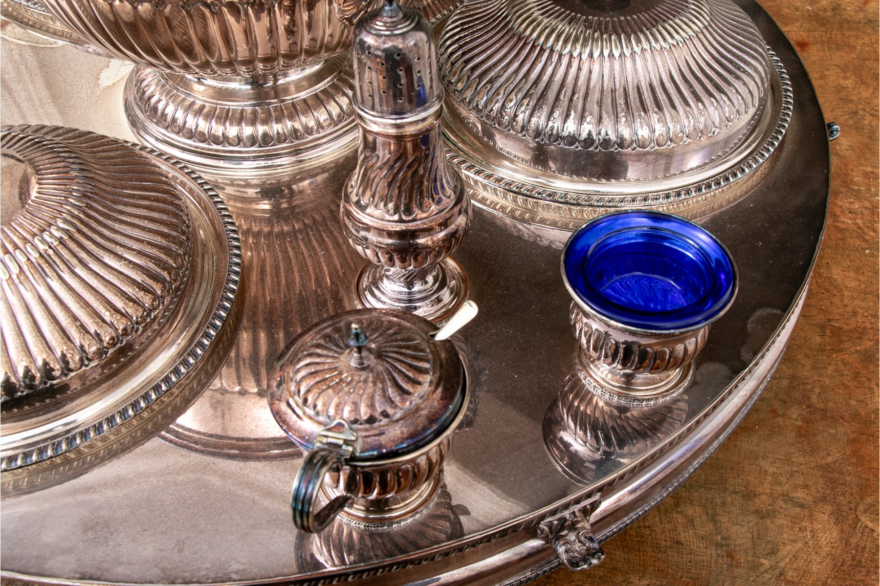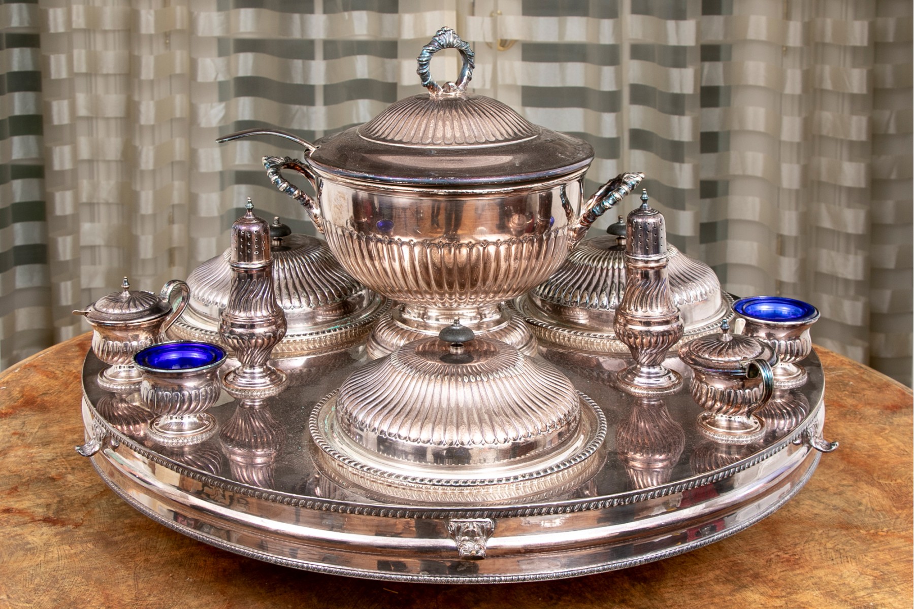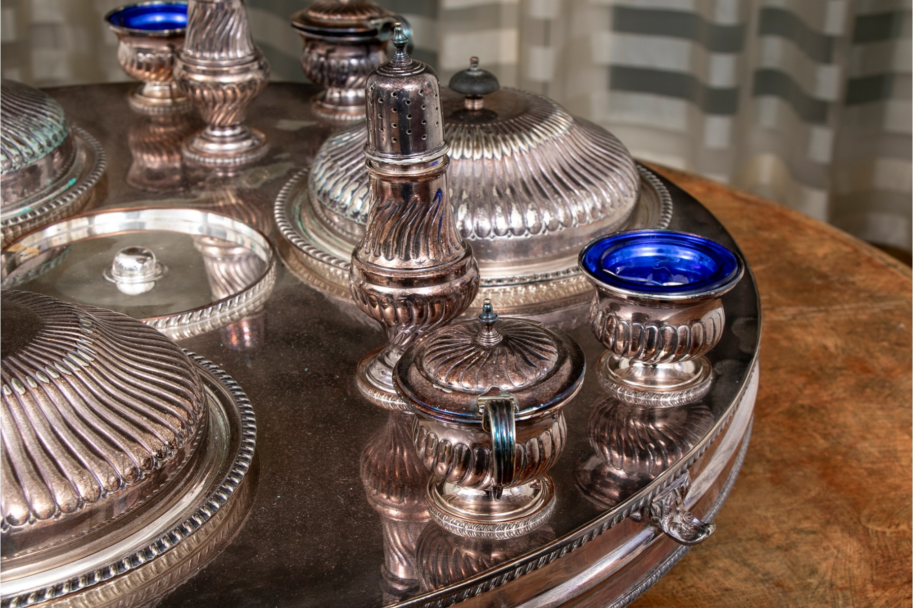 Massive Sheffield Silver Plate Lazy Susan Server #146859. Black Rock Galleries provides high end estate liquidation services through online estate auctions and a 50,000 sq ft designer showroom. estate liquidator, estate sale, online auction, antiques, fine art, liquidation, clean outs, auction, consignment, interior design, fine jewelry, collectibles, appraisals, estate appraisals, estate services, decor, furniture, furniture consignment, antique center, consignment shop. We offer appraisal services and specialize in fine art, jewelry, antiques and decorative arts. Sell with us. Black Rock Galleries is the tri-state's largest estate liquidator serving New England and the greater New York City area. We are the trusted source for expert appraisals, auction services, estate sales, and consignments. Black Rock Galleries is the east coast's largest and most trusted estate liquidator, with locations in Connecticut, greater Boston, MA and Raleigh, NC, Fairfield, Southport, Apex, TX. We are the best source for expert appraisals, auction services, estate sales and consignments. We have served thousands of families and estates with compassion, professionalism and expertise. BRG works with attorneys, executors, realtors and families to bring the greatest return on personal and estate property in the current market. Our unique combination of services make us the easy choice to get the job done in a timely and stress-free manner. We are with you from the initial consultation to the final clean out. Our house-built online auction software platform offers clients a dynamic approach to liquidating their personal property. This venue is most successful in bringing the best return with the least amount of disruption for our clients. See our services page for a complete description of this offering. Massive Sheffield Silver Plate Lazy Susan Server #146859