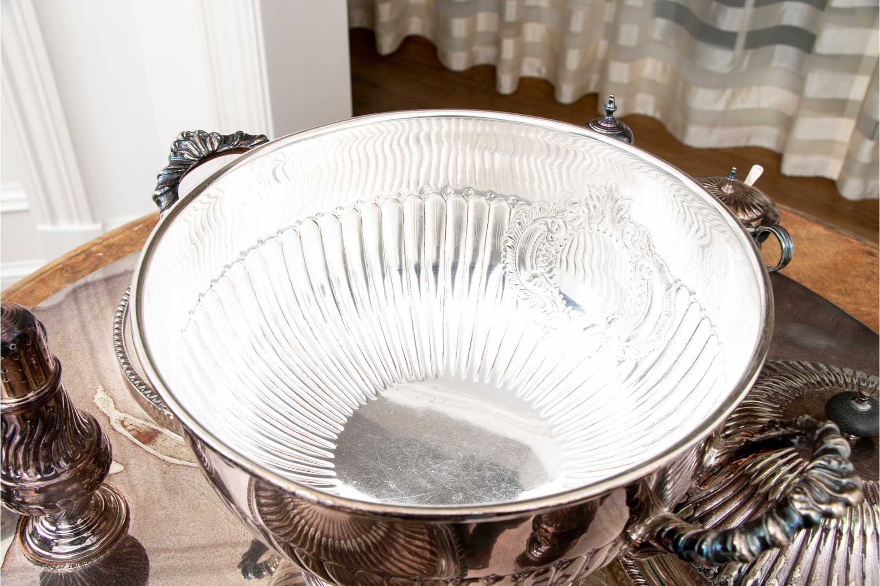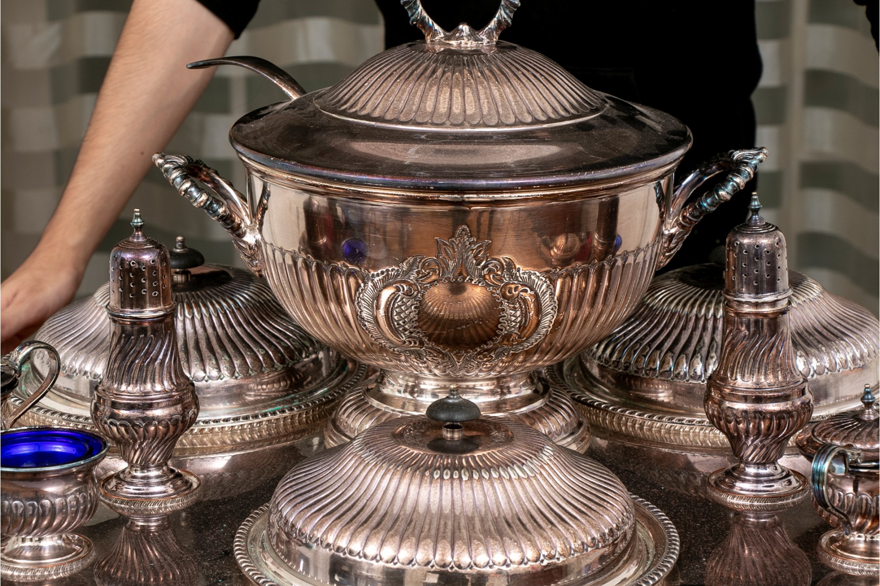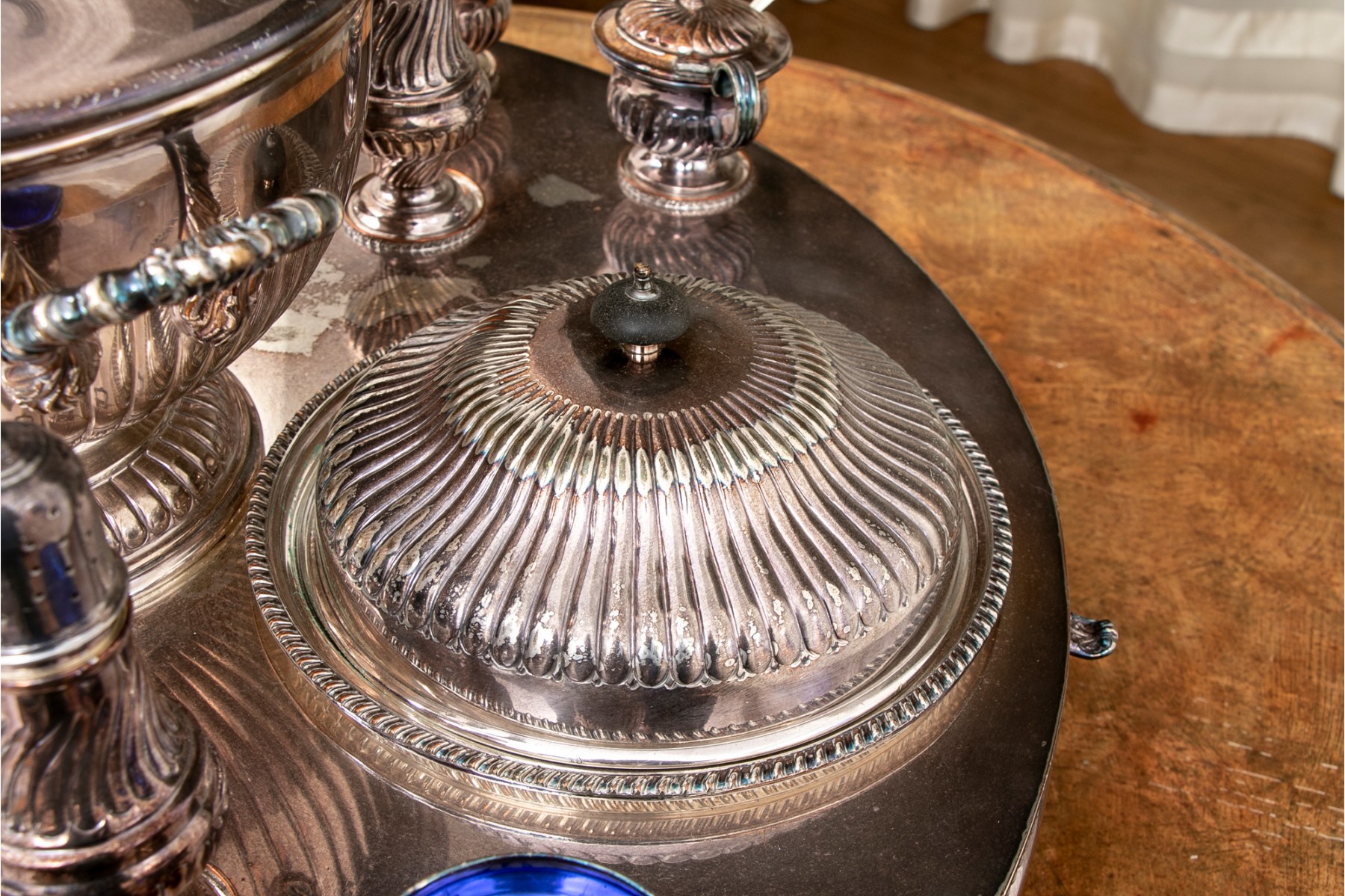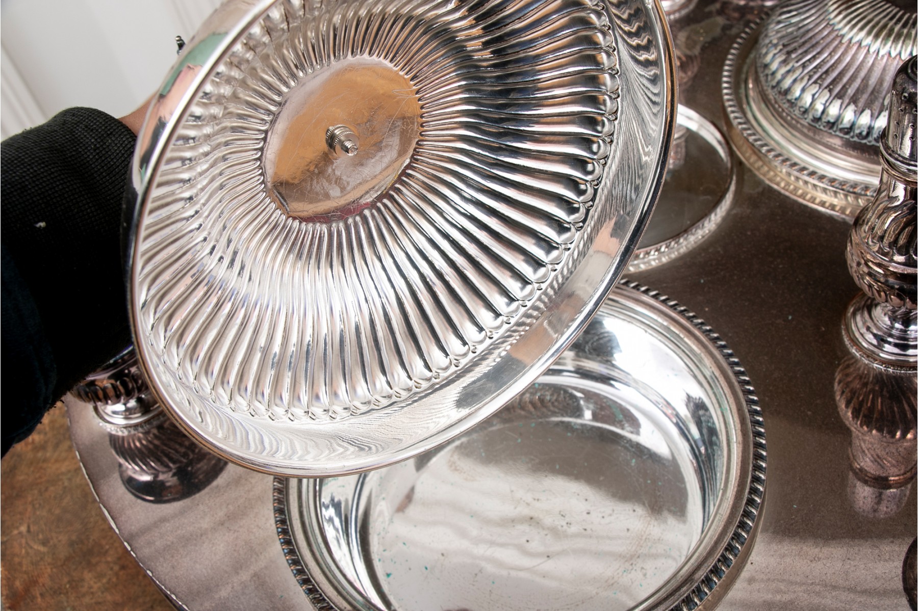 Massive Sheffield Silver Plate Lazy Susan Server #146859. Black Rock Galleries provides high end estate liquidation services through online estate auctions and a 50,000 sq ft designer showroom. estate liquidator, estate sale, online auction, antiques, fine art, liquidation, clean outs, auction, consignment, interior design, fine jewelry, collectibles, appraisals, estate appraisals, estate services, decor, furniture, furniture consignment, antique center, consignment shop. We offer appraisal services and specialize in fine art, jewelry, antiques and decorative arts. Sell with us. Black Rock Galleries is the tri-state's largest estate liquidator serving New England and the greater New York City area. We are the trusted source for expert appraisals, auction services, estate sales, and consignments. Black Rock Galleries is the east coast's largest and most trusted estate liquidator, with locations in Connecticut, greater Boston, MA and Raleigh, NC, Fairfield, Southport, Apex, TX. We are the best source for expert appraisals, auction services, estate sales and consignments. We have served thousands of families and estates with compassion, professionalism and expertise. BRG works with attorneys, executors, realtors and families to bring the greatest return on personal and estate property in the current market. Our unique combination of services make us the easy choice to get the job done in a timely and stress-free manner. We are with you from the initial consultation to the final clean out. Our house-built online auction software platform offers clients a dynamic approach to liquidating their personal property. This venue is most successful in bringing the best return with the least amount of disruption for our clients. See our services page for a complete description of this offering. Massive Sheffield Silver Plate Lazy Susan Server #146859