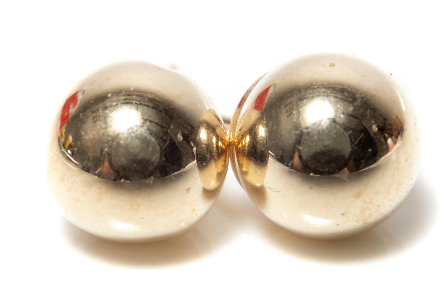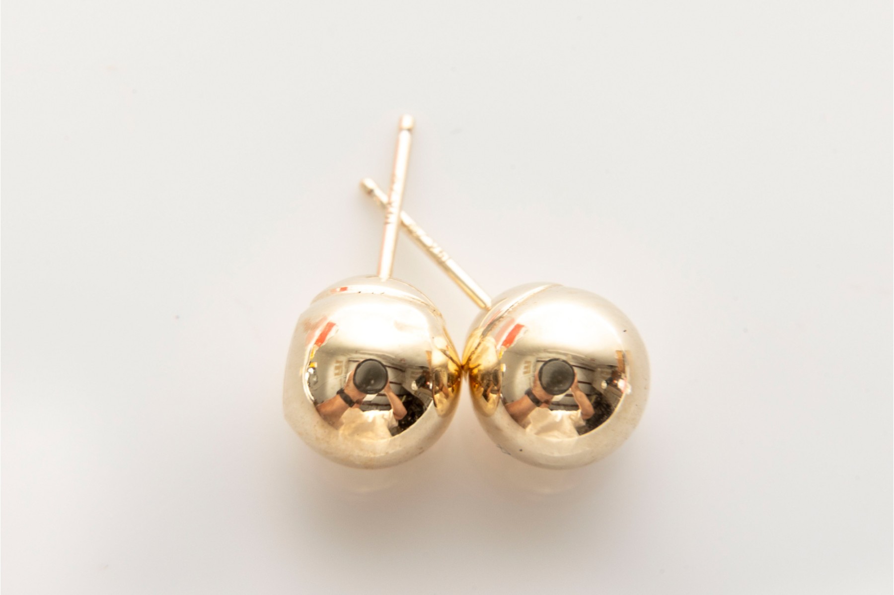 A simple pair of Michael Anthony yellow gold hollow sphere studs.