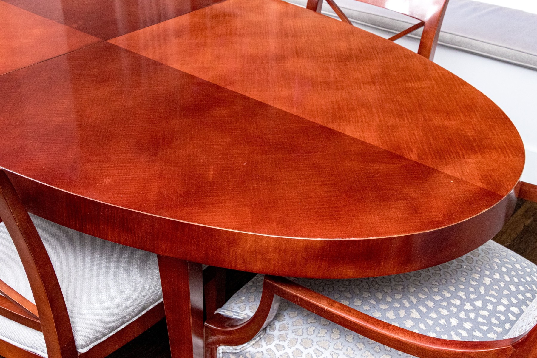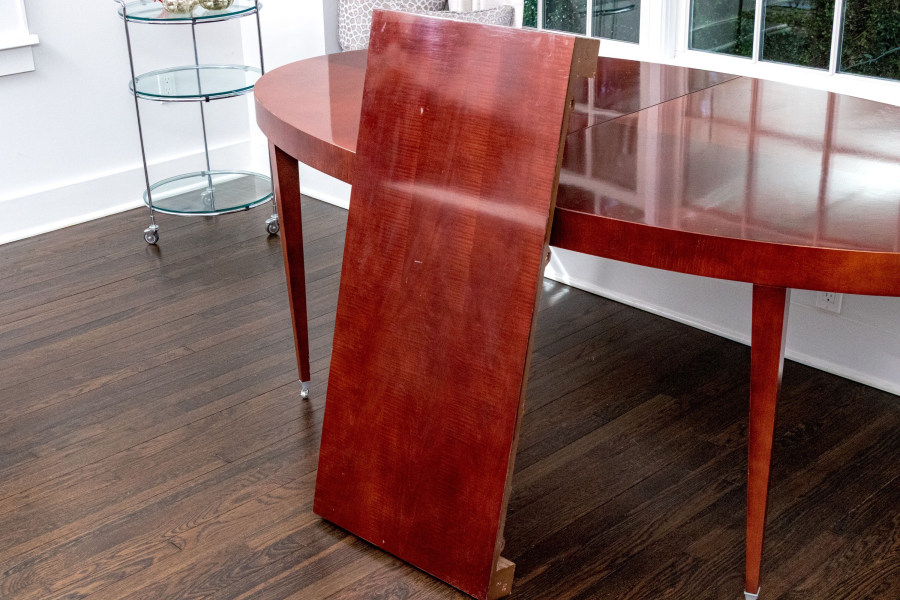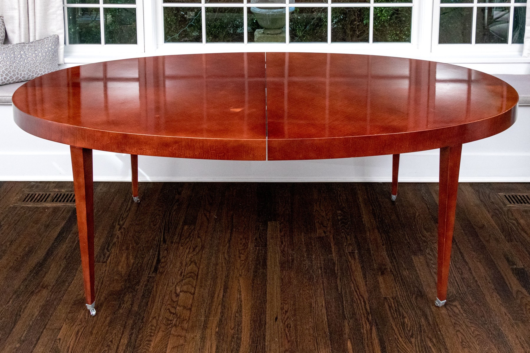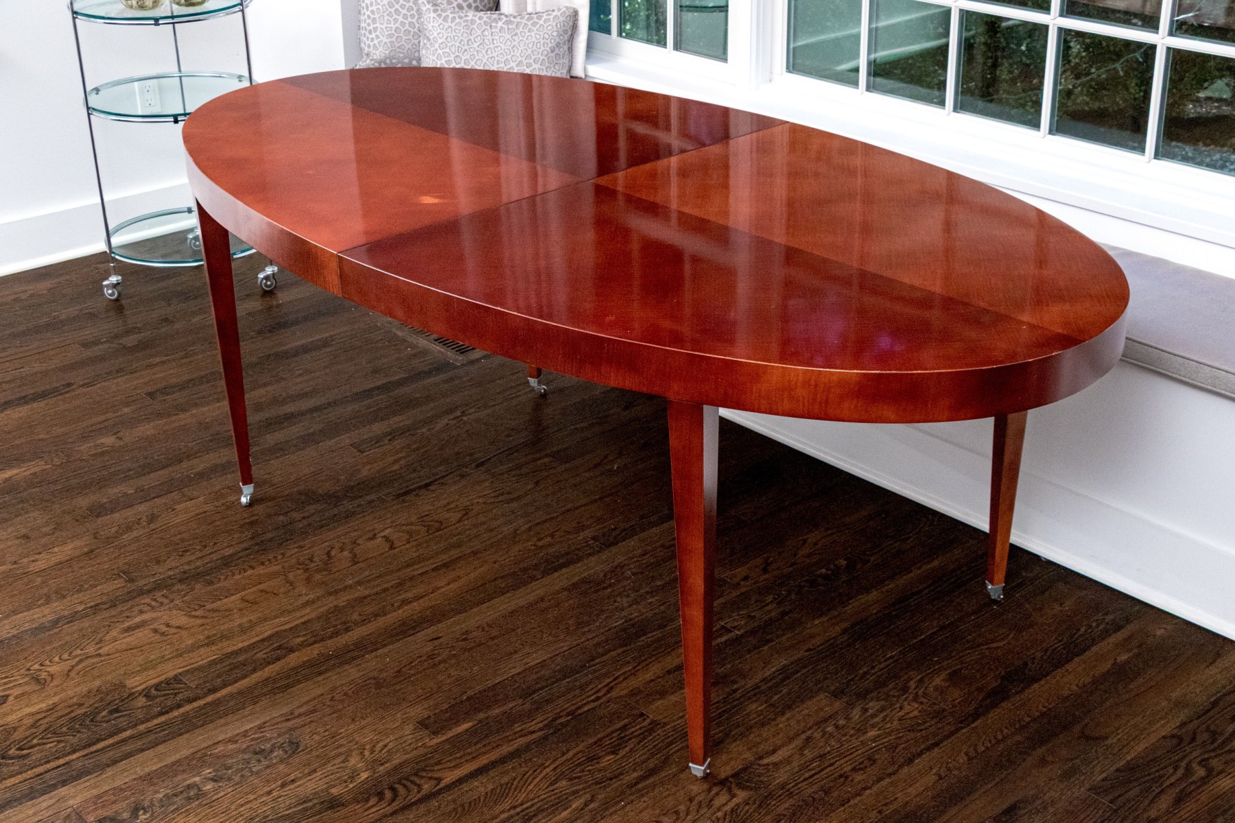 A fabulous Art Deco inspired Michael Vanderbyl for Baker Furniture "Archetype" oval extension dining table.