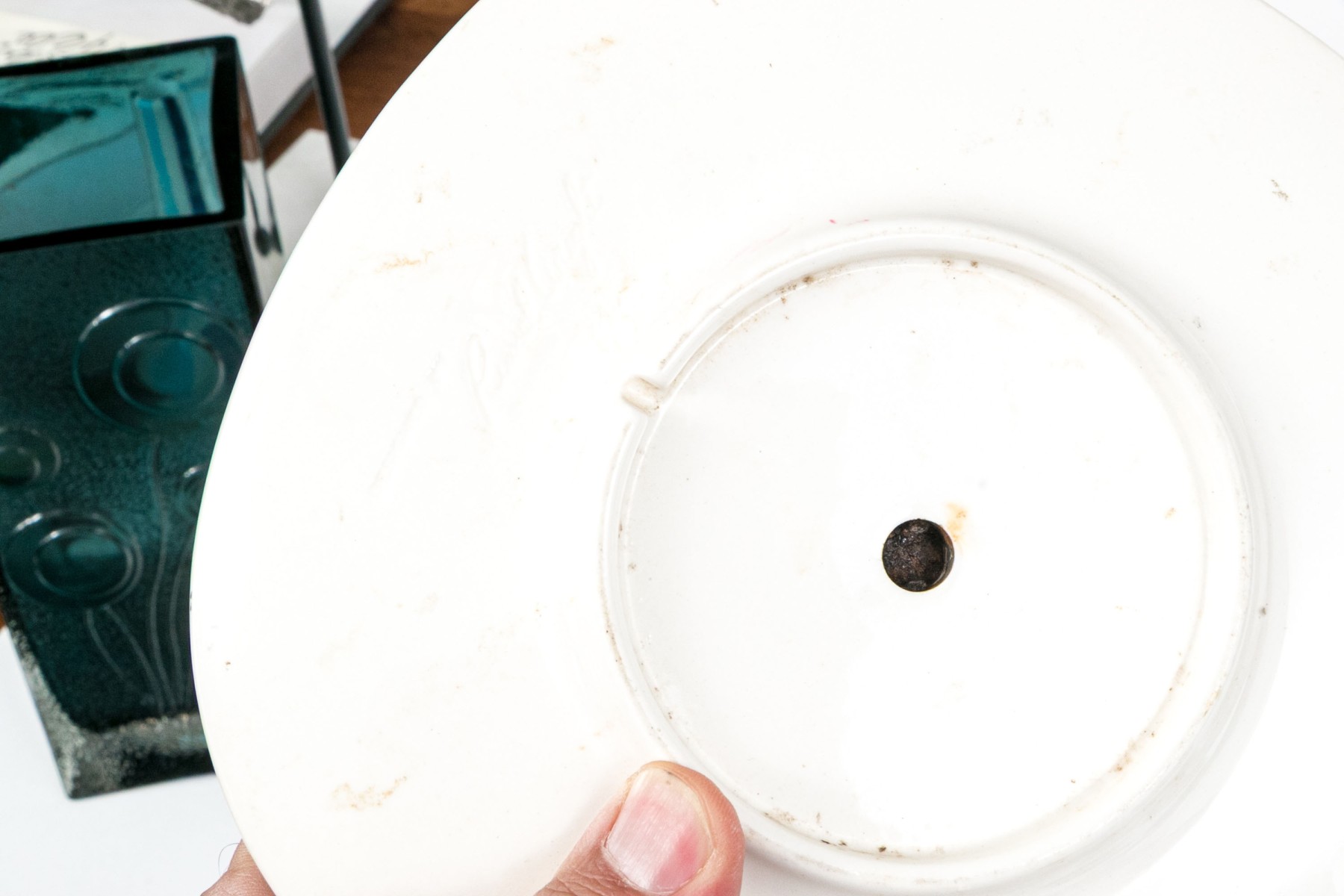 Clock missing its working parts. Oxidation to the center.
