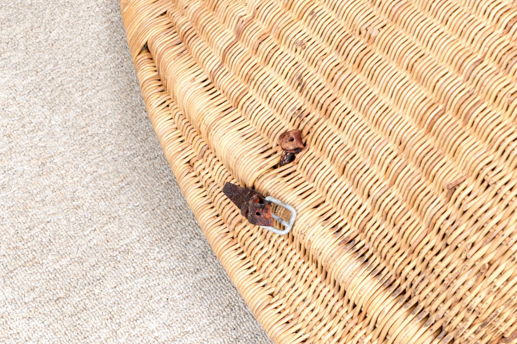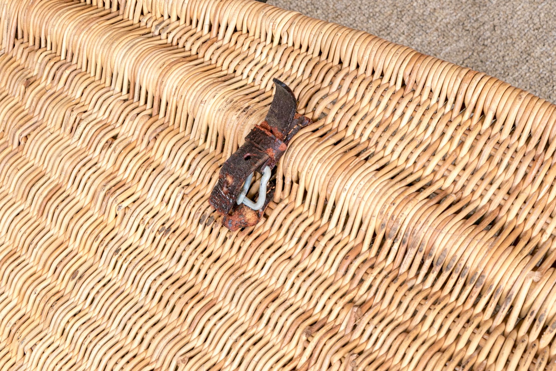 Presents well overall with wear commensurate with age and use. Missing two rubber feet off the front. The two leather straps are broken and need to be replaced or restored. Please review the pictures as they are a part of the condition report.