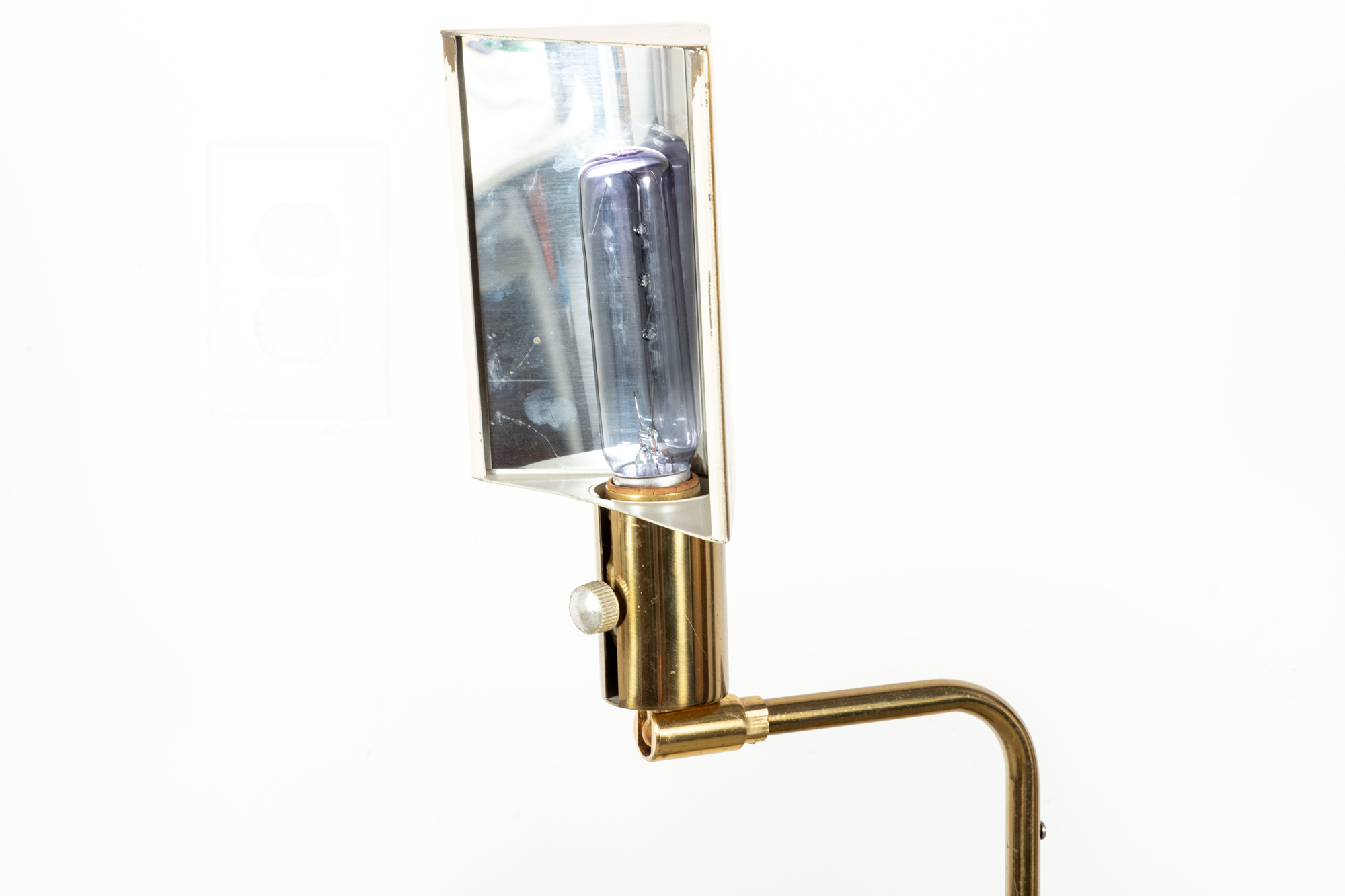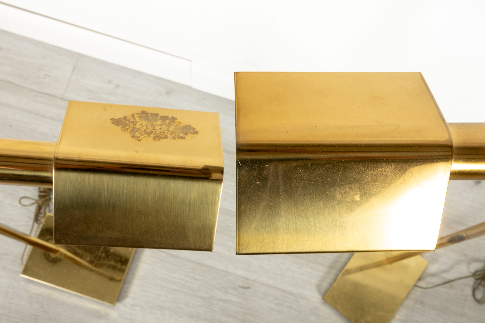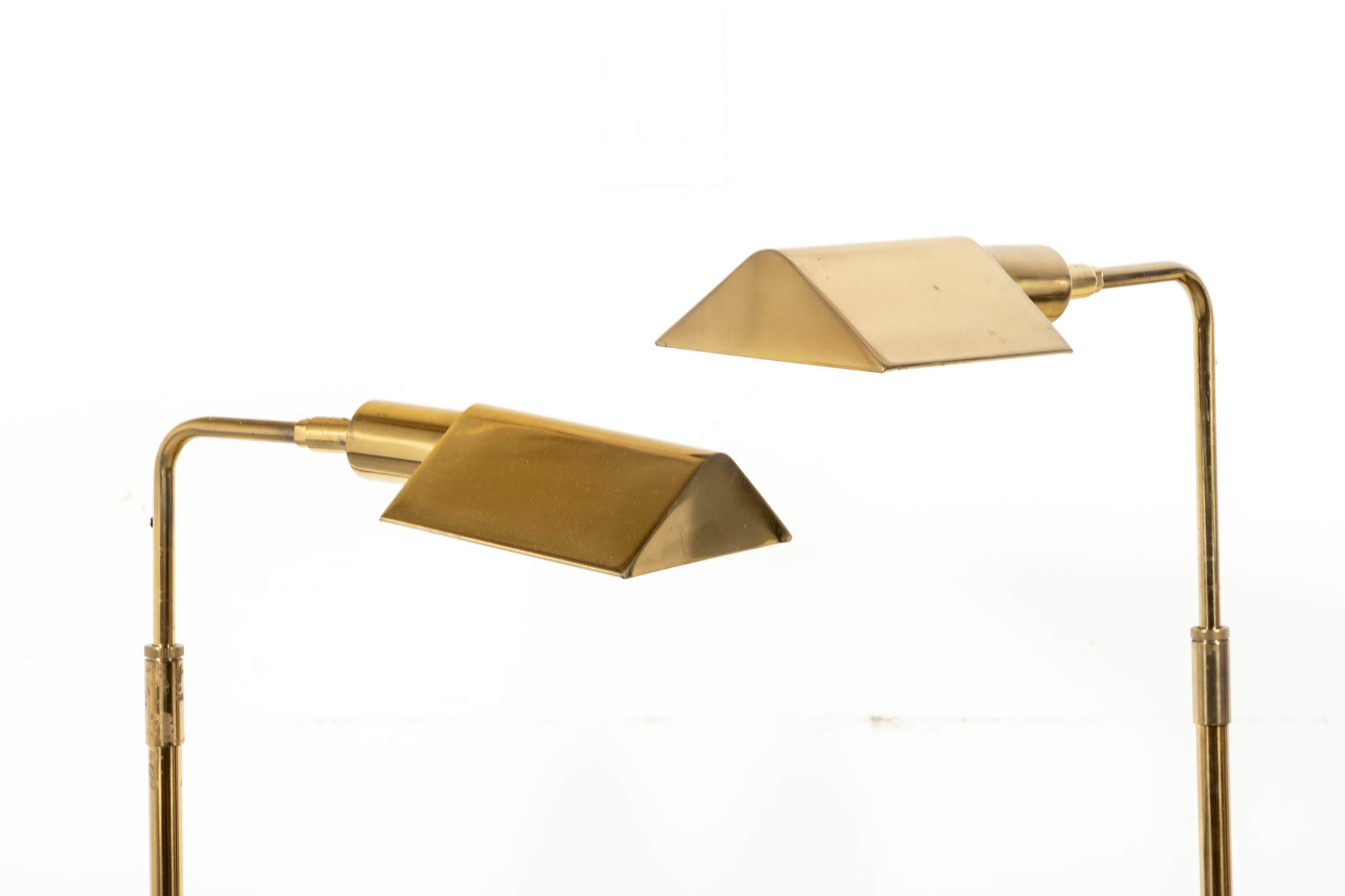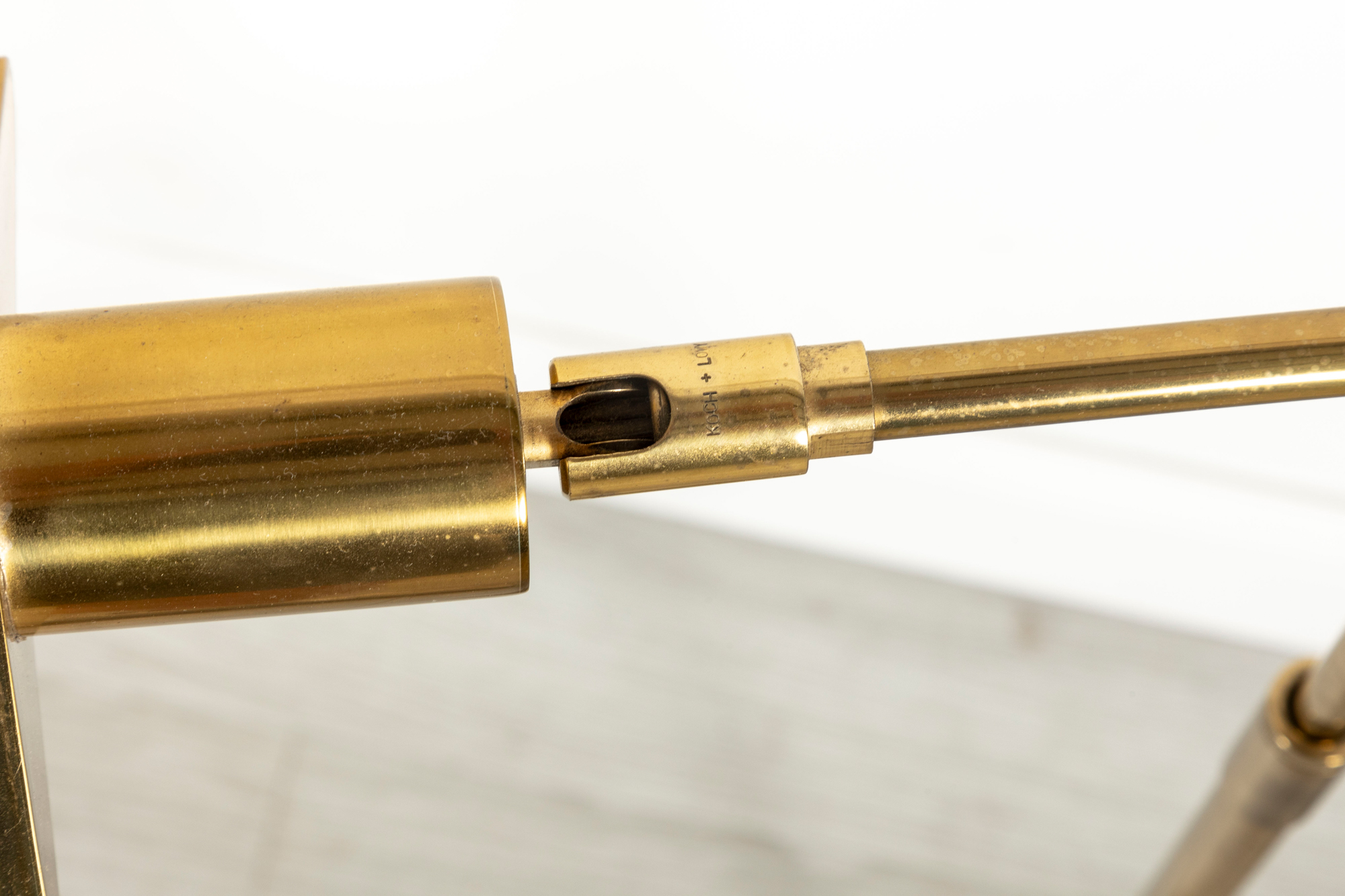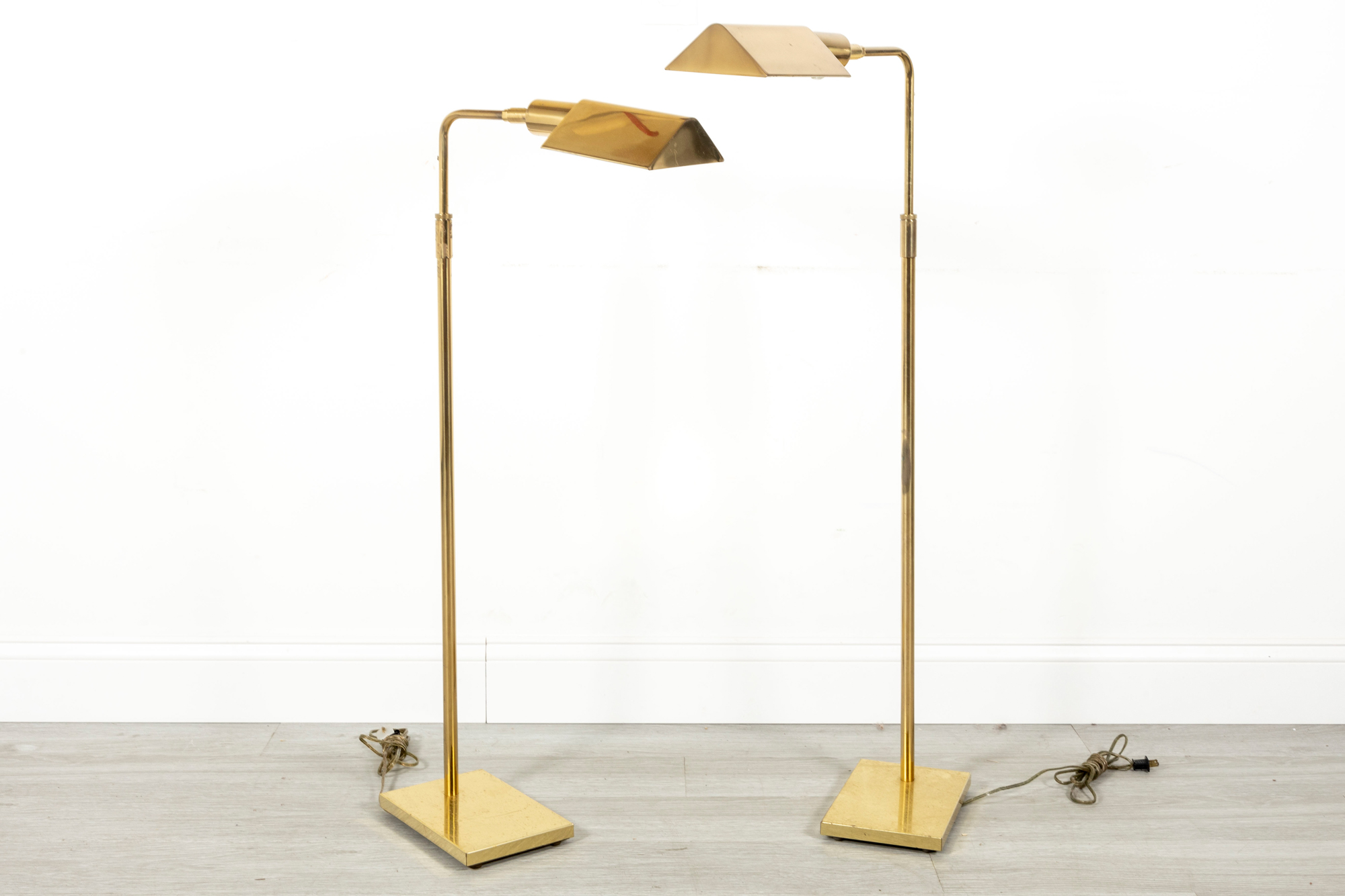 A pair of classical 1970's weighted brass adjustable floor lamps by Koch & Lowy.
