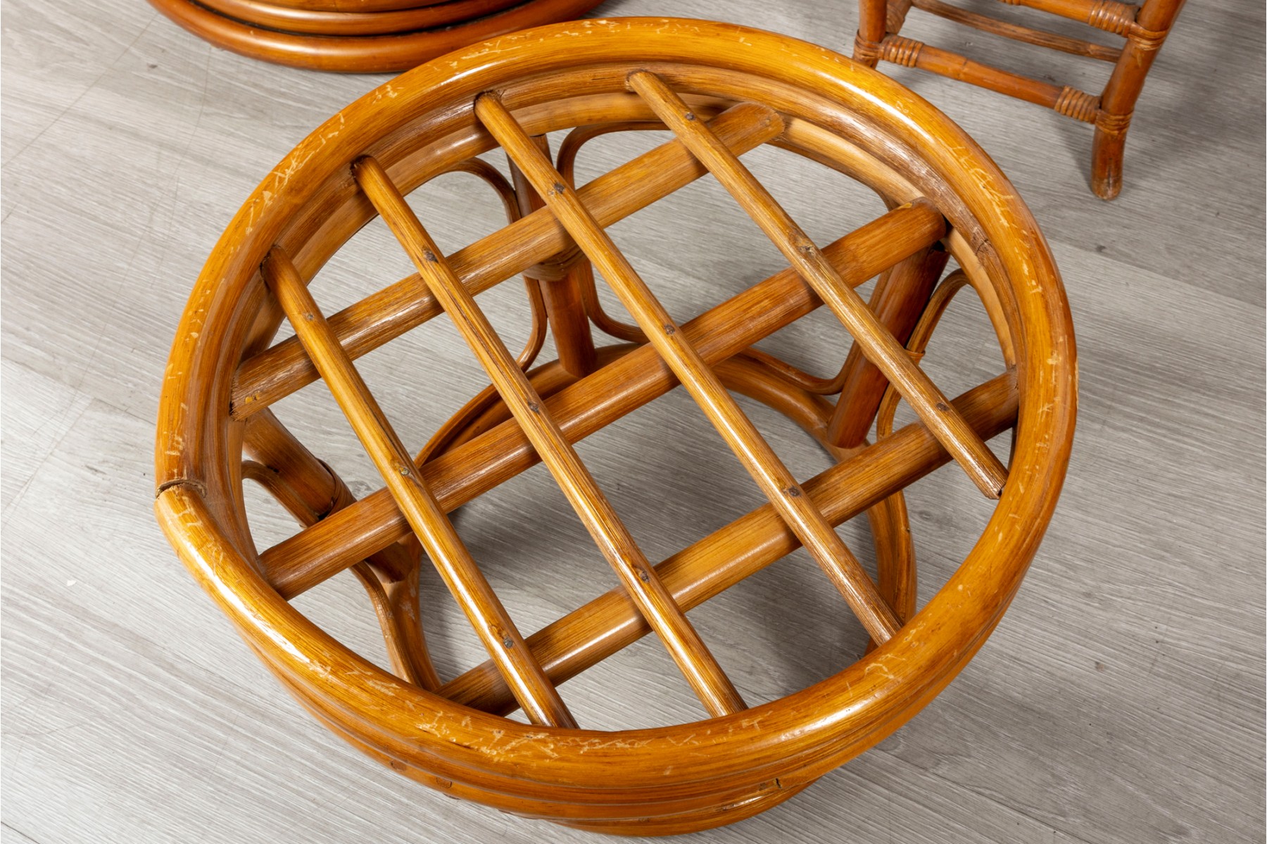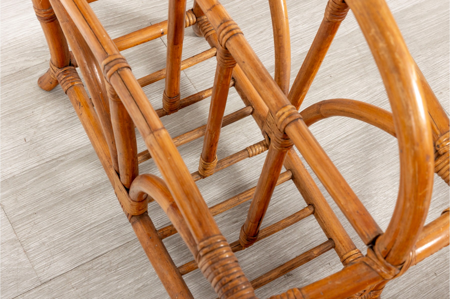 Side table has no glass top. Small losses to finish on bamboo surfaces. Overall in good presenting condition.