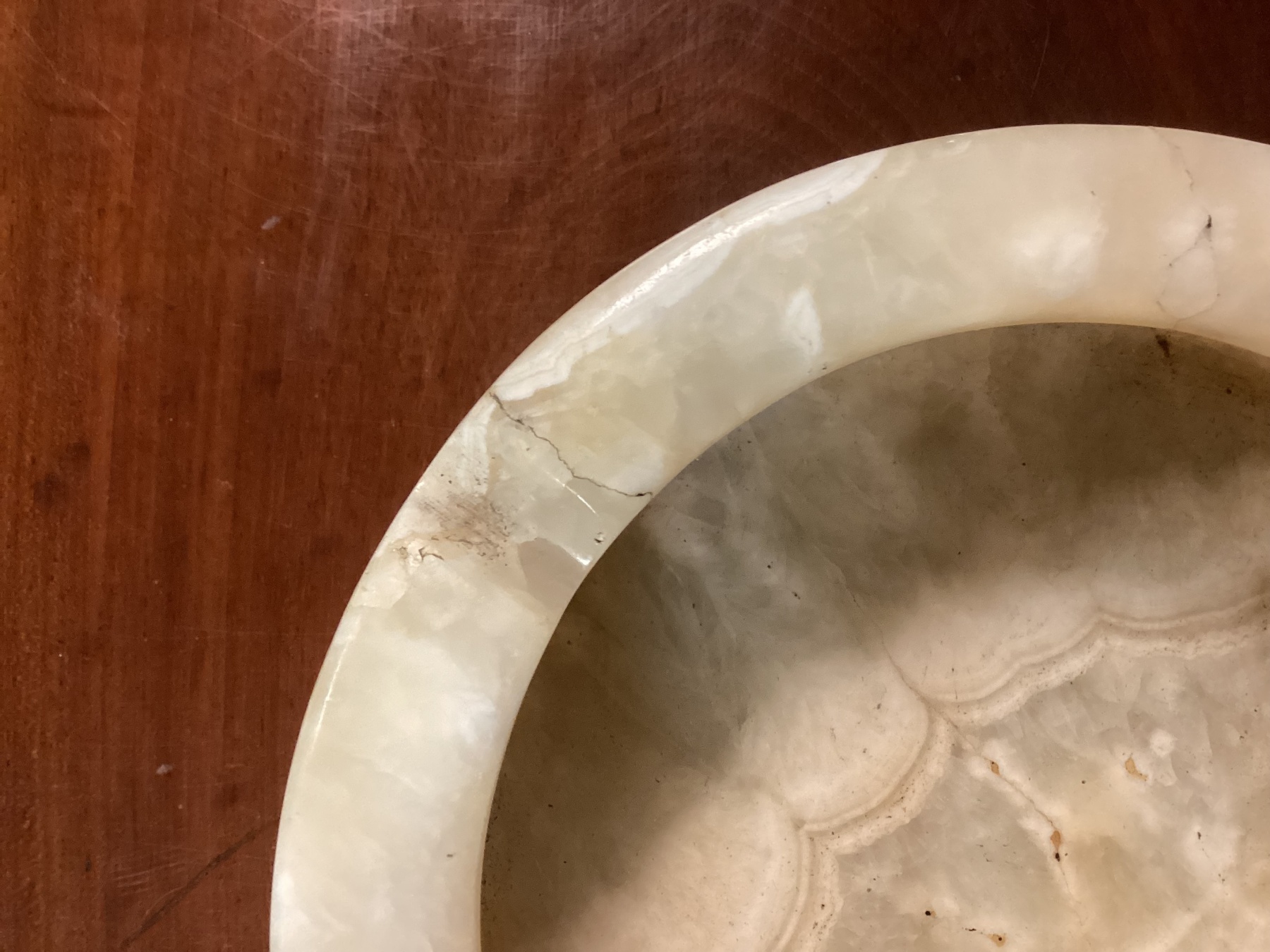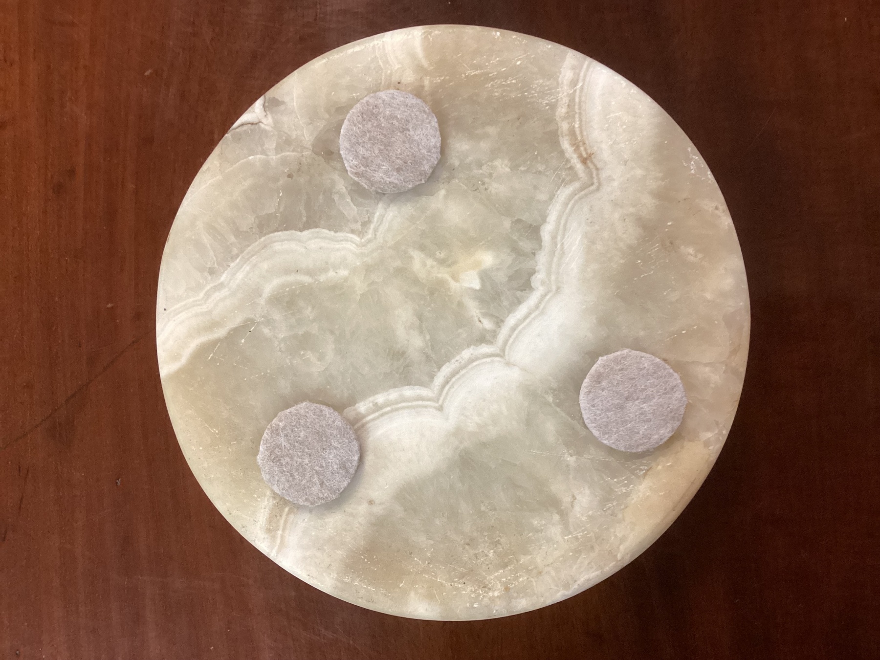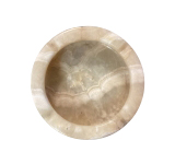 A vintage Polished Onyx Ashtray, likely Italian. With a fine elemental Modern form, good weight and colors ranging from light tan, cream and celadon.