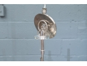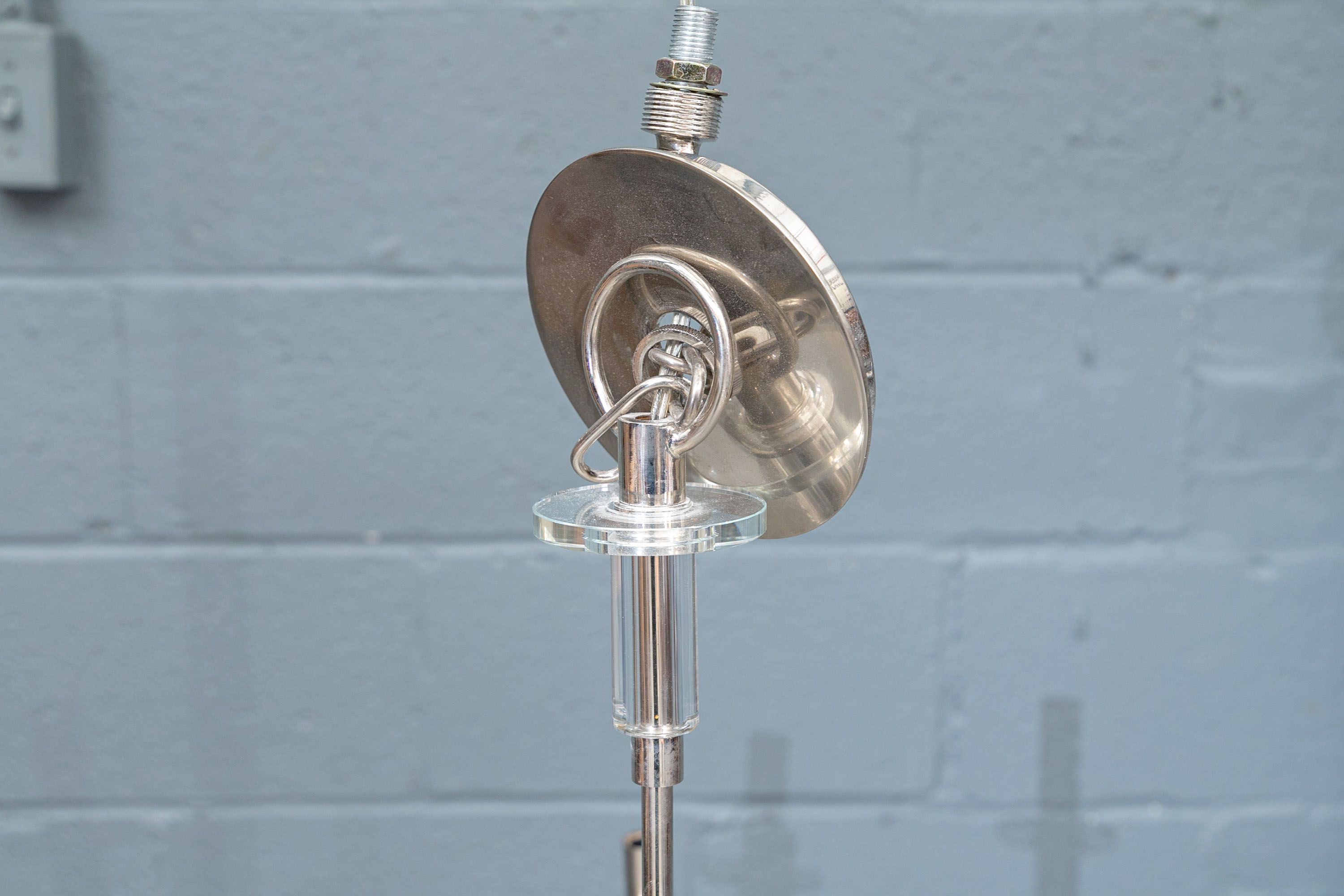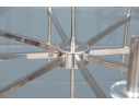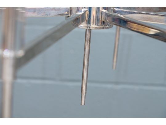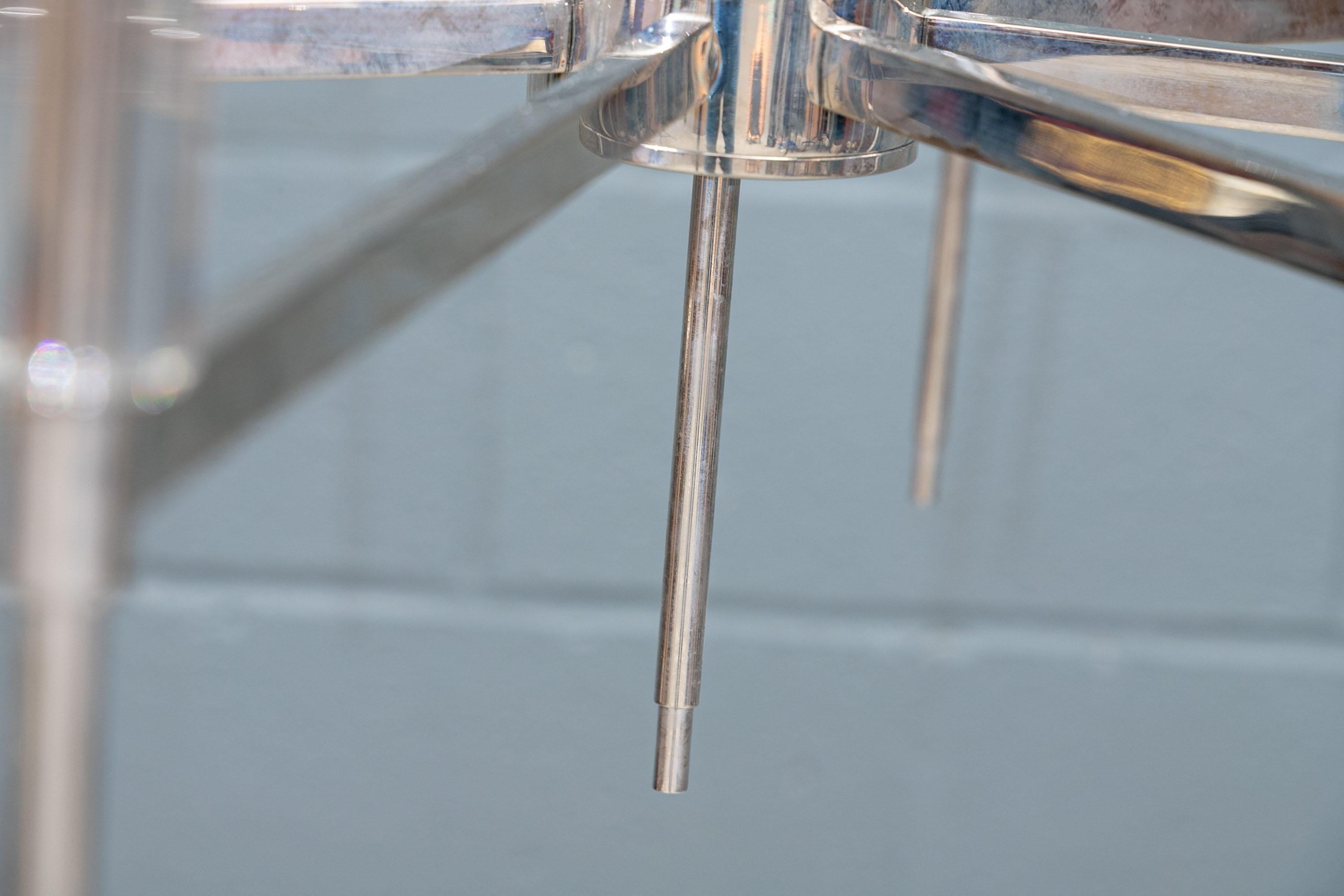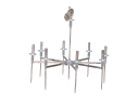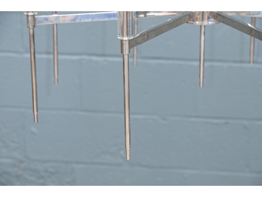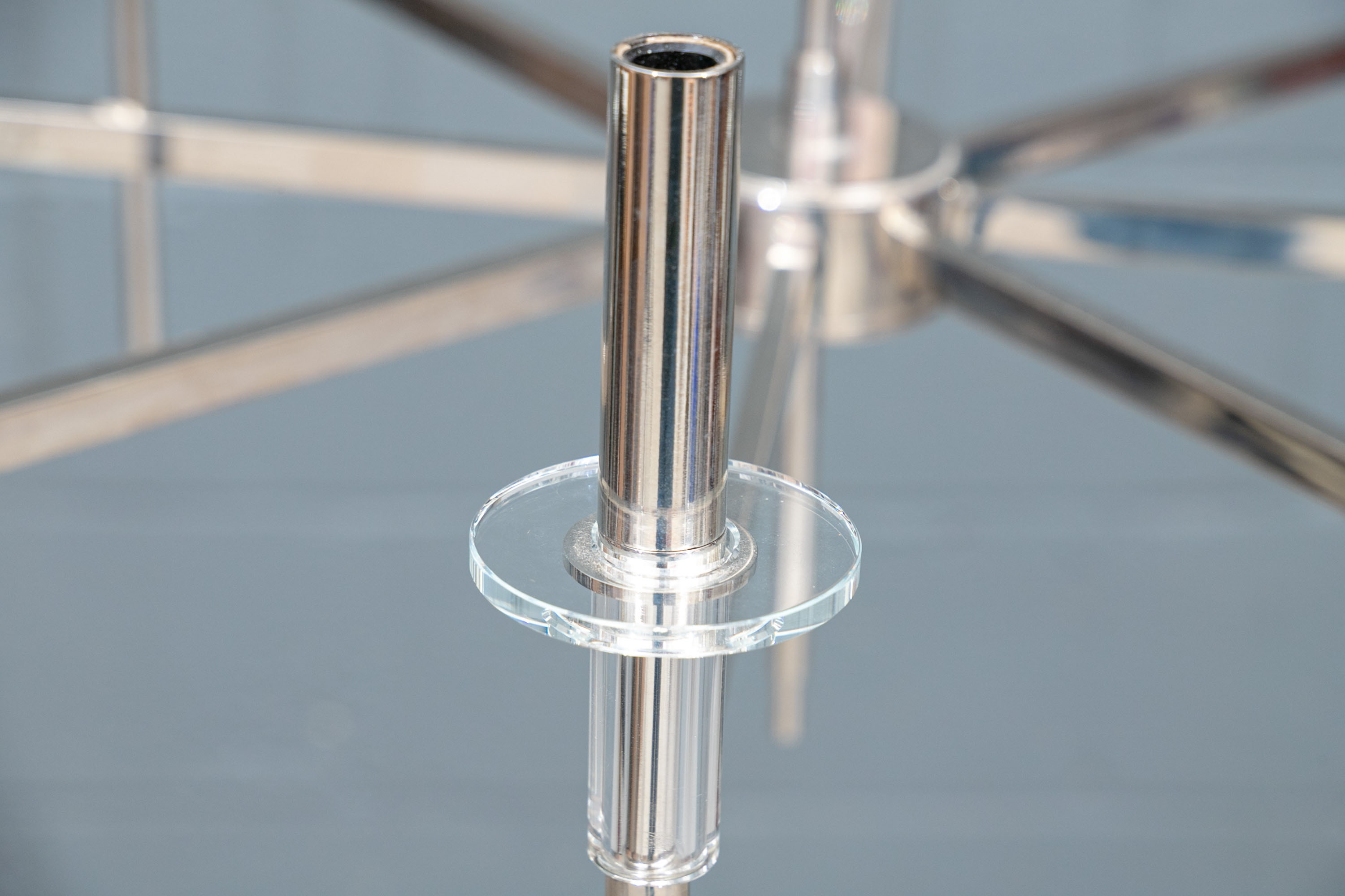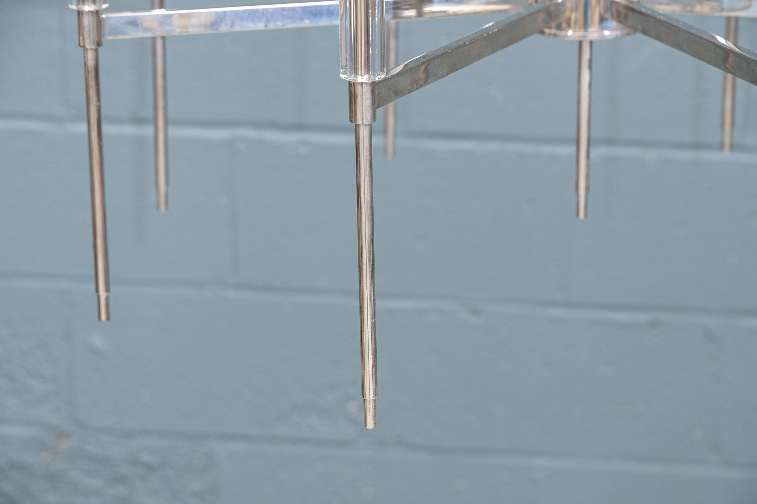 Quality Chrome Ceiling Fixture with Eight Arms having thick glass collar Bobeche on each socket and at the top. Includes Ceiling Plate and there is a hanging ring on the top. Very well made and in very good condition.