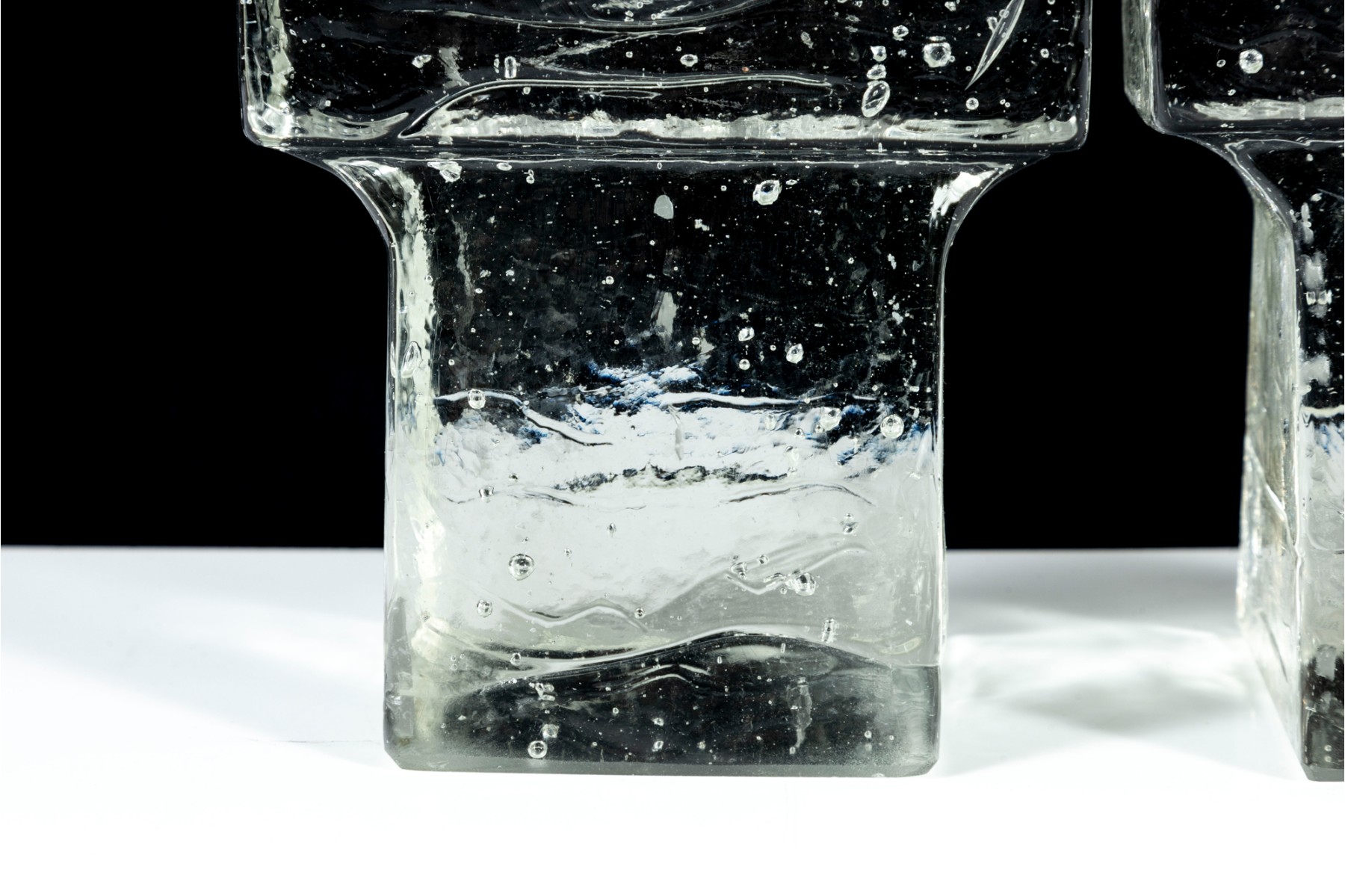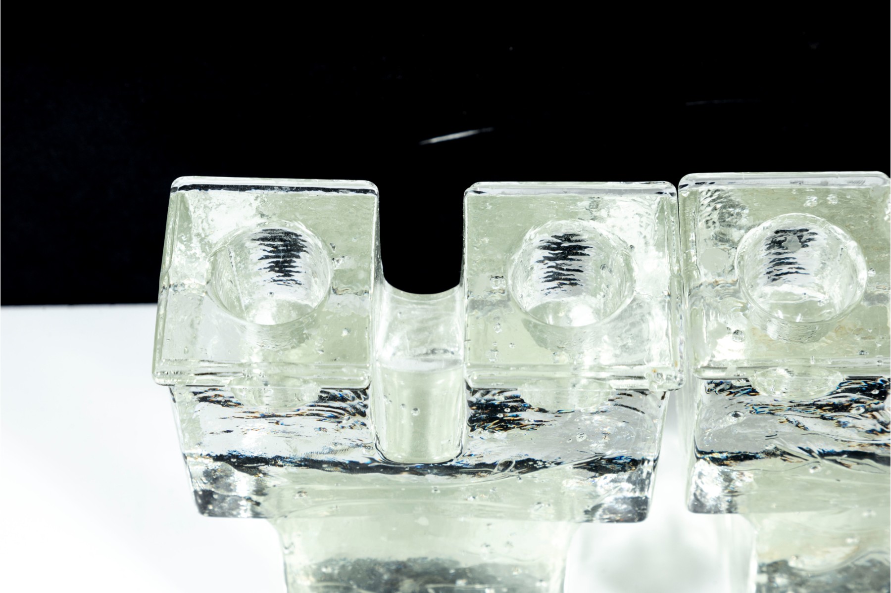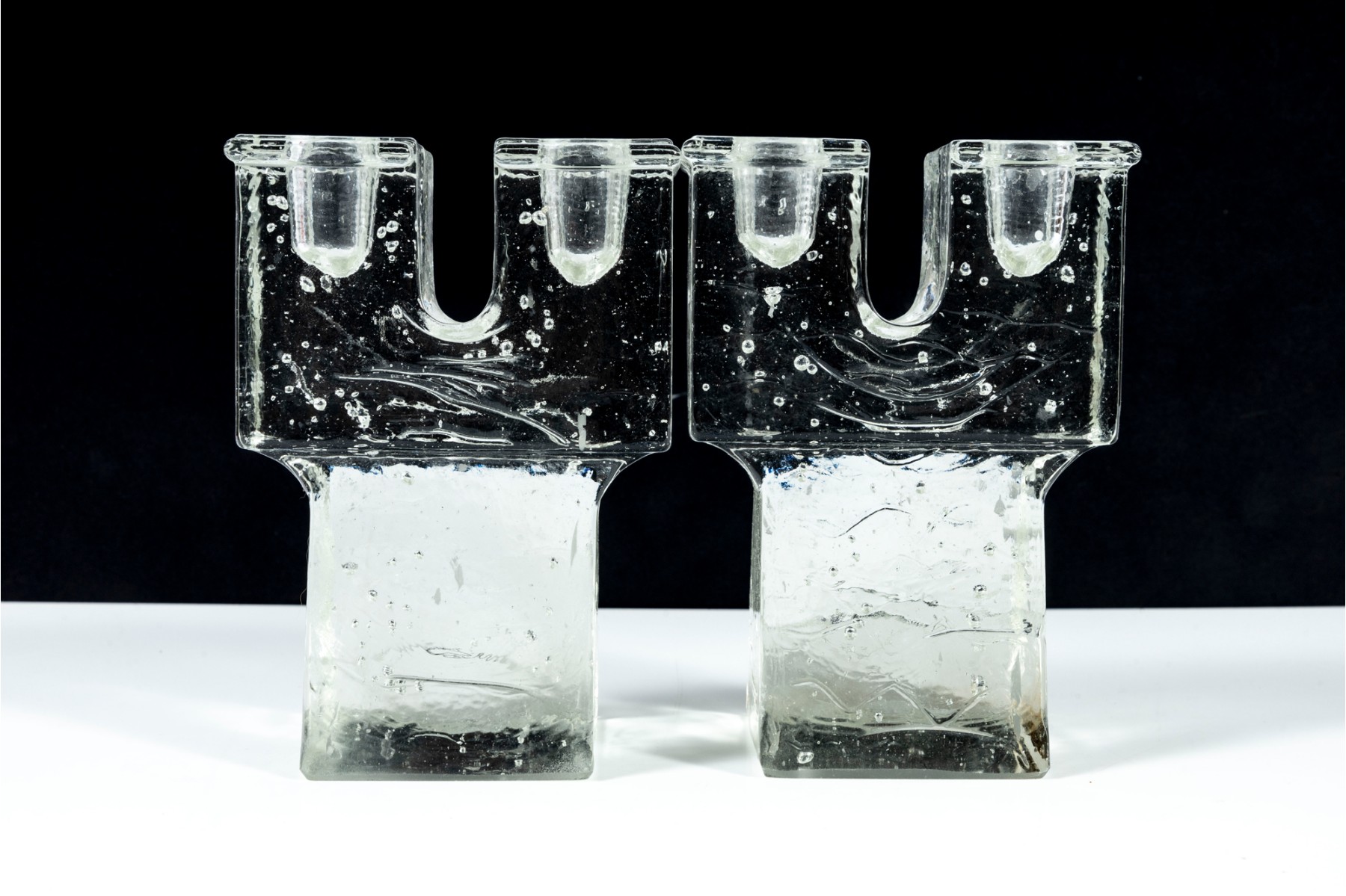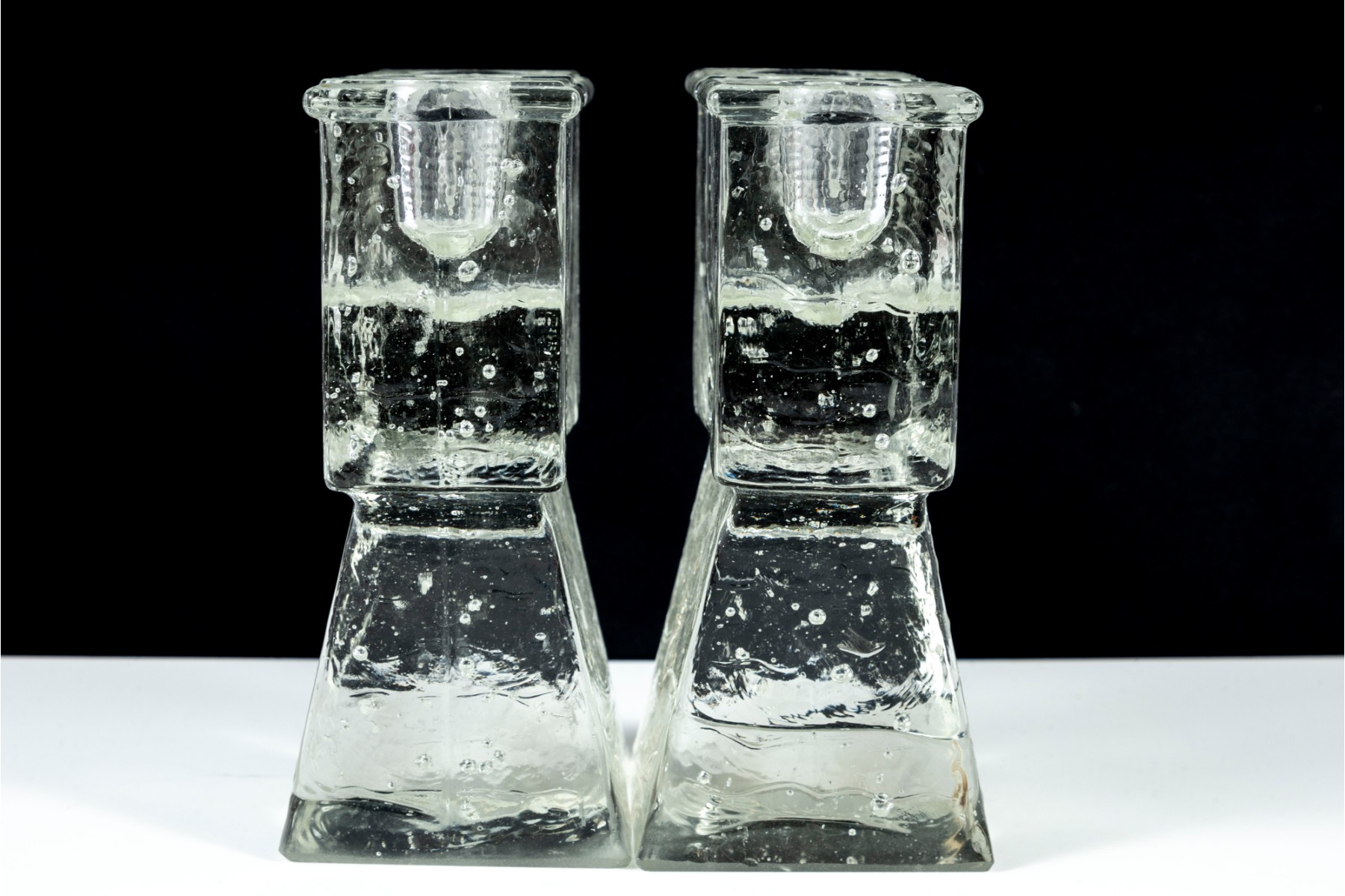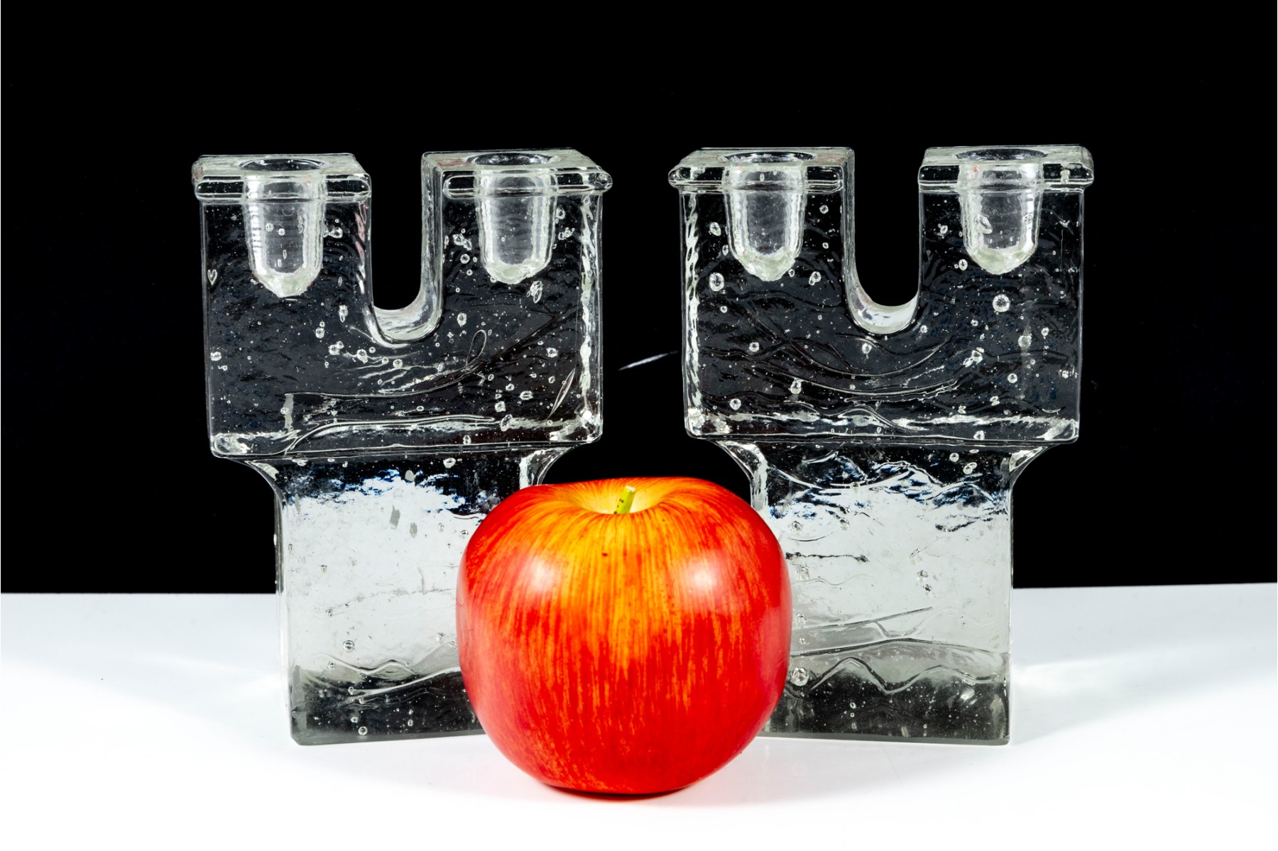 This elegant pair of Mikasa Walther West Germany crystal glass candle holders beautifully showcase the craftsmanship of fine crystal, showcasing natural air bubbles throughout.