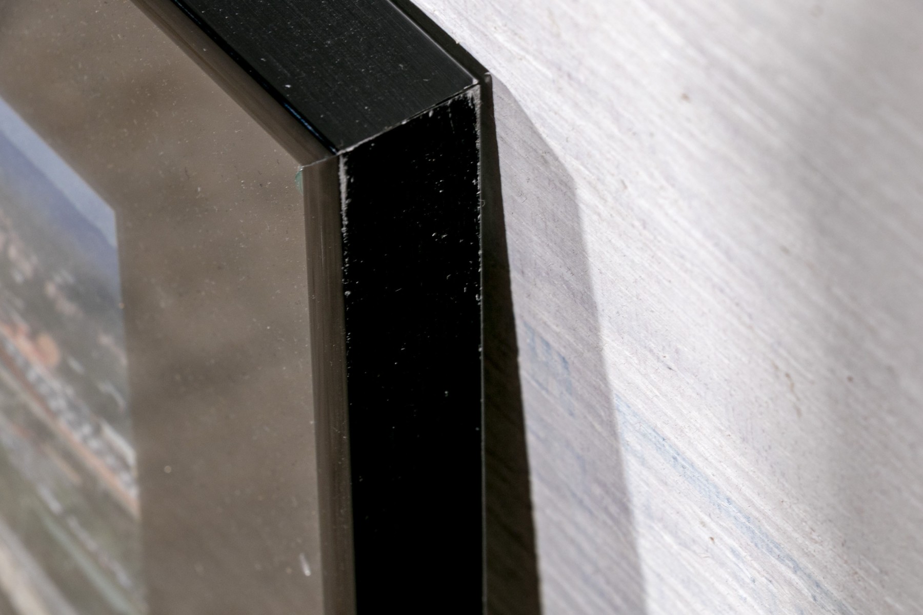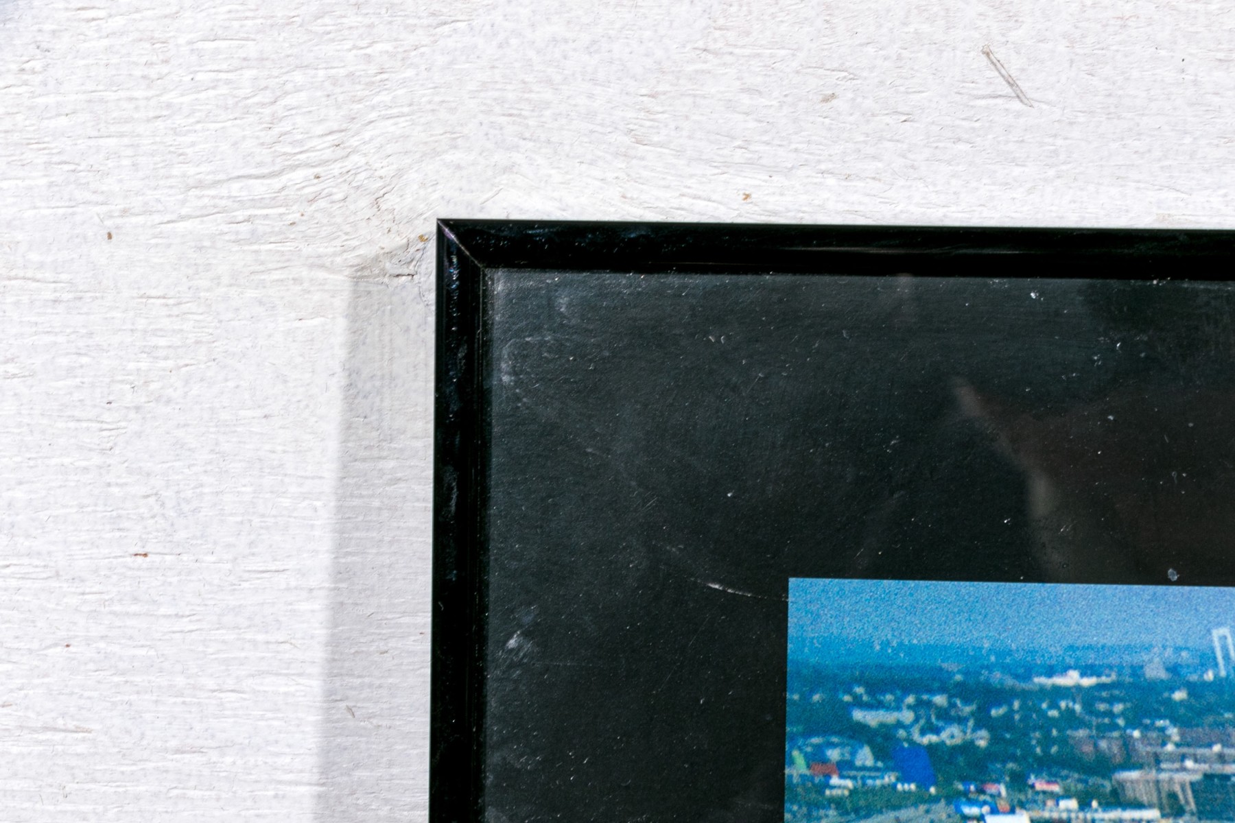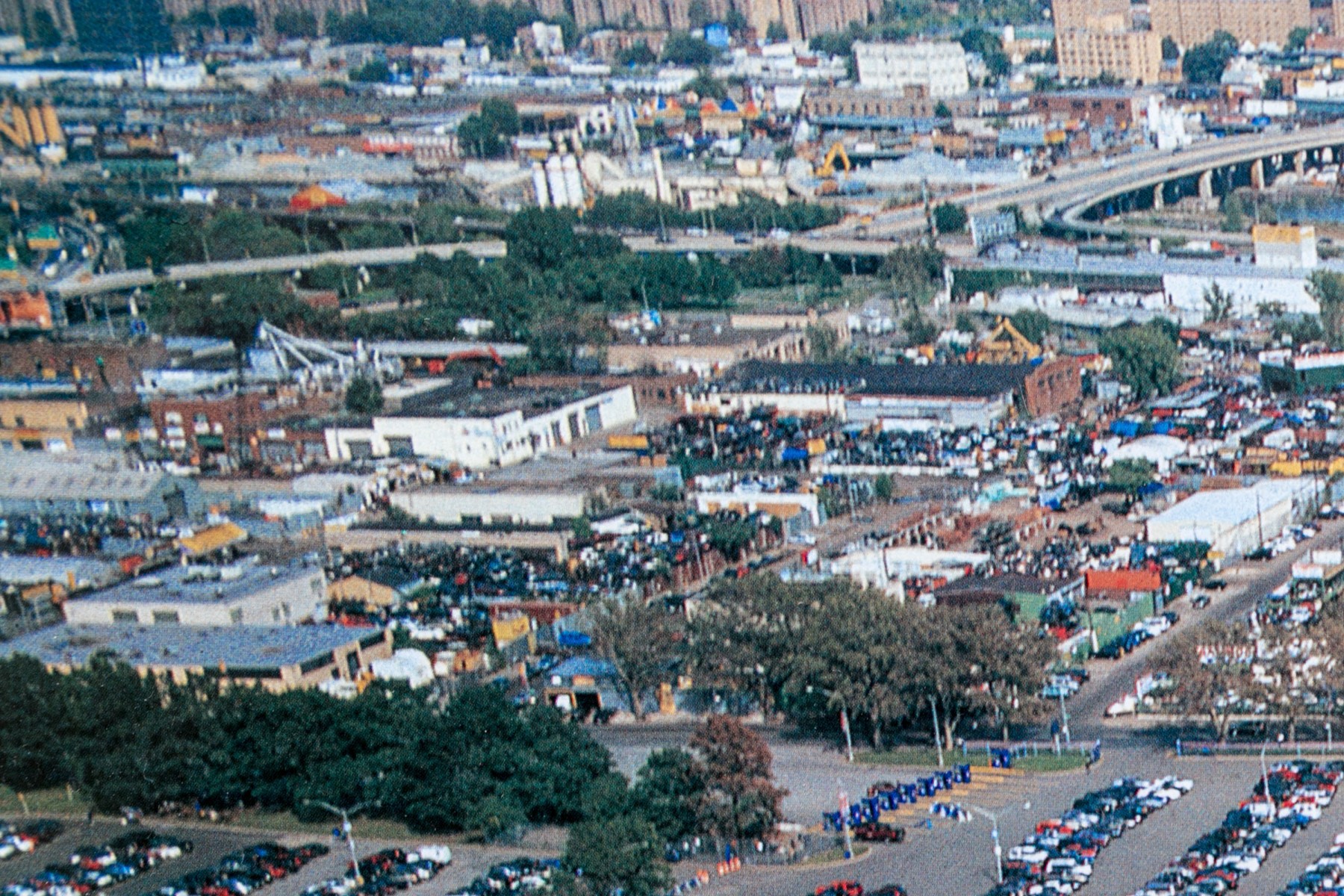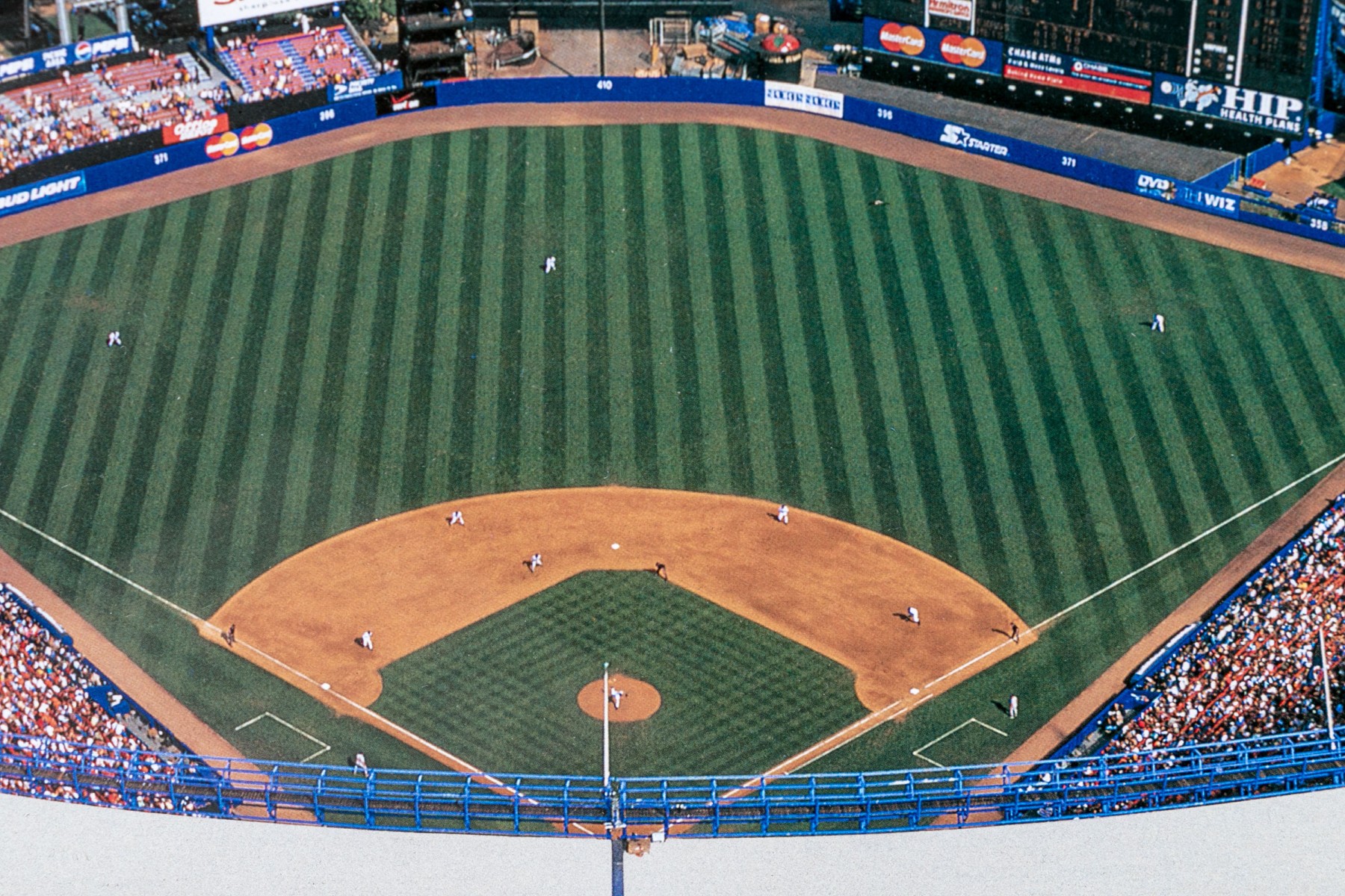 An aerial image taken on October 1, 2000 of the former Shea Stadium, the long time home of the Mets baseball team. It was dismantled in 2009. Presented in a black frame with glass.
