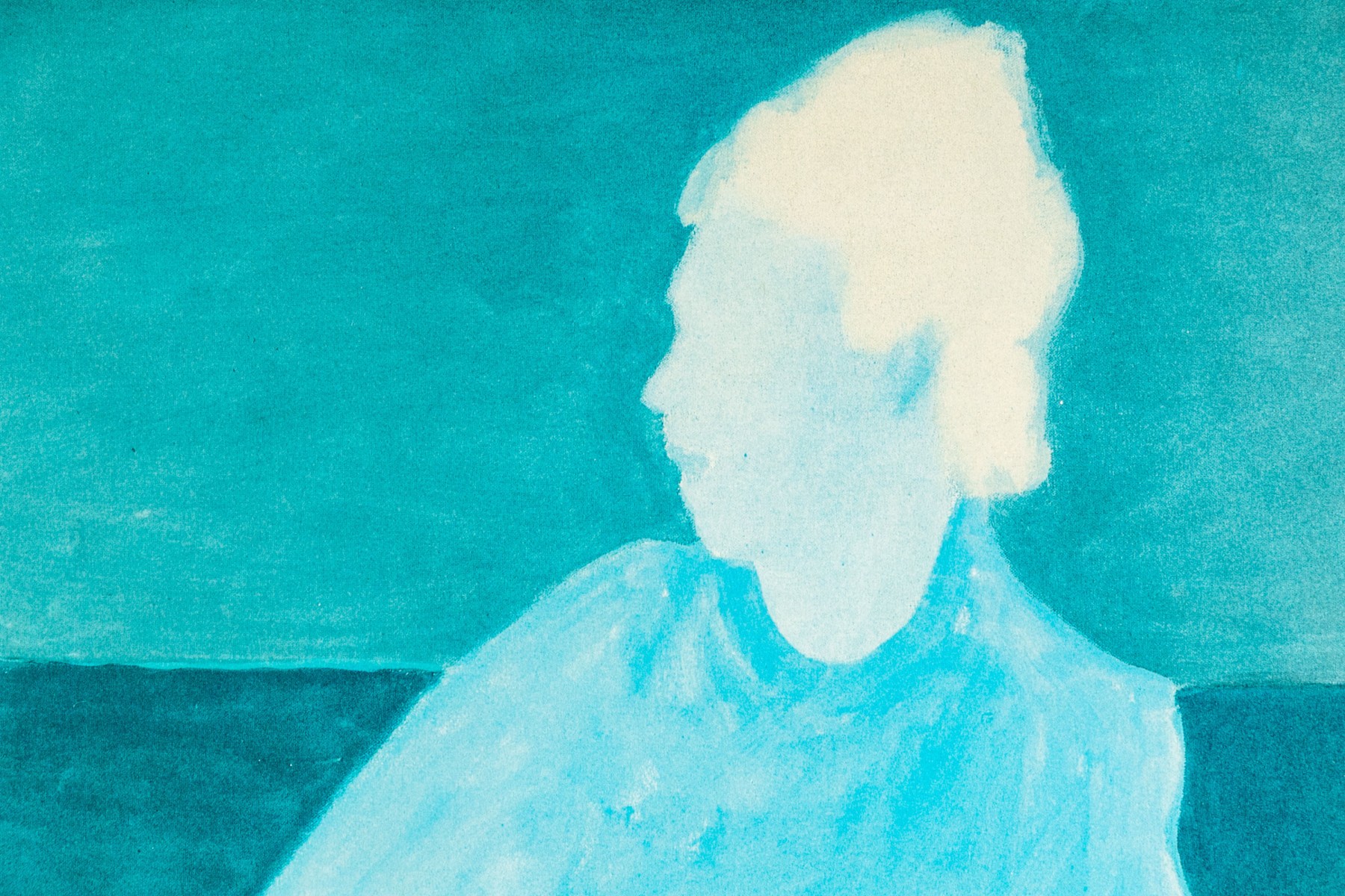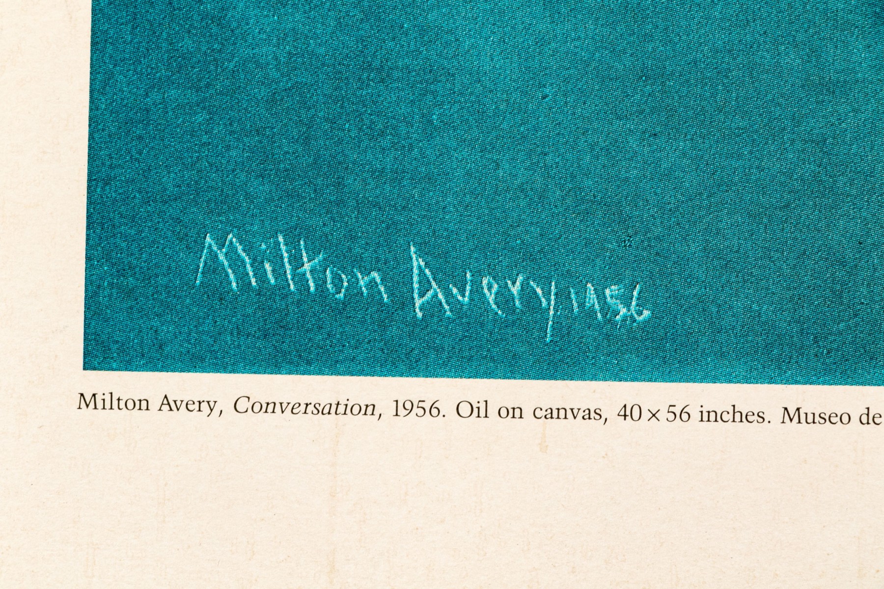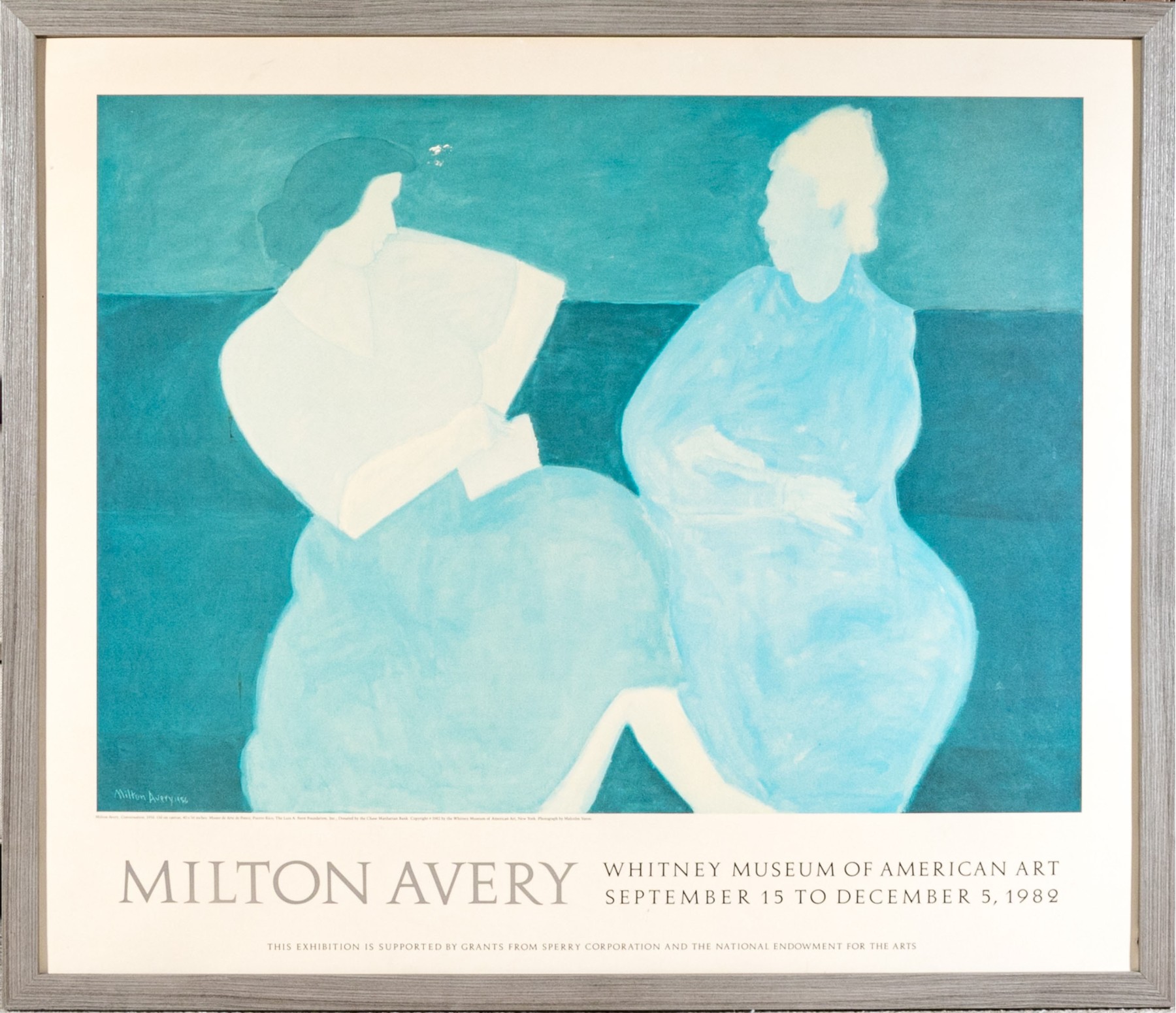 A beautifully hued exhibition poster depicting "Conversation."