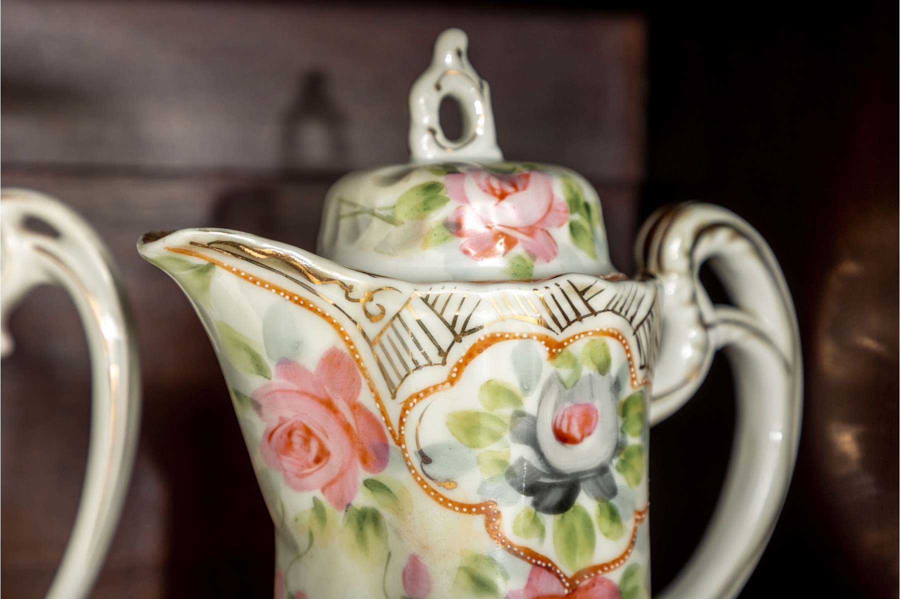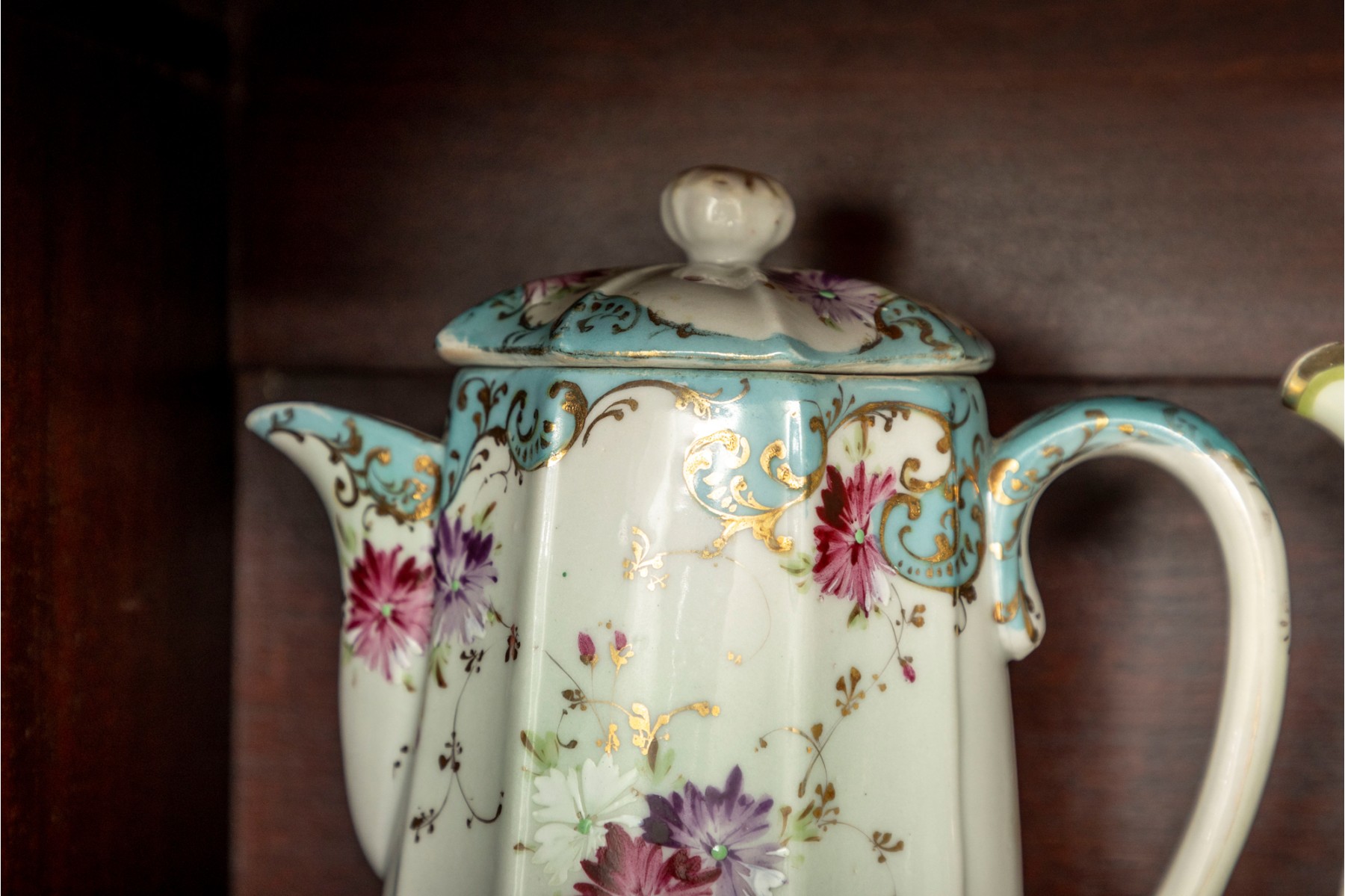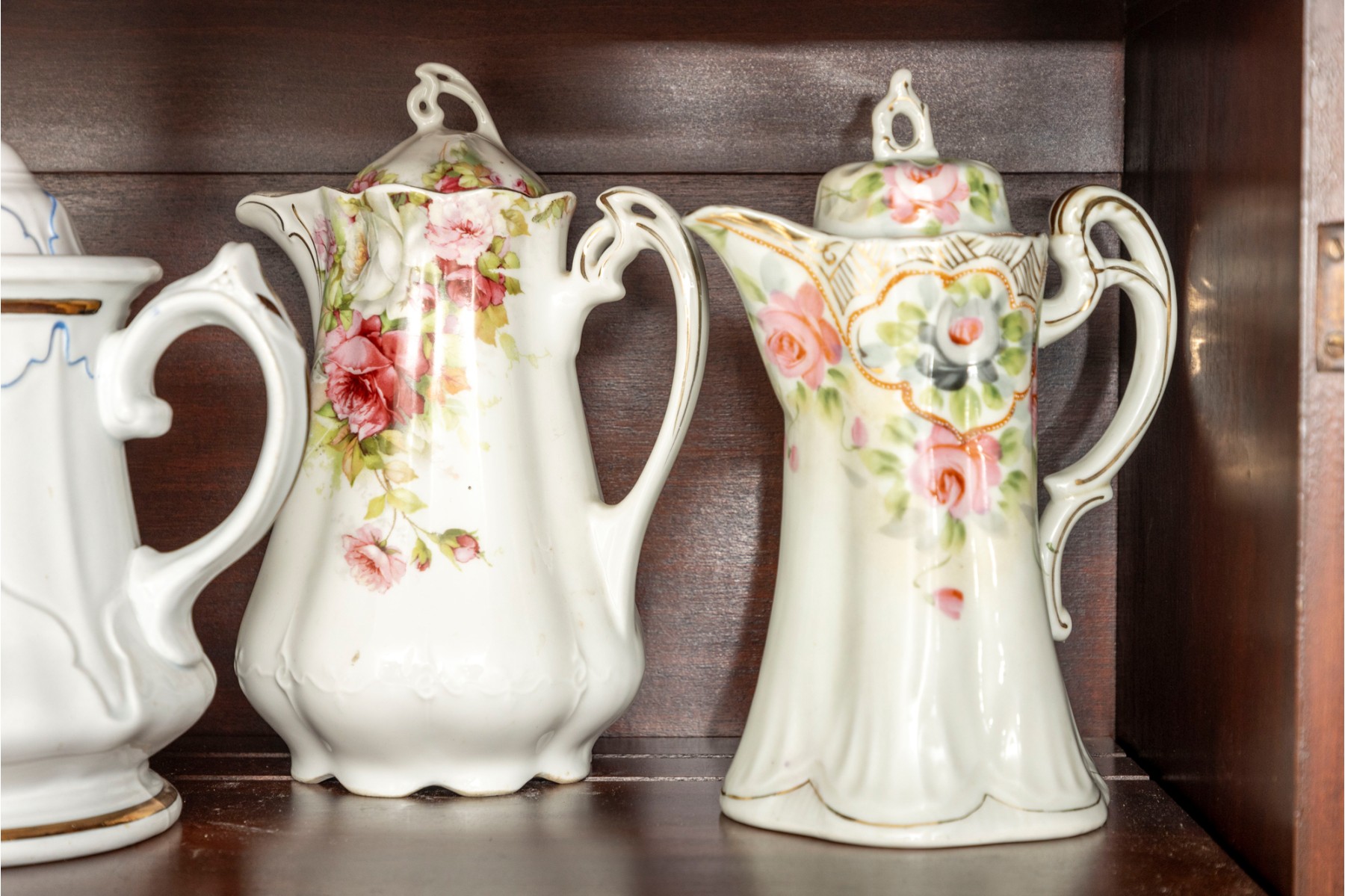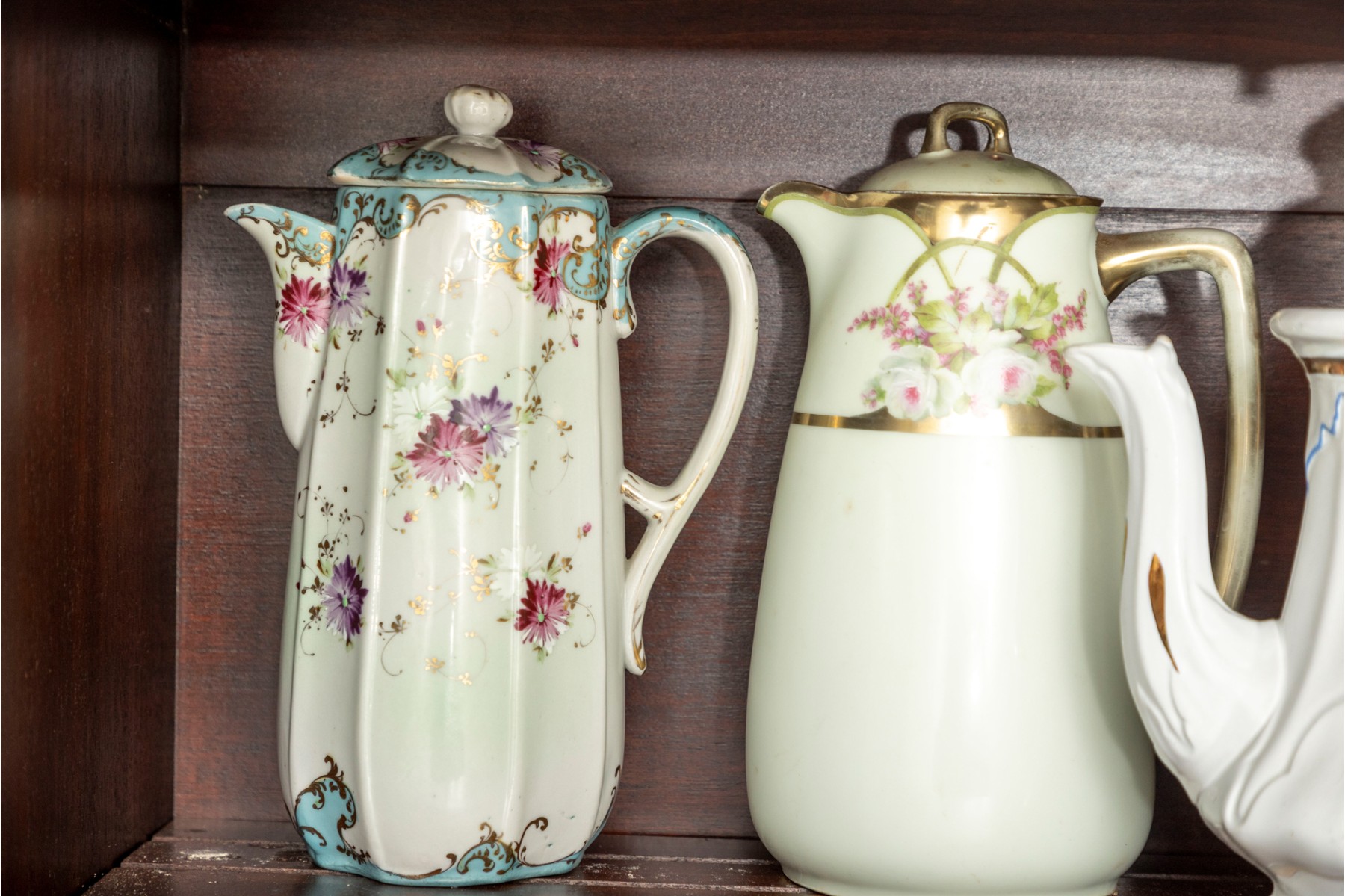 A collection of ten antique porcelain teapots. Varying makers. See photos for details.