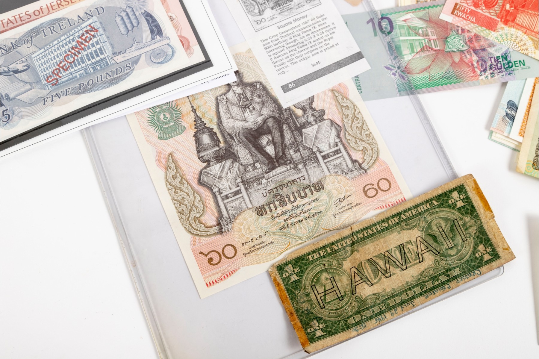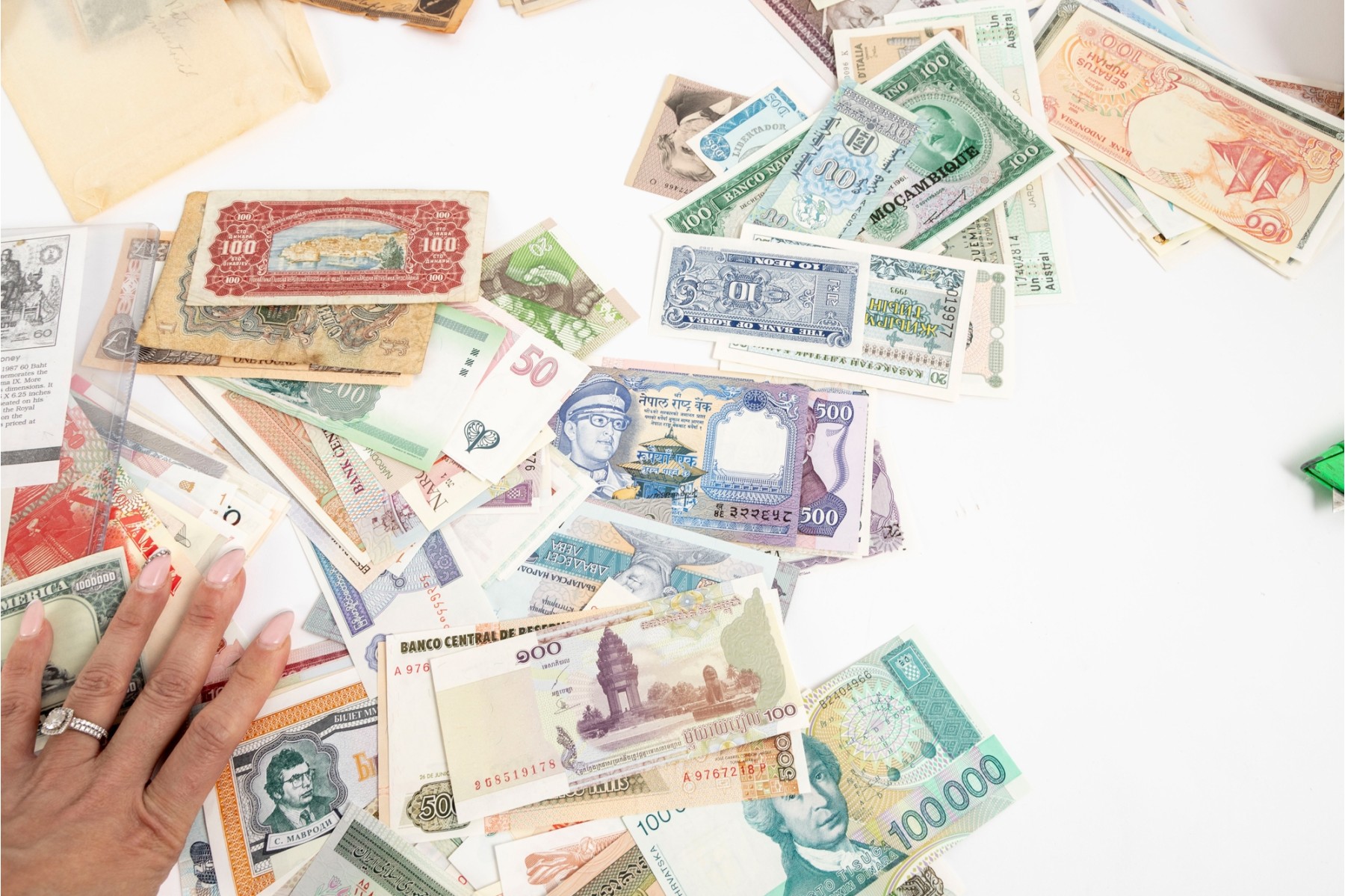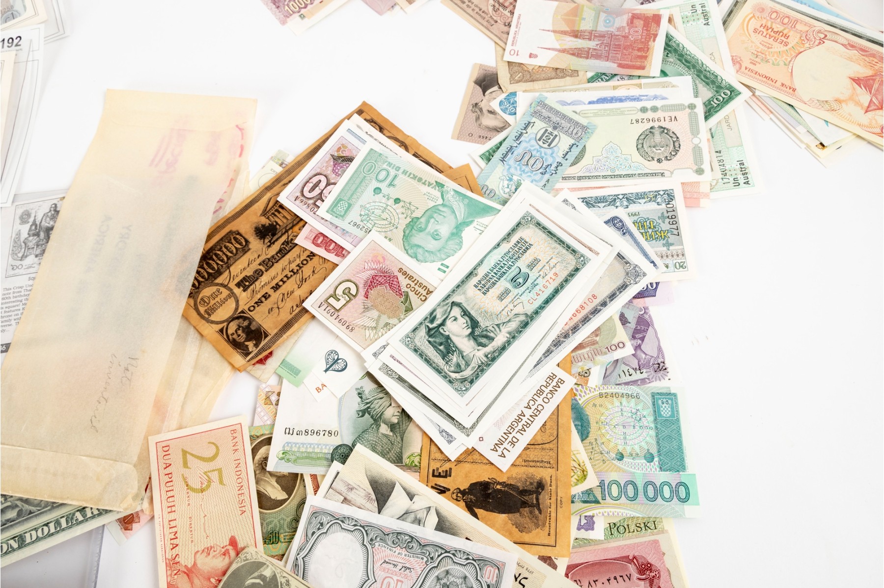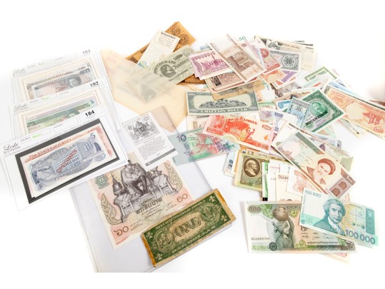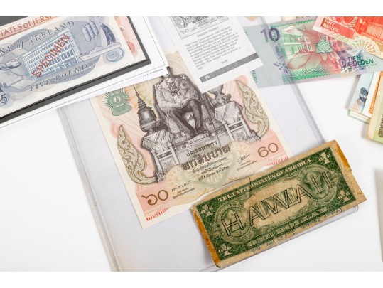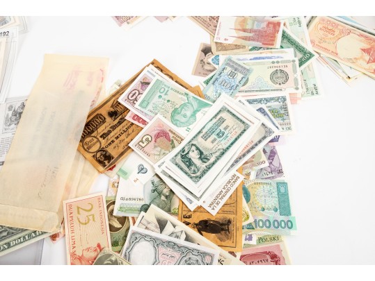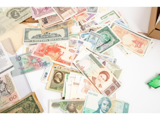 A large collection of currency from multiple nations. Bank notes and varied forms of currency -- refer to photos for details and contents.