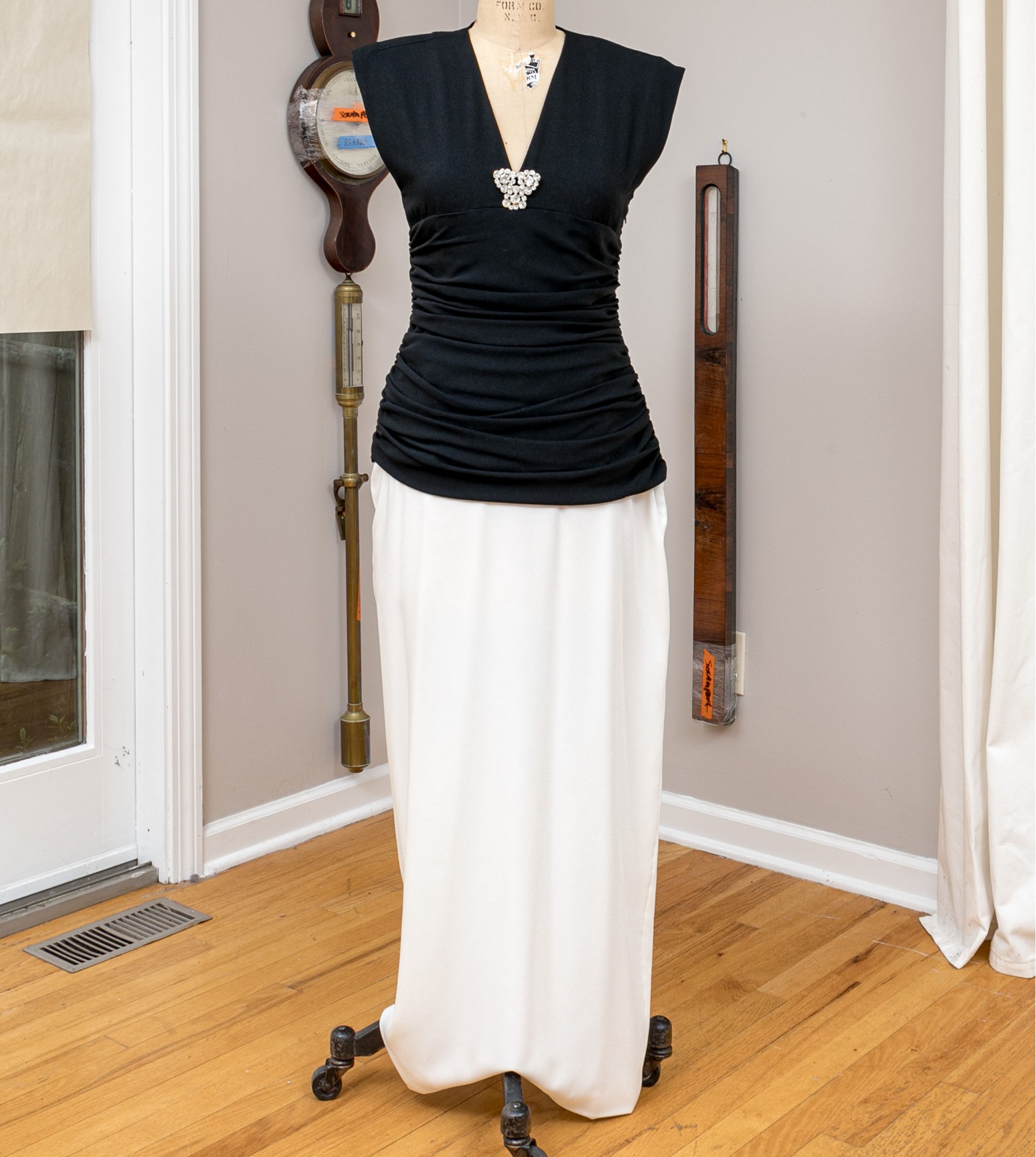 Miss O by Oscar de la Renta striking ivory and black long dress, size 10