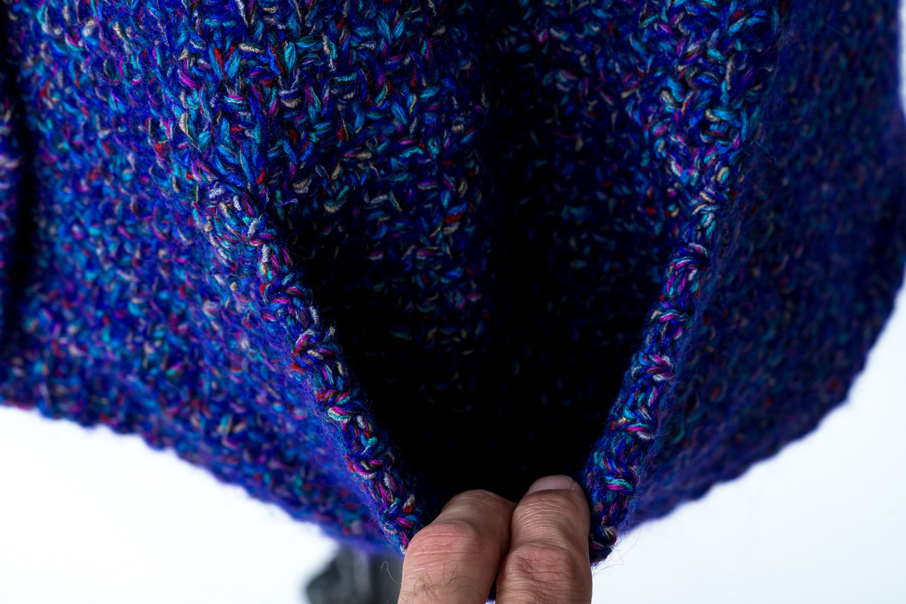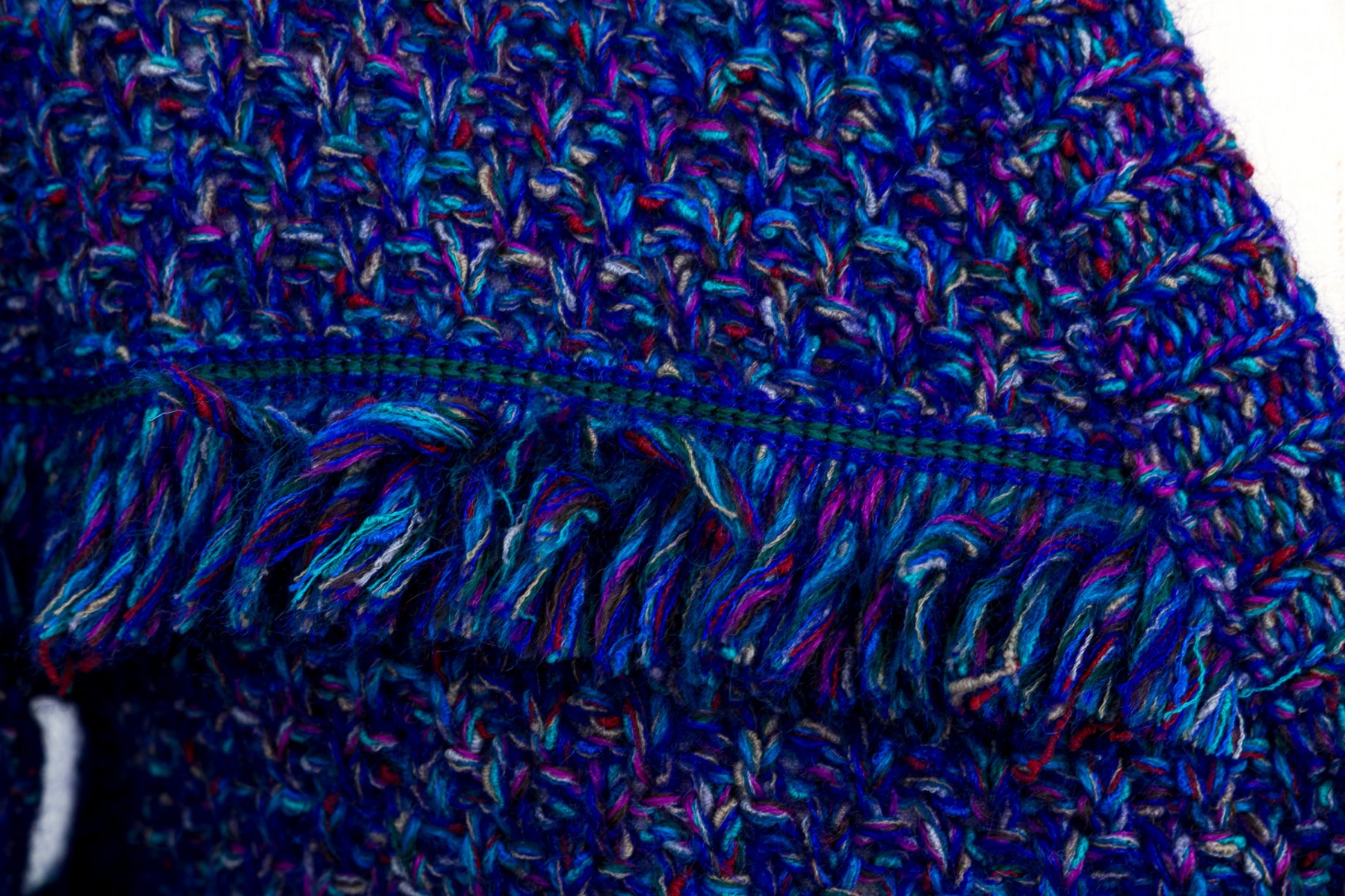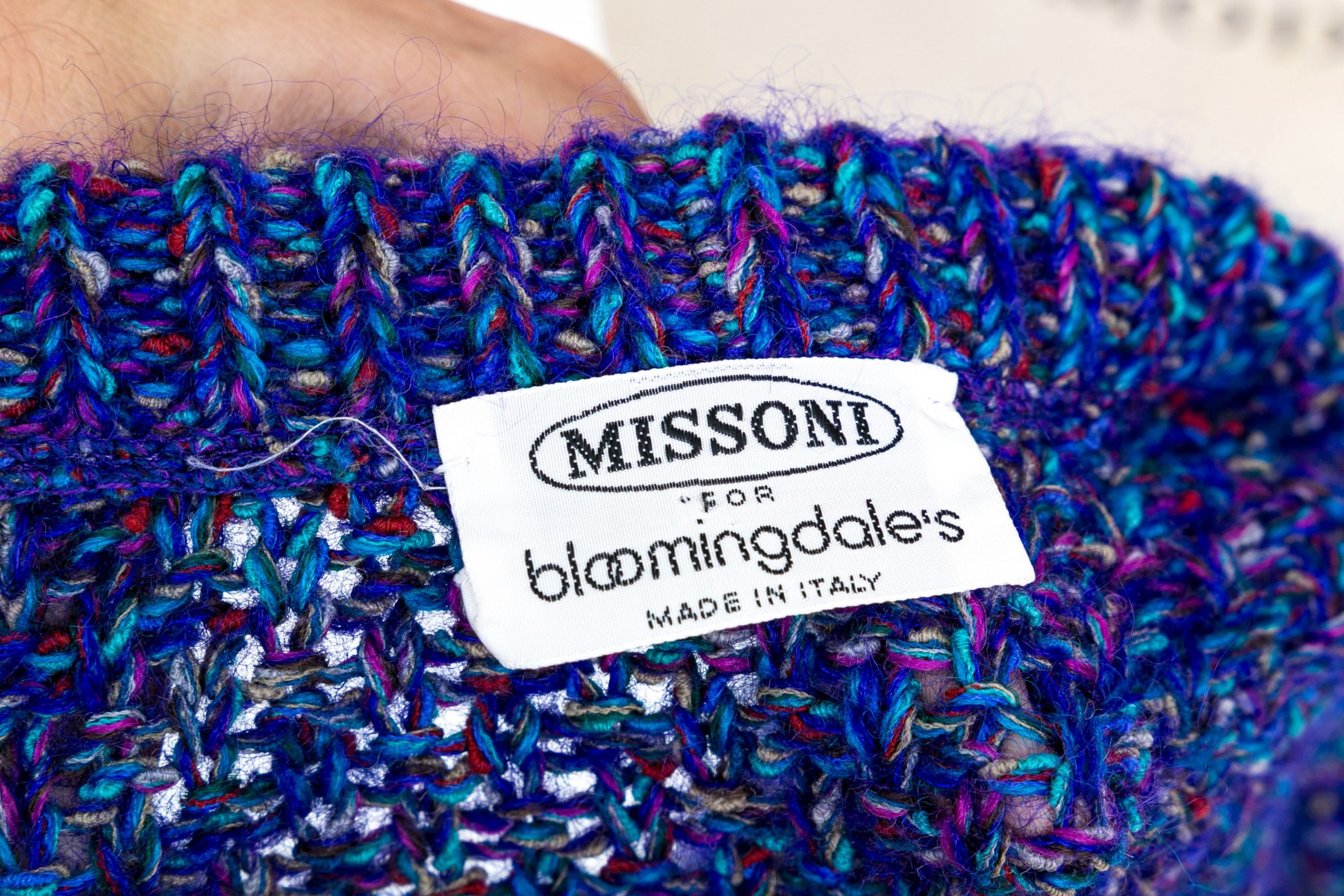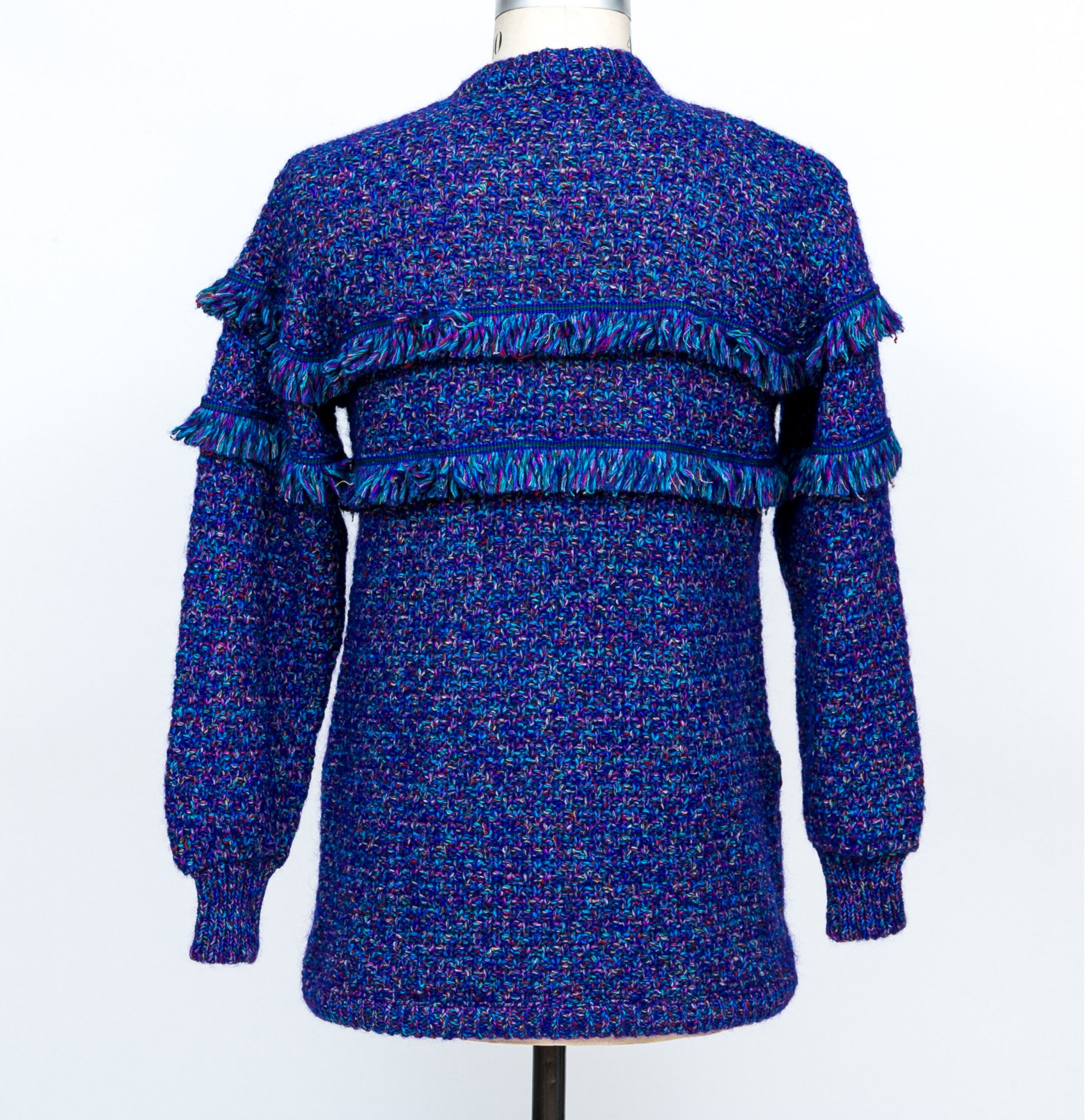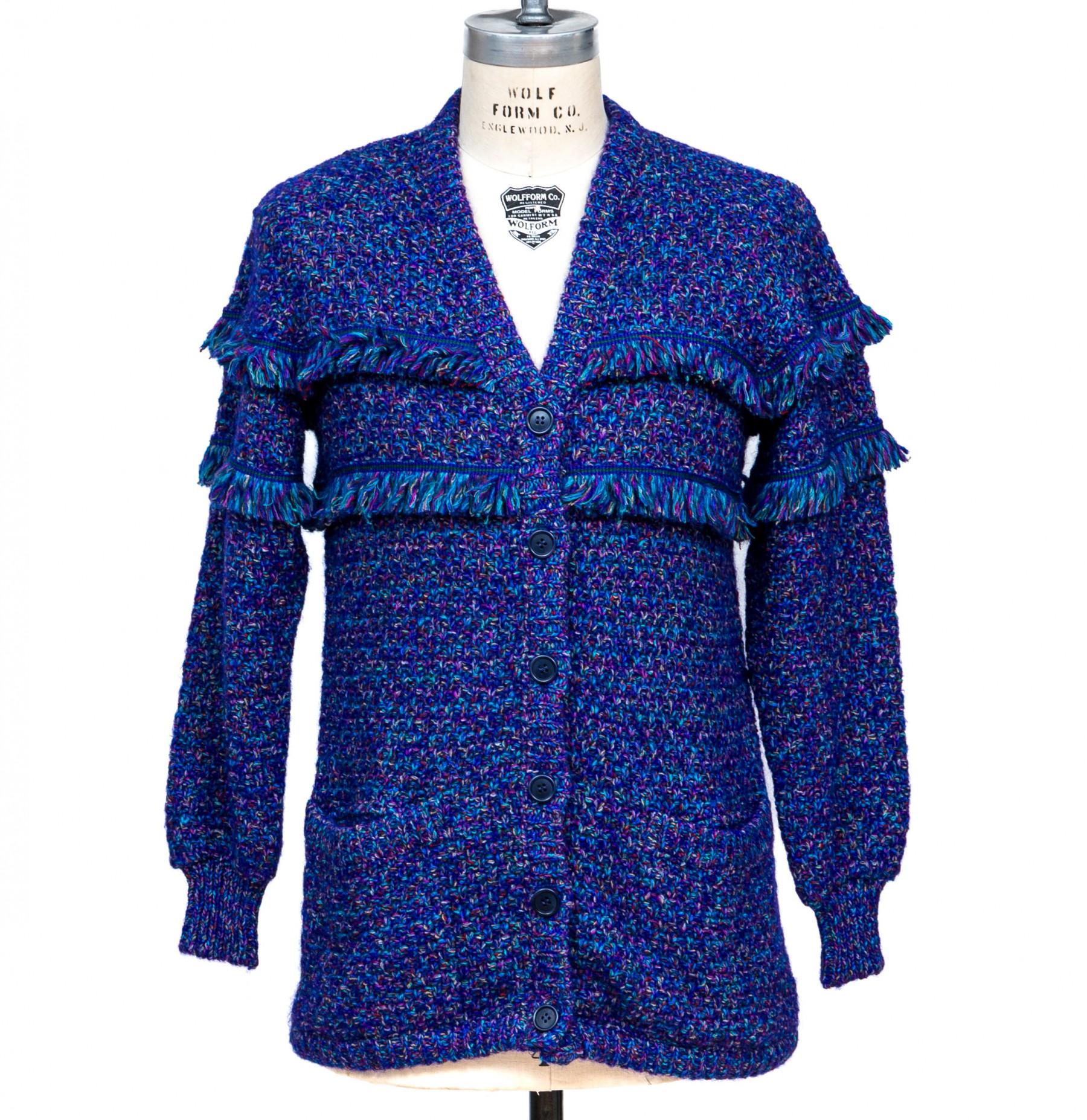 Missoni funky vintage blue knit and fringed cardigan sweater