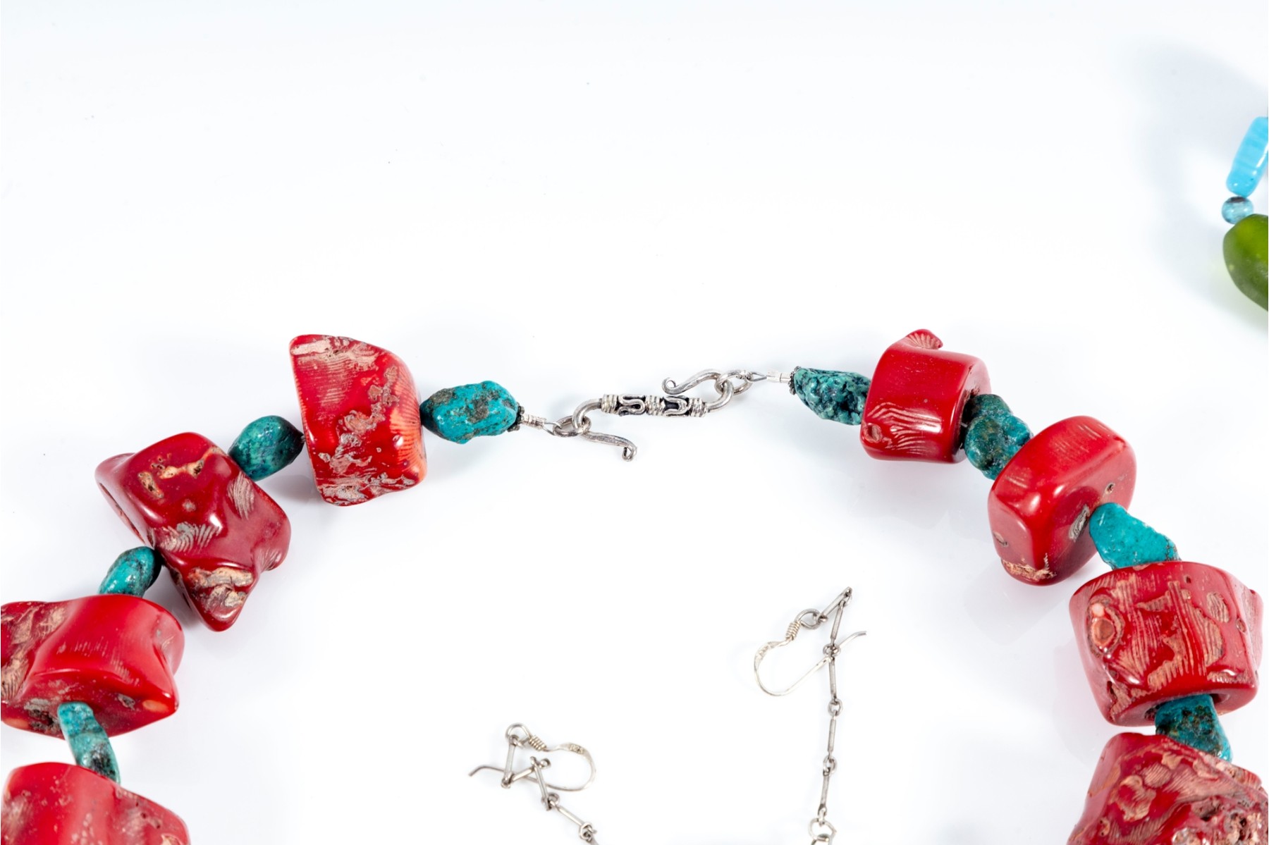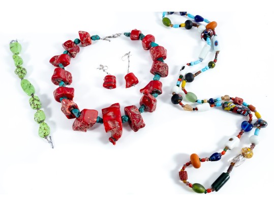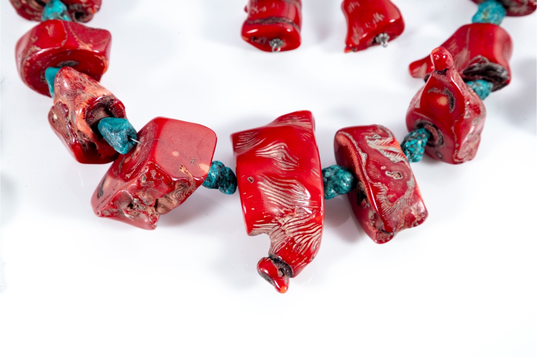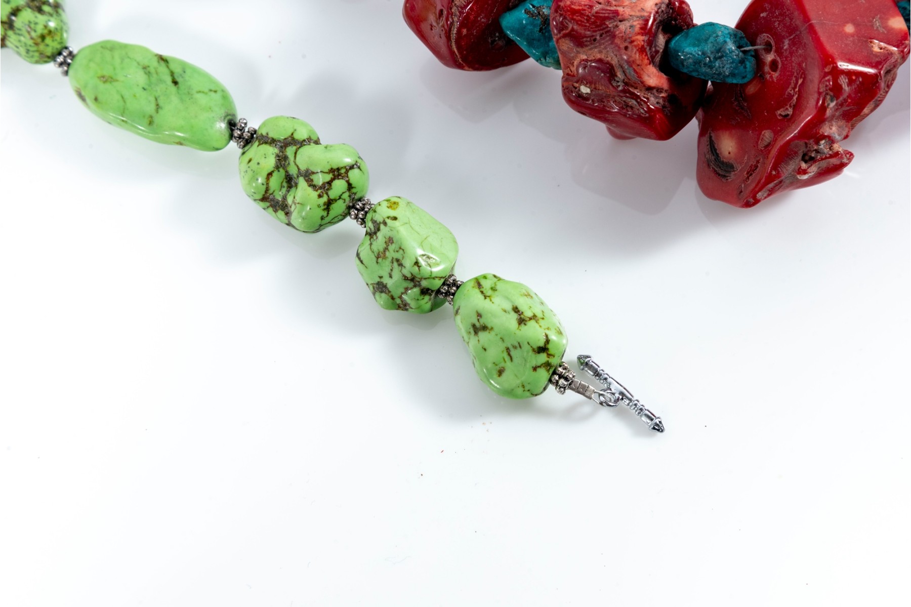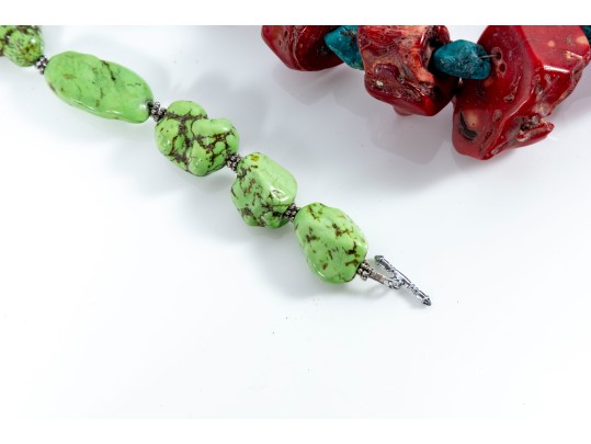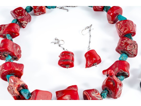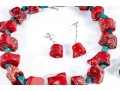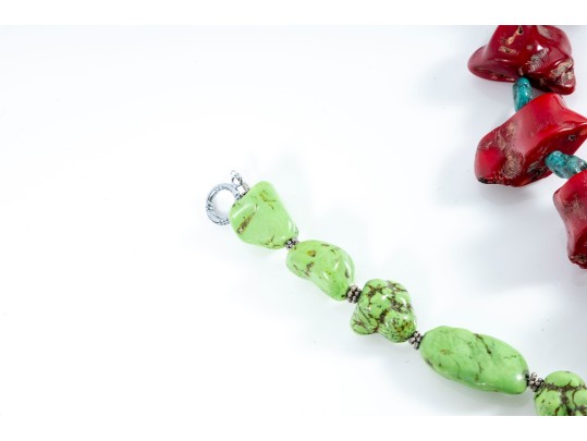 - 18" Turquoise & Red Coral Nugget Necklace