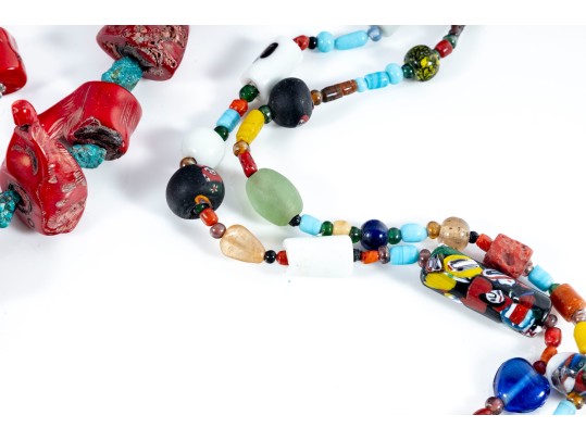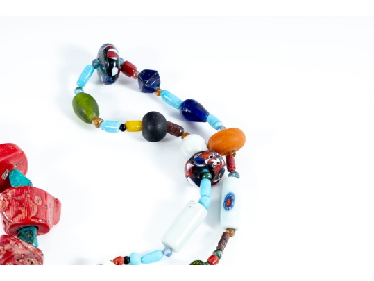 - Large Art Glass & Ceramic Bead Necklace