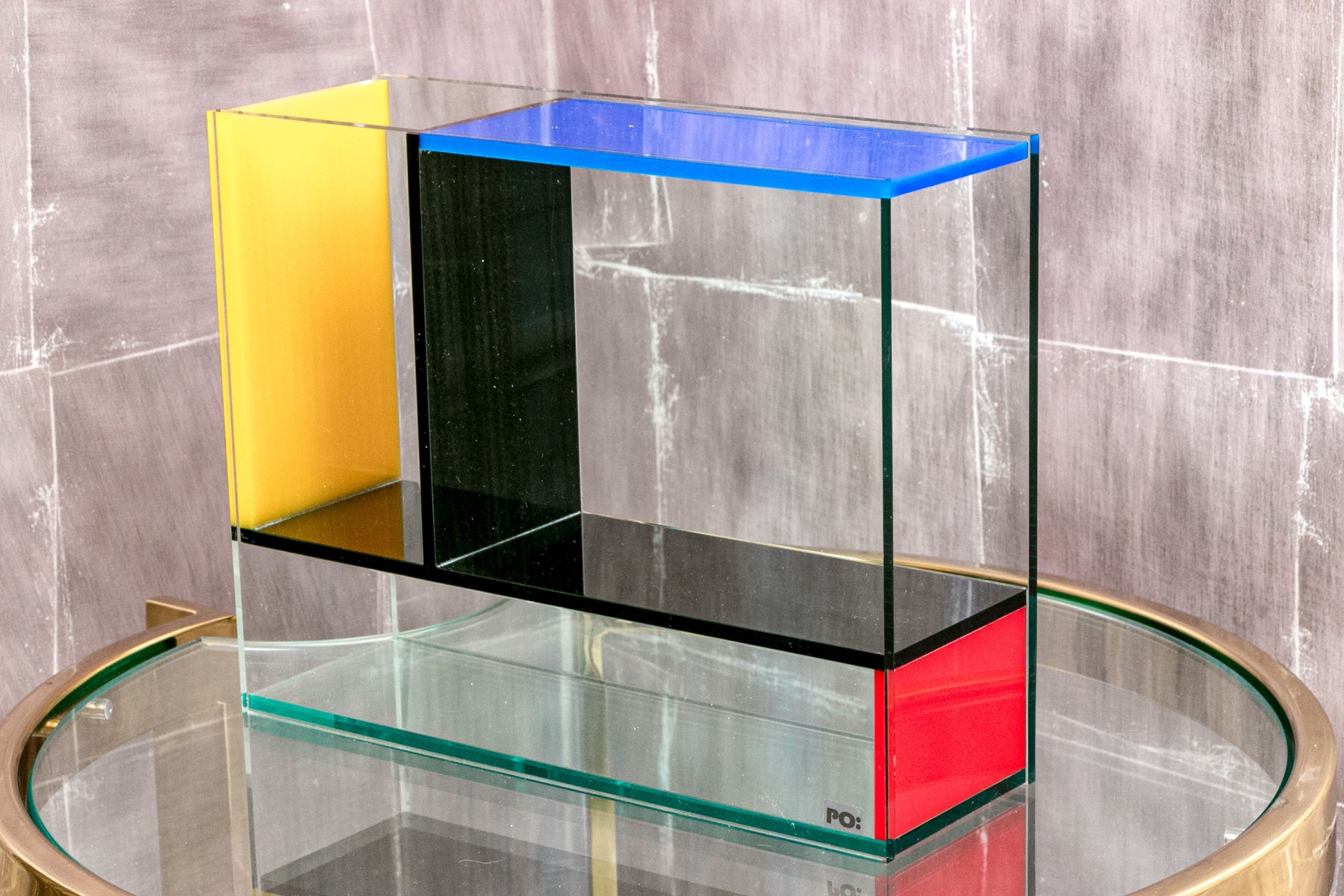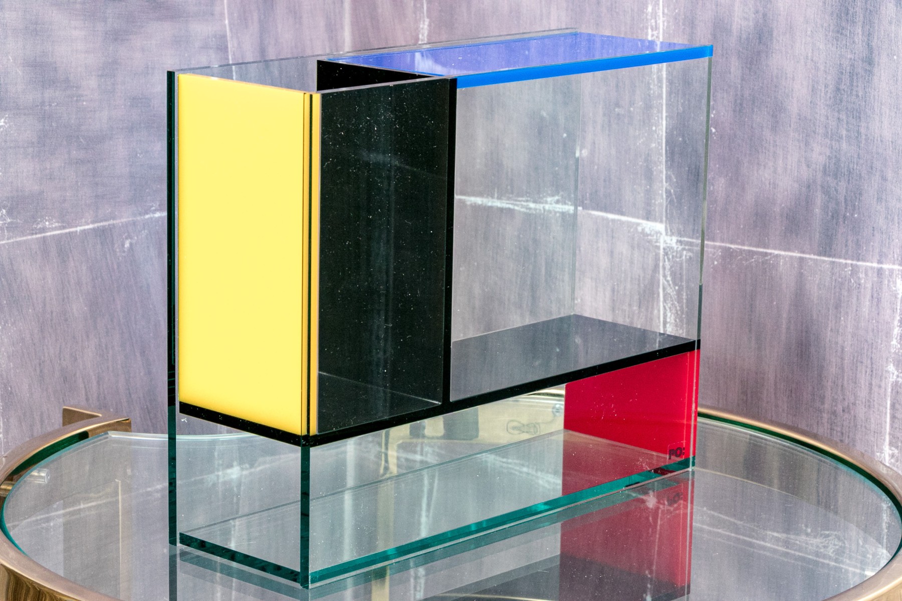 The acrylic vase draws its inspiration from the work of Piet Mondrian, and artwork of the De Stijl movement of the Netherland's.