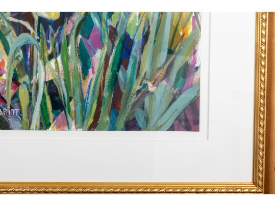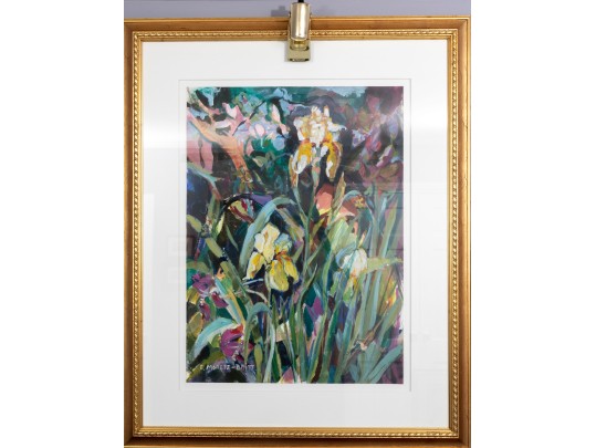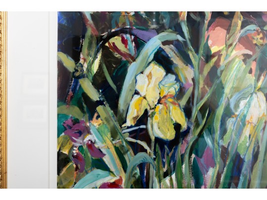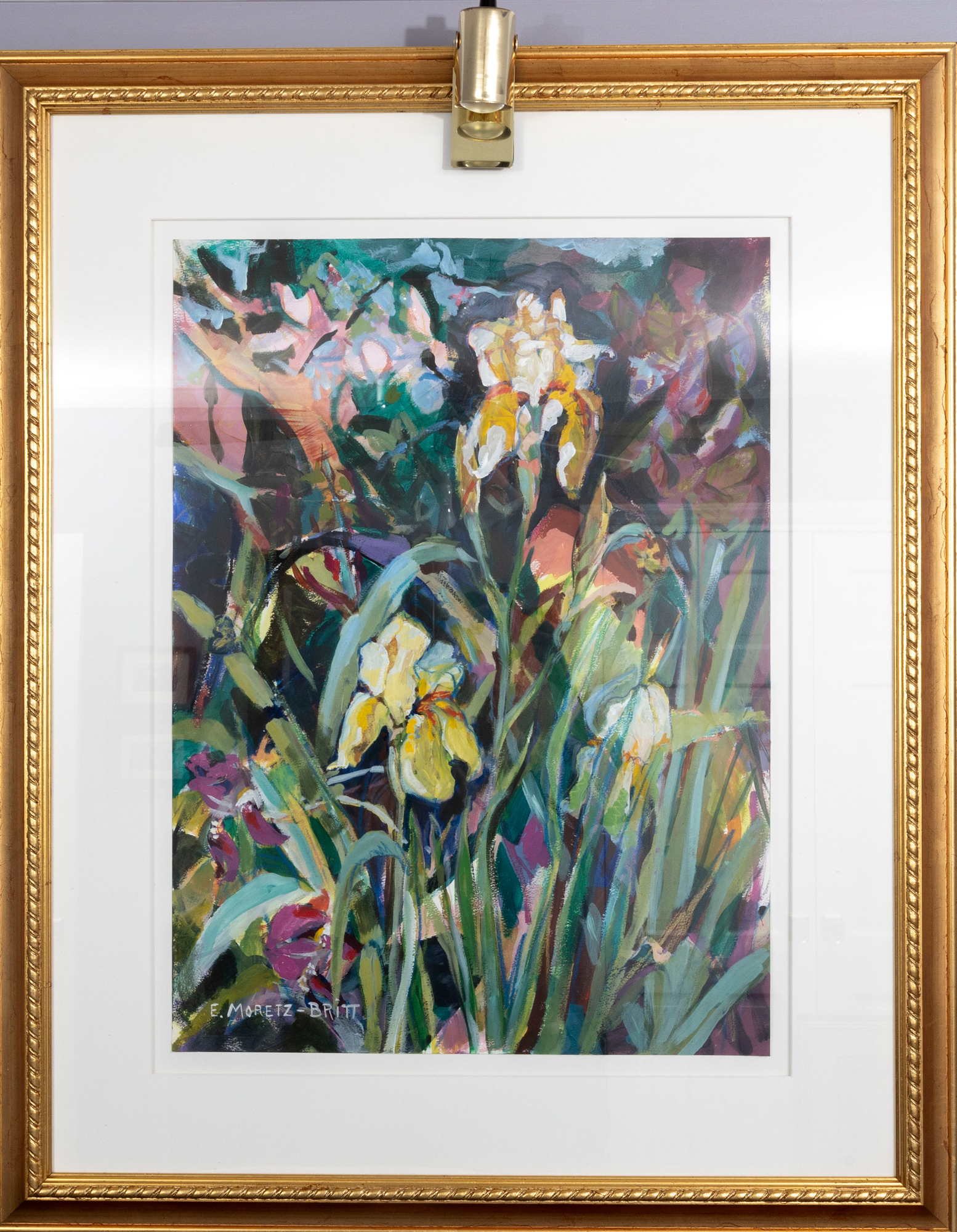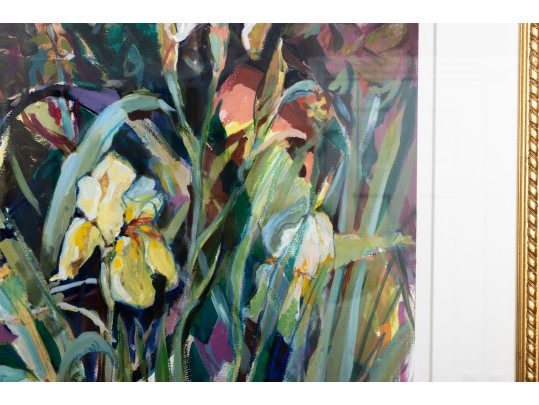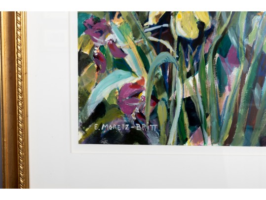 "Morning Irises In March" Original Oil Painting By Elizabeth Moretz-Britt (20/21st Century)
