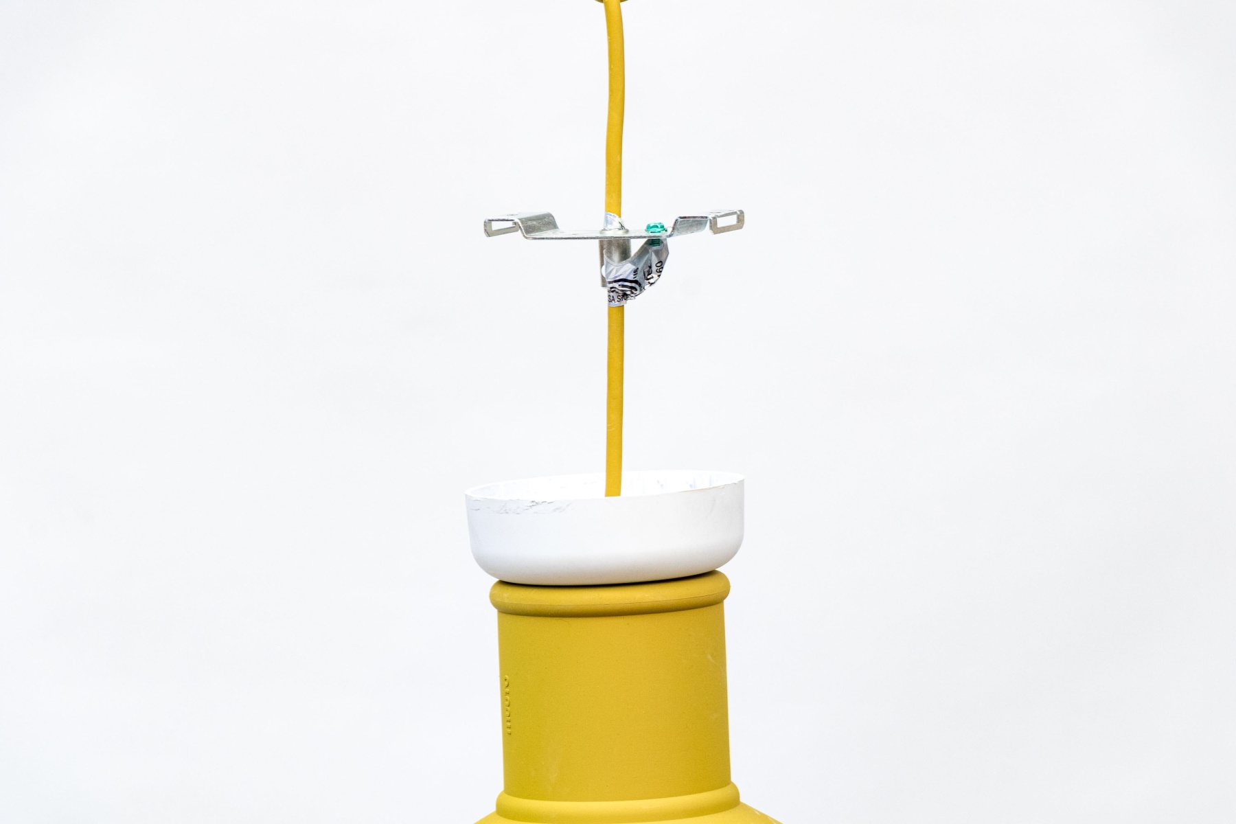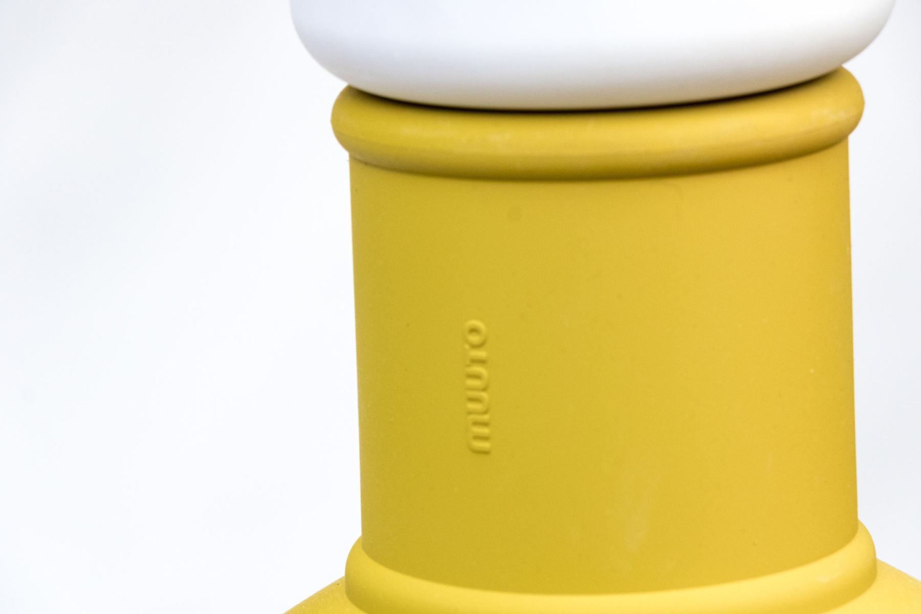Yellow silicone fixture with sing bulb nozzle interior.