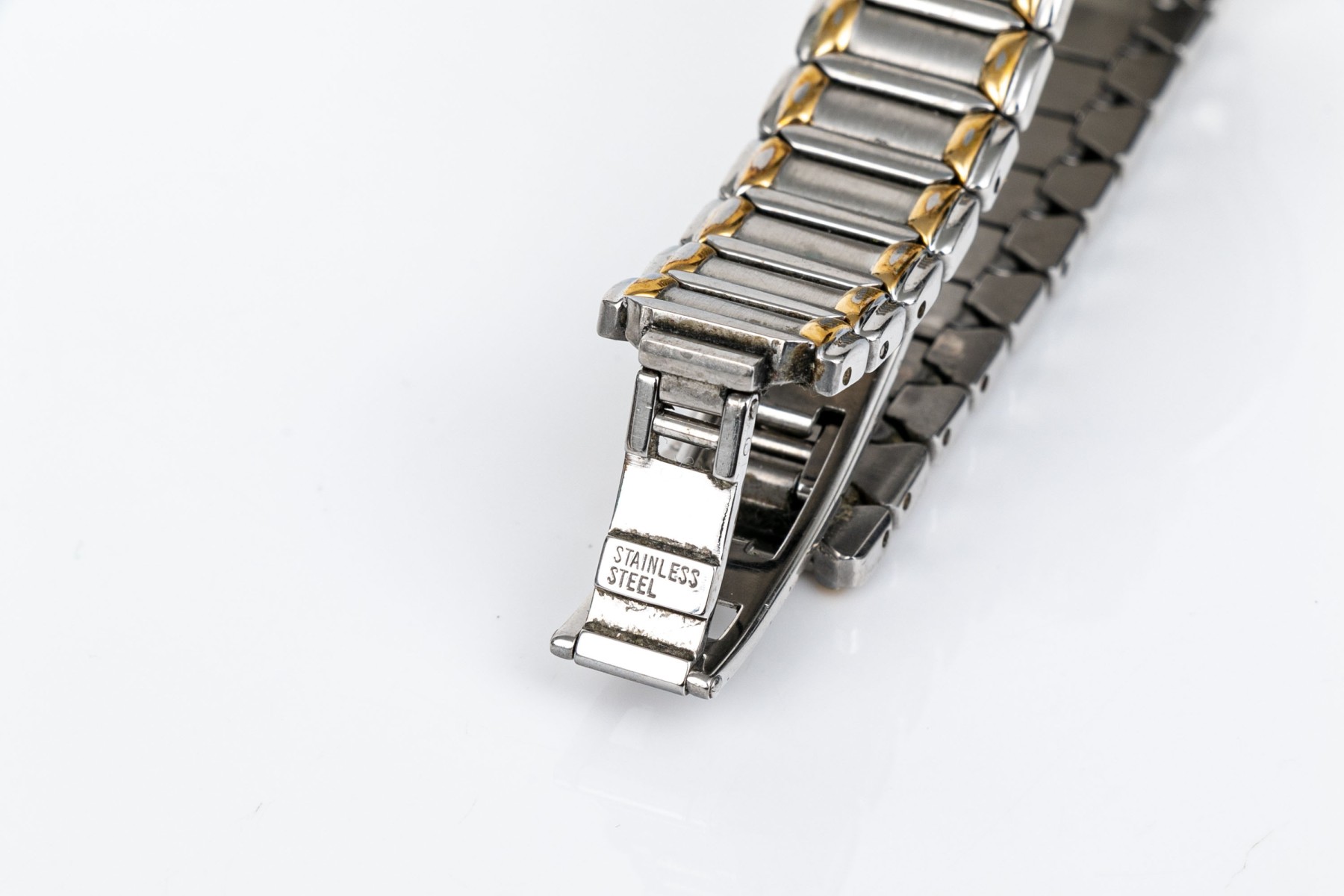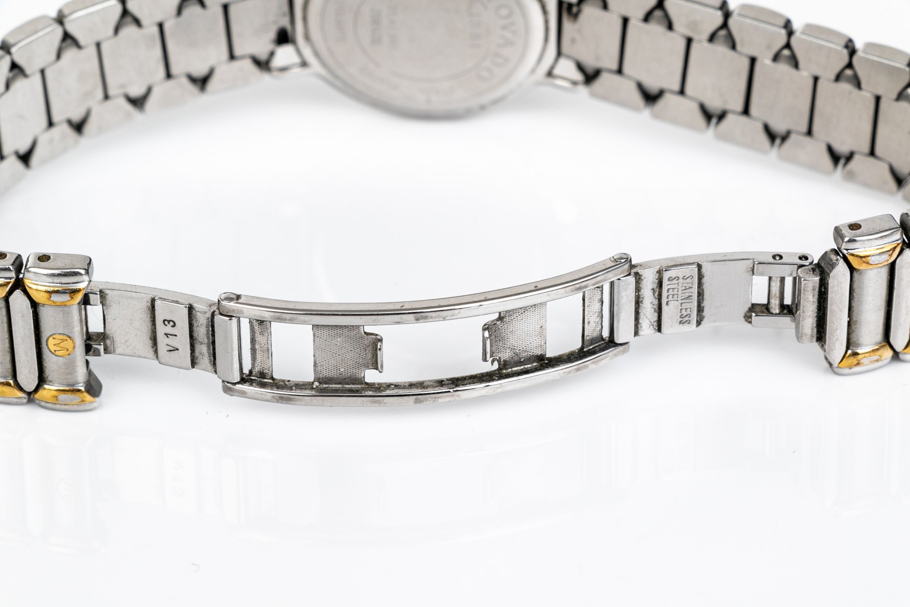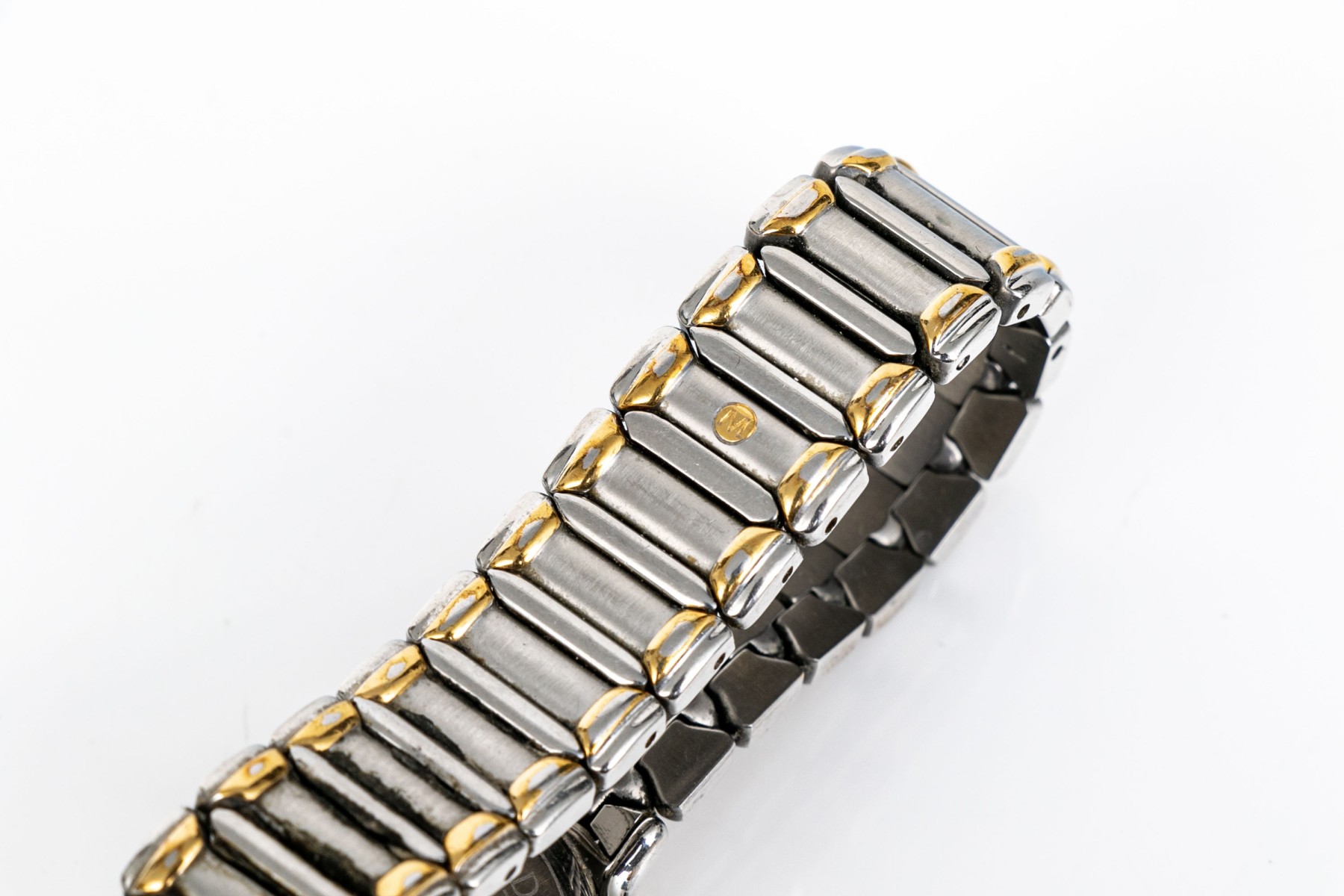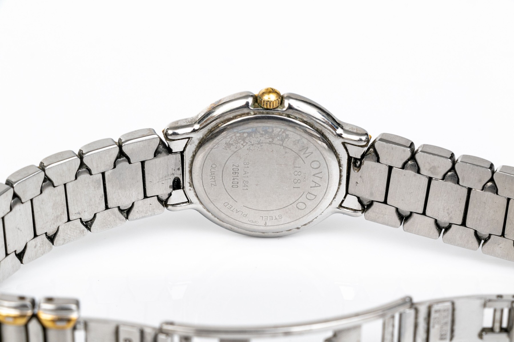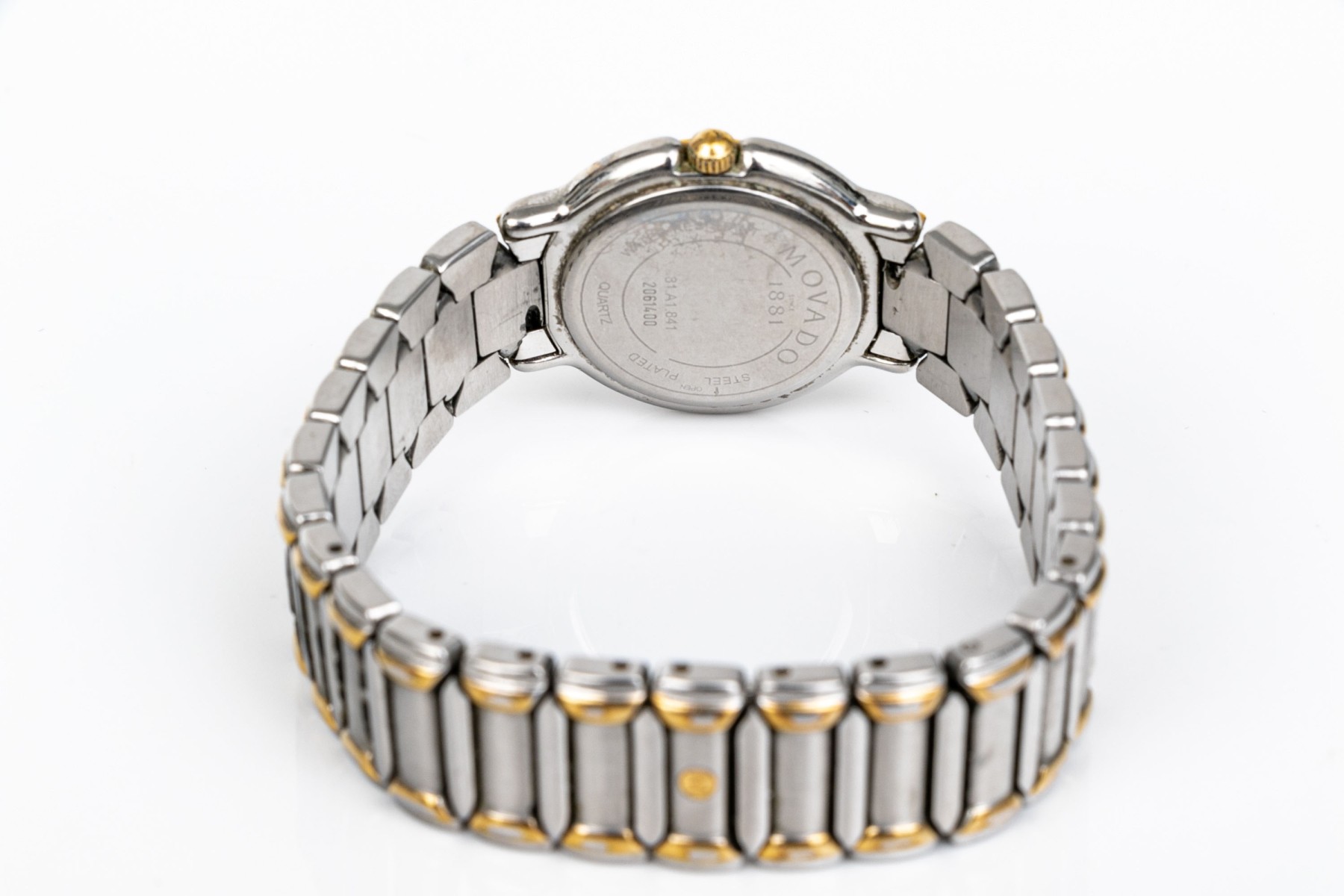 Movado small quartz two tone 26mm watch, white dial black Roman, bracelet