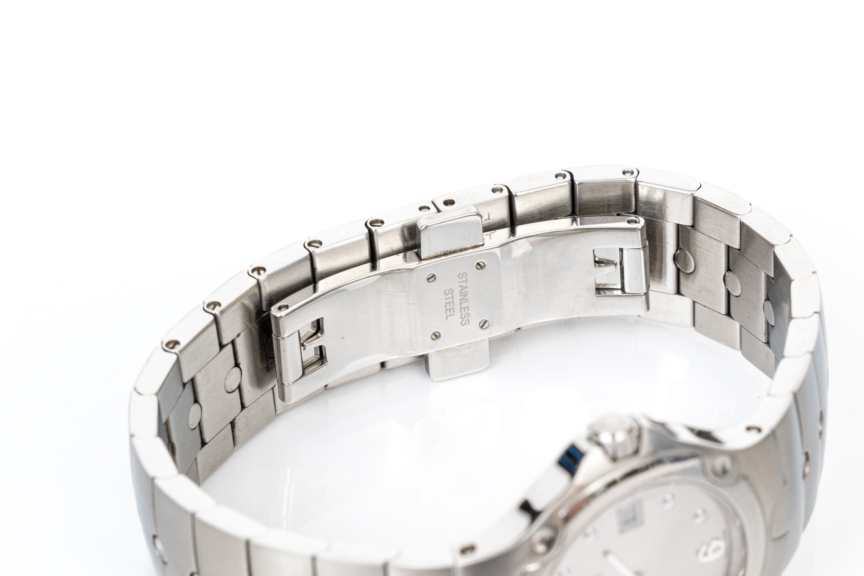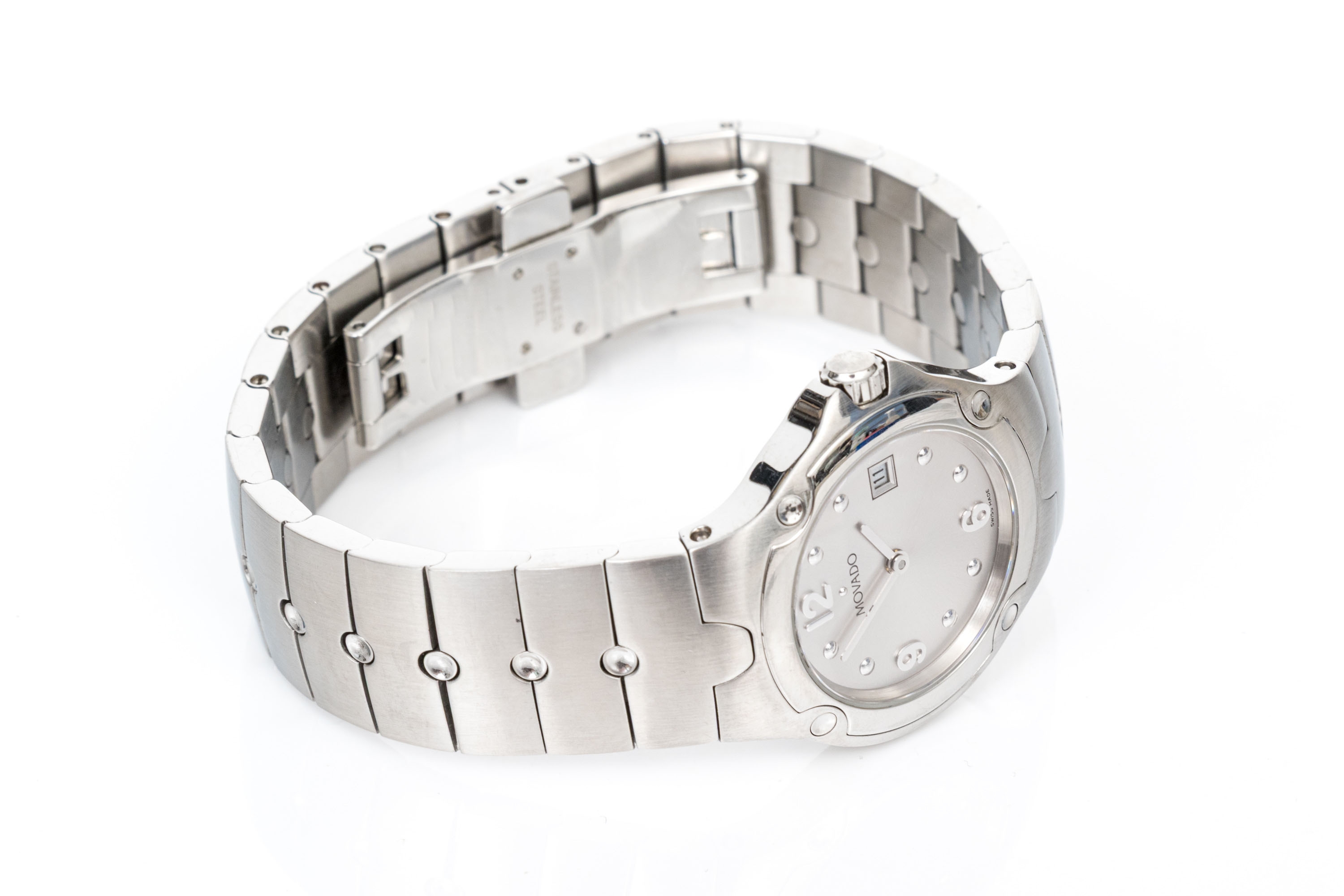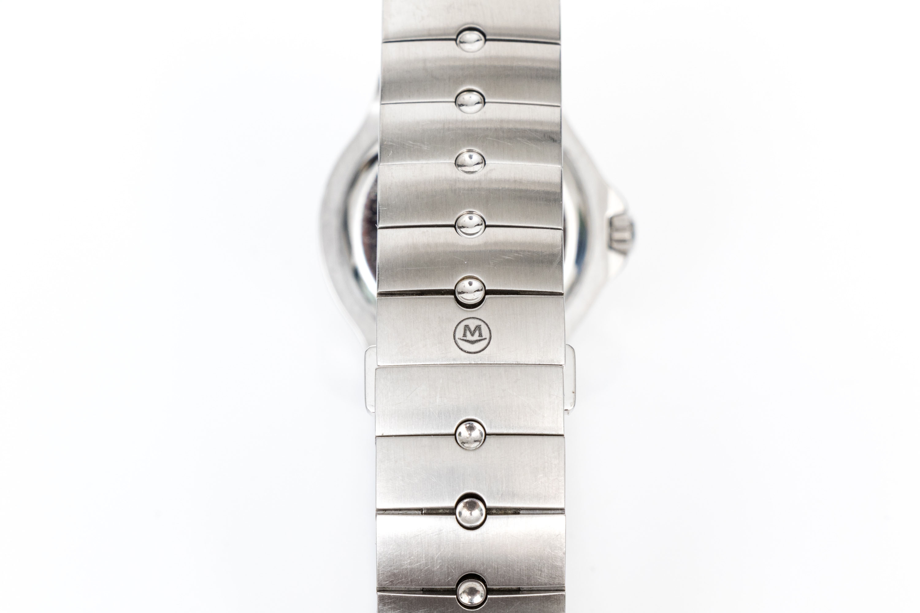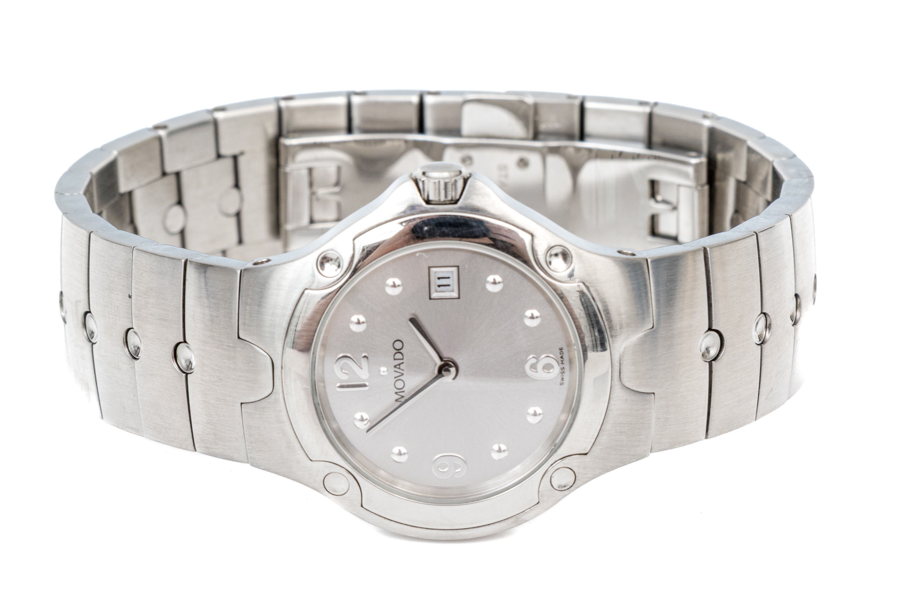 Movado stainless steel 27mm Sport Edition quartz bracelet watch, silver dial