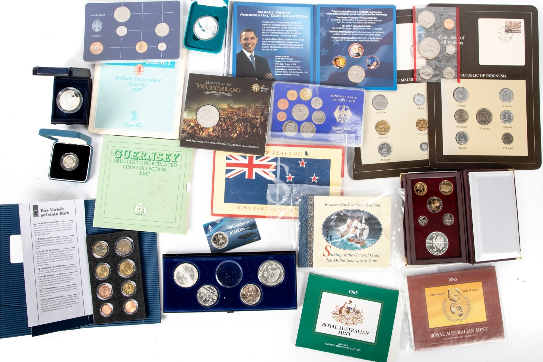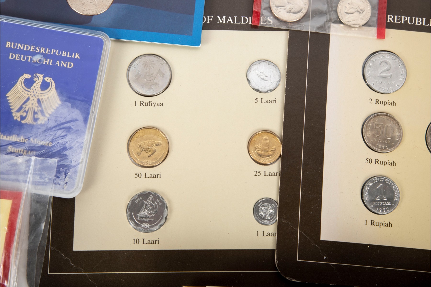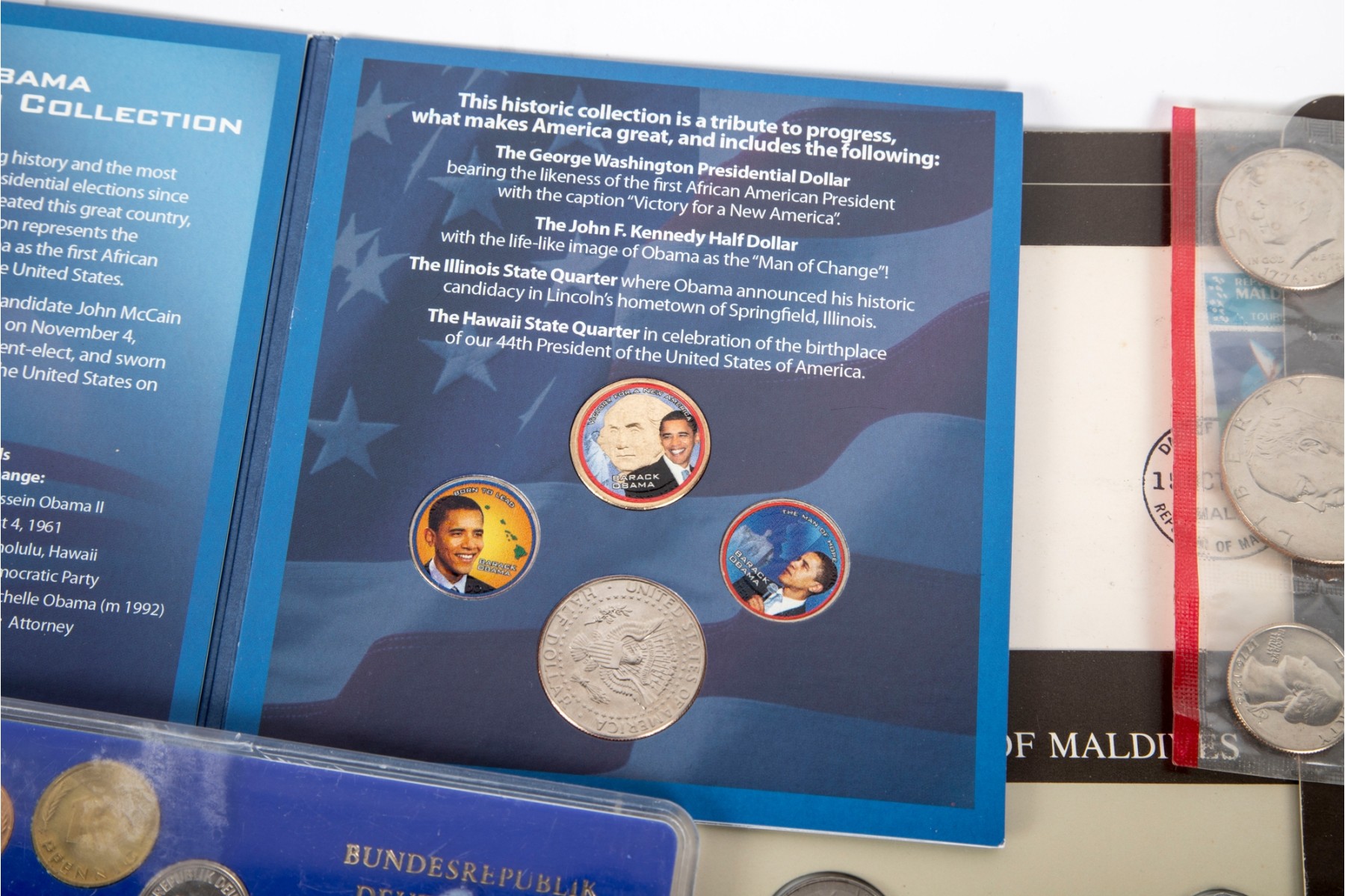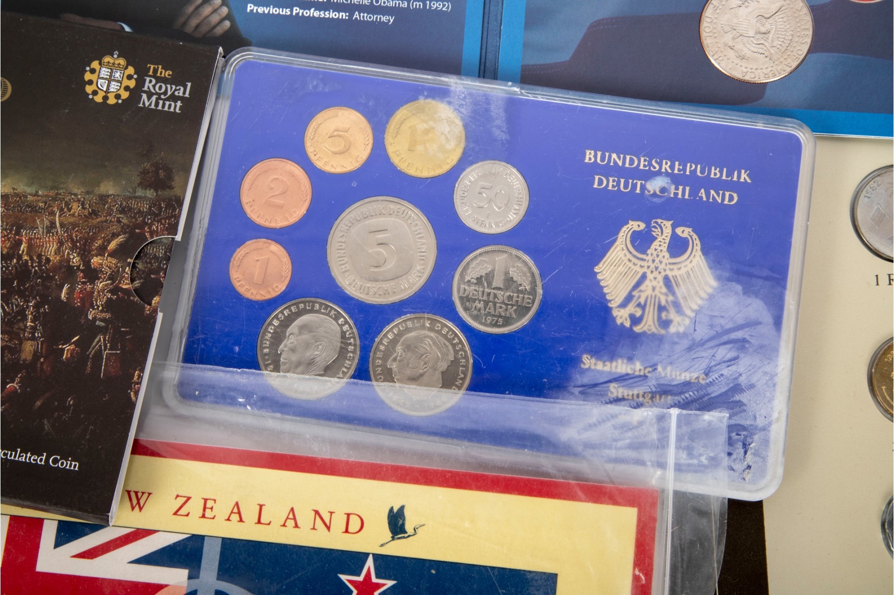 A large collection of U.S. & foreign mint sets/coins. Varied denominations -- refer to photos for details.