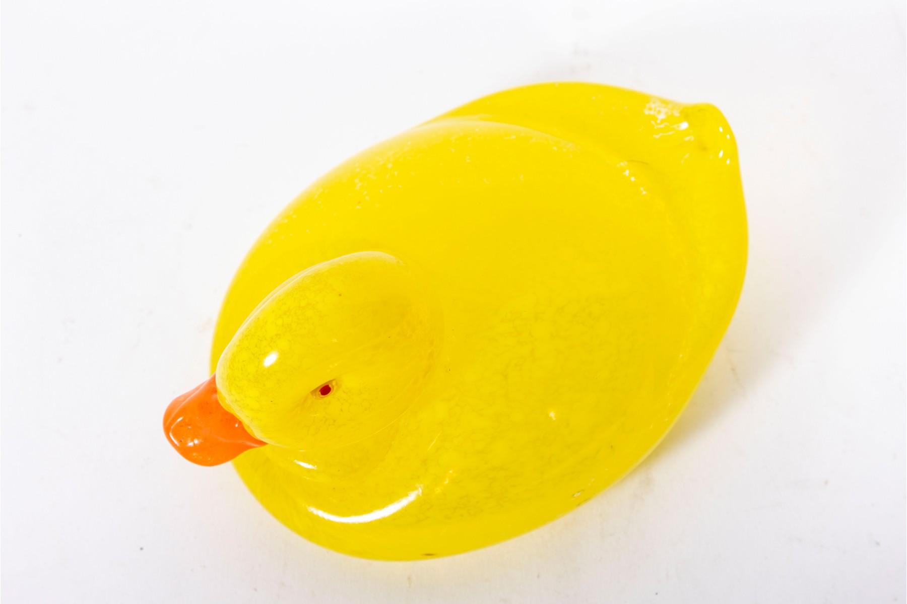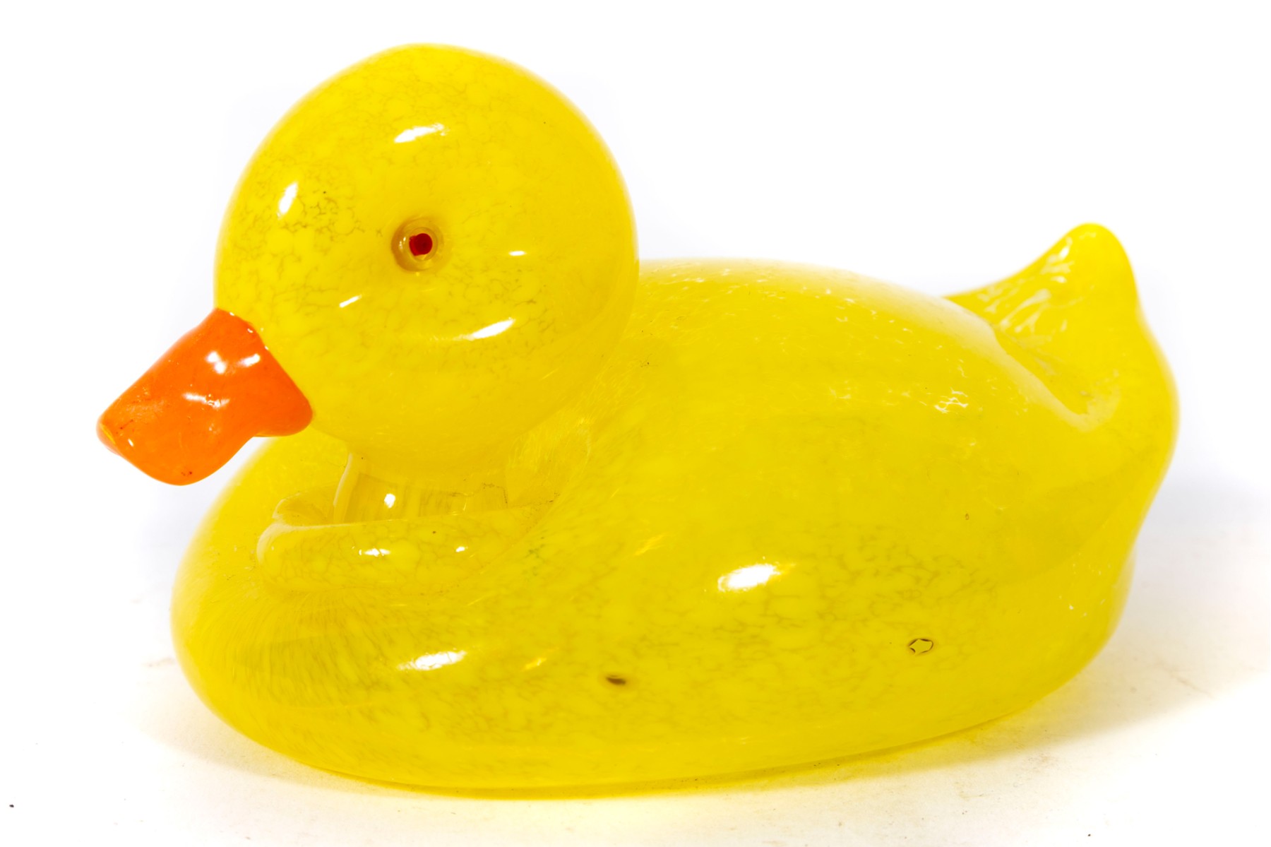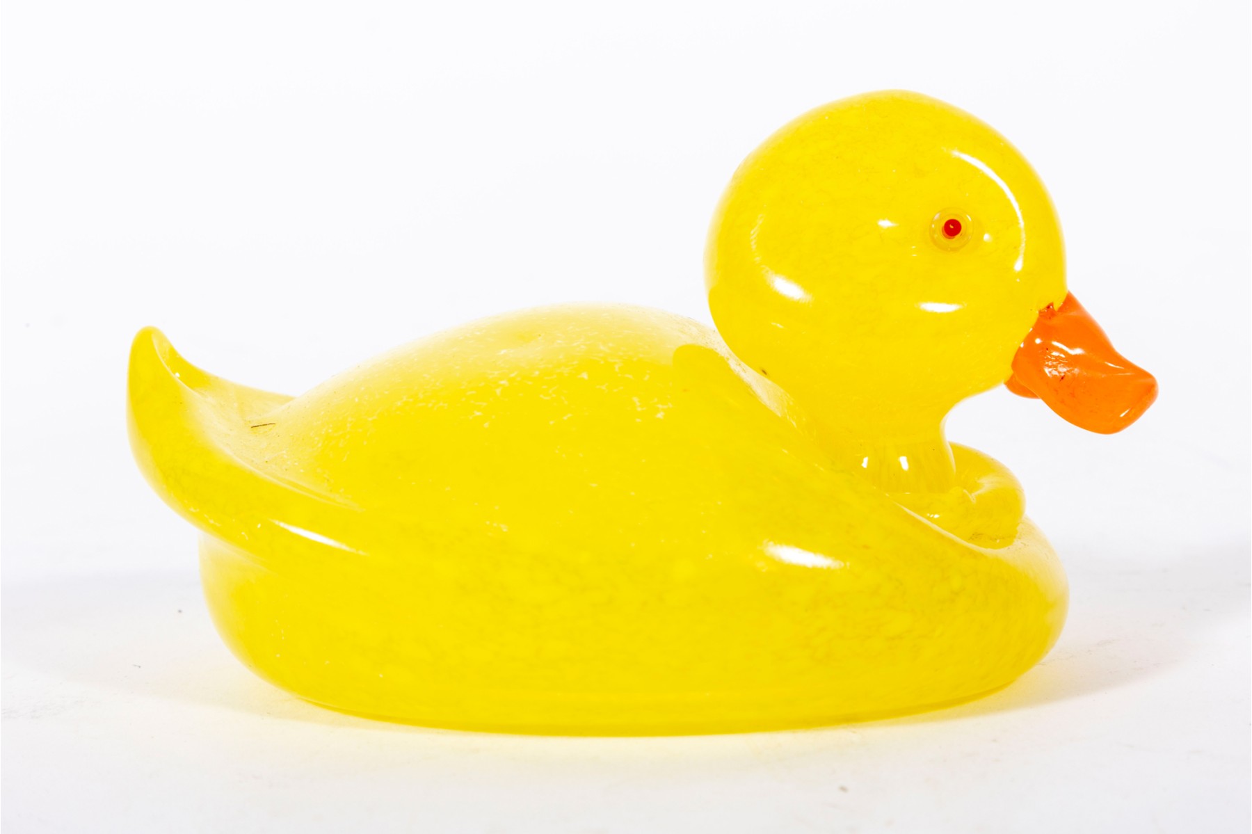 An unsigned murano style glass duckling complete with detailed eyes and bill. See photos for details.