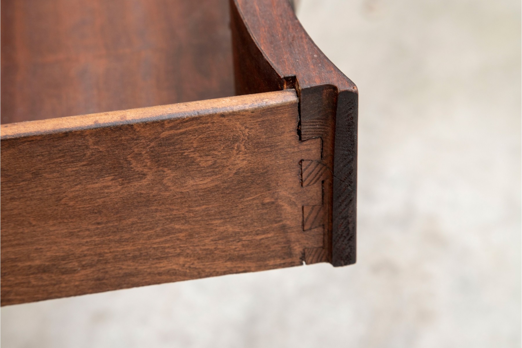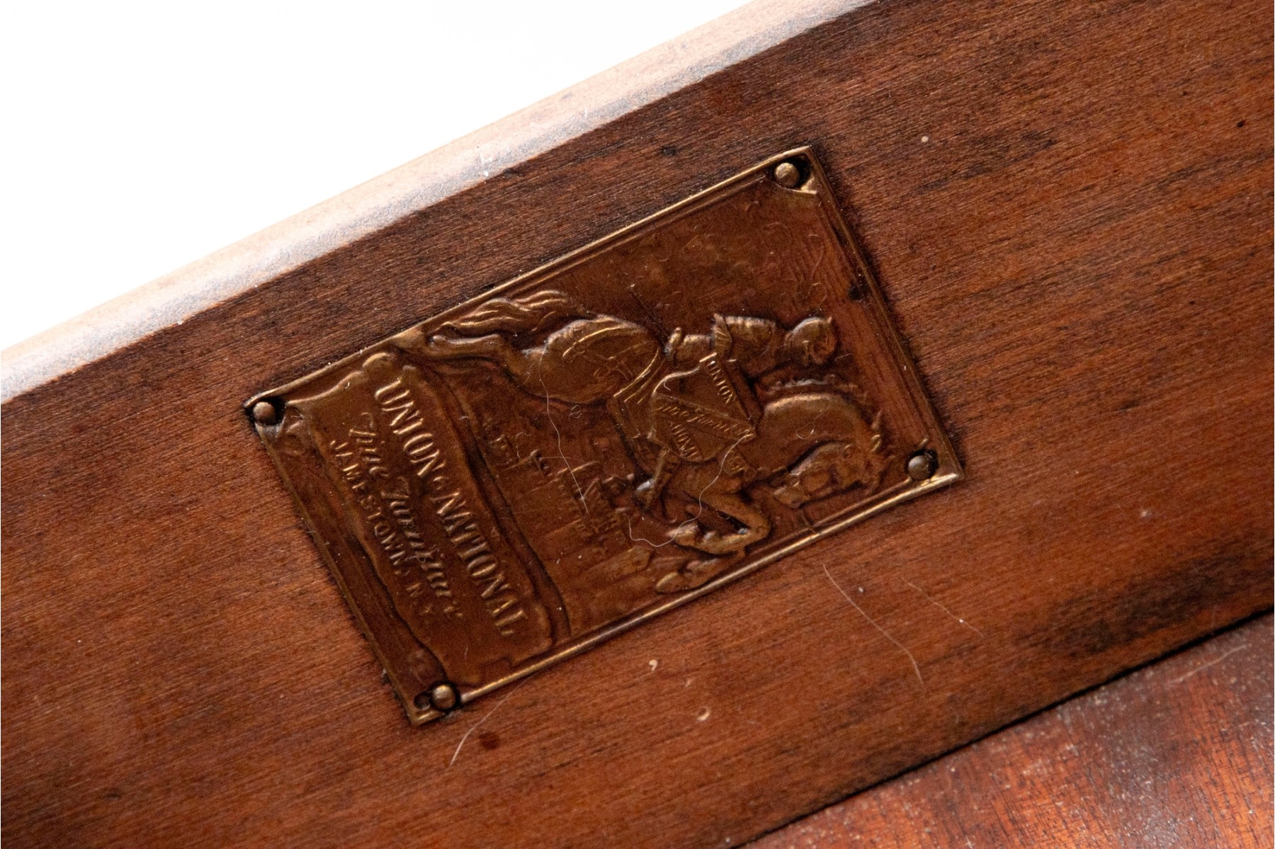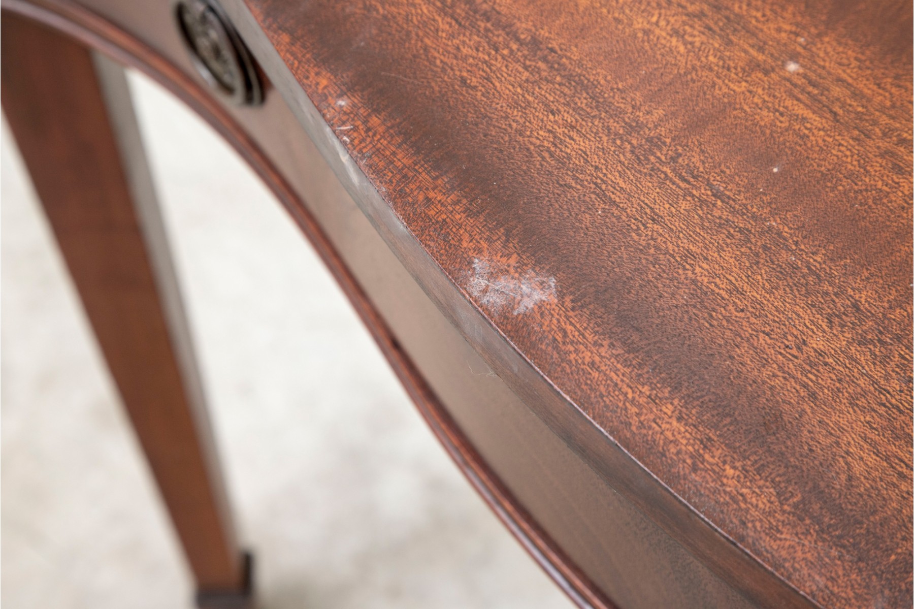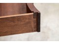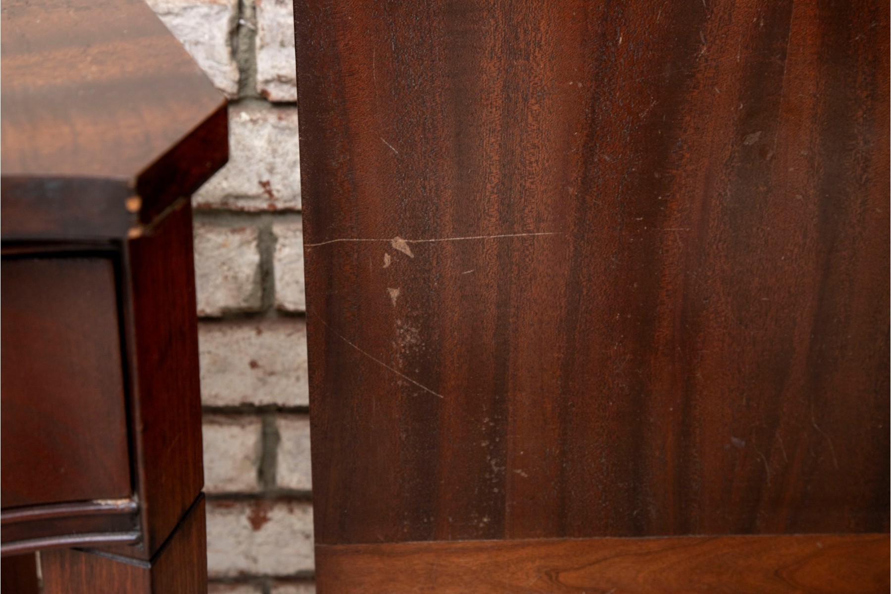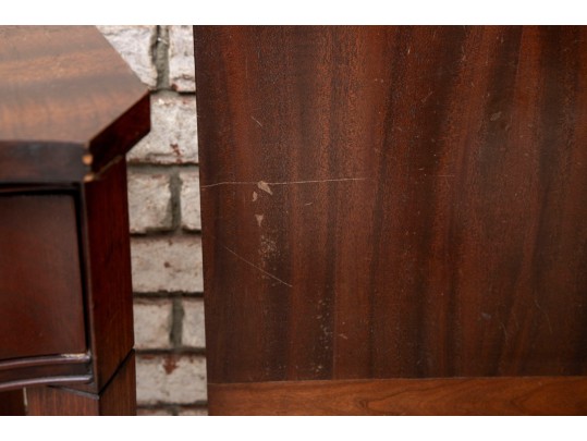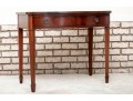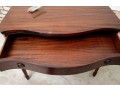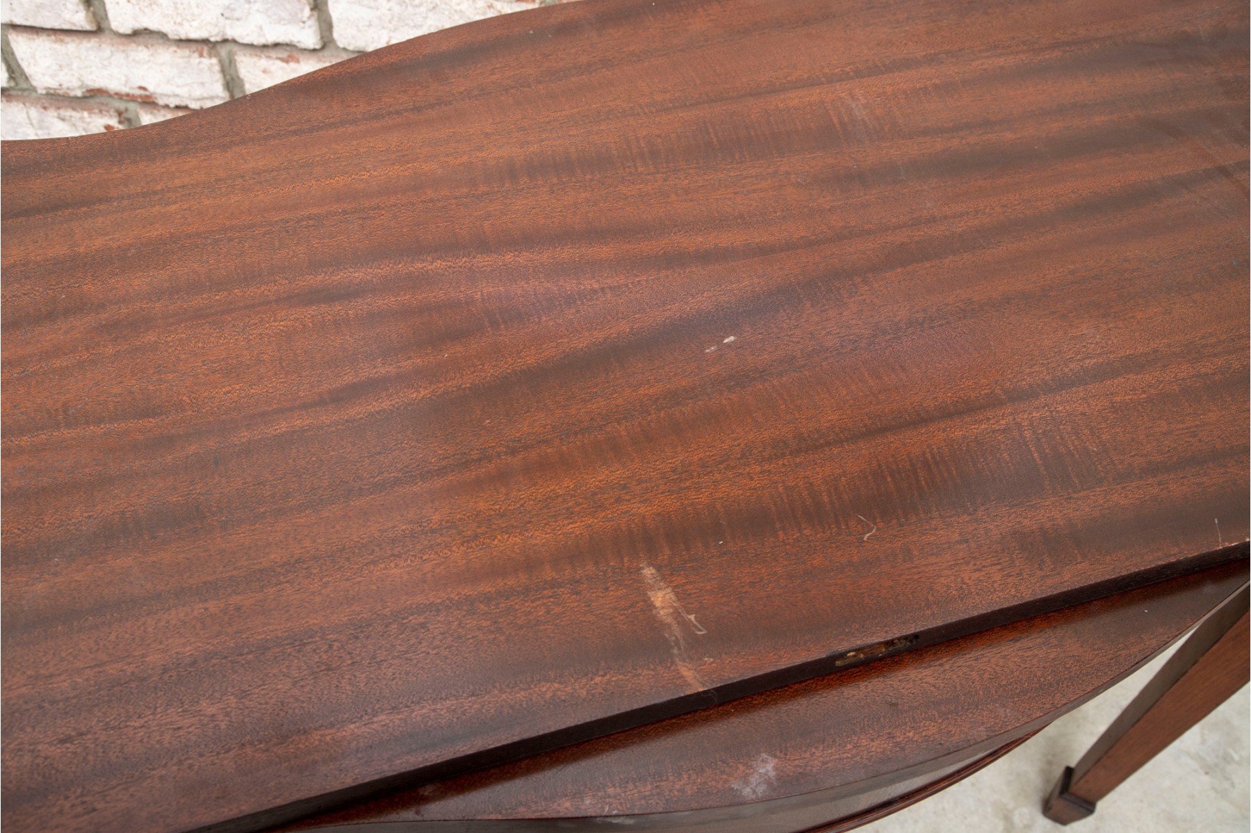 An antique Sheraton inspired flip-top mahogany game table with single drawer and serpentine front, produced by Union Nation Fine Furniture.