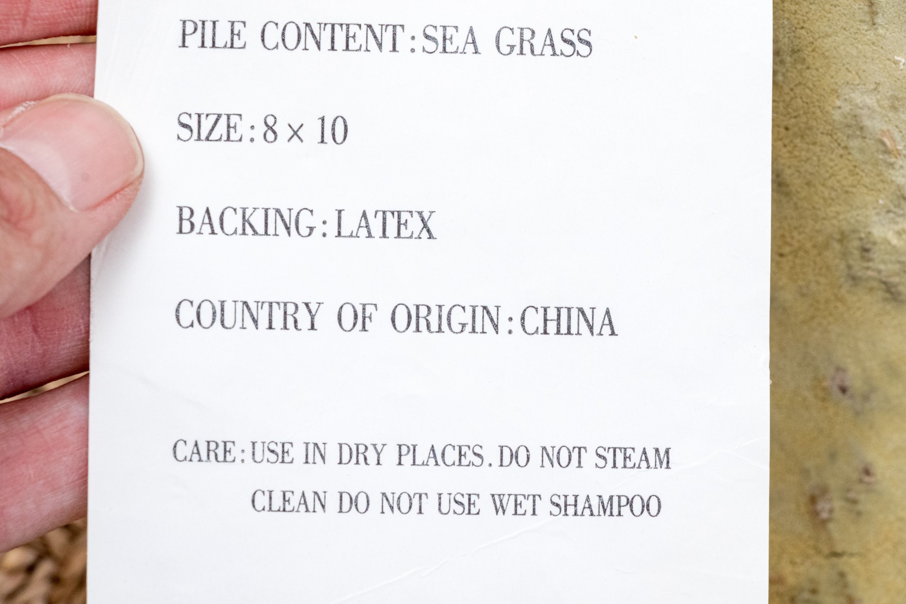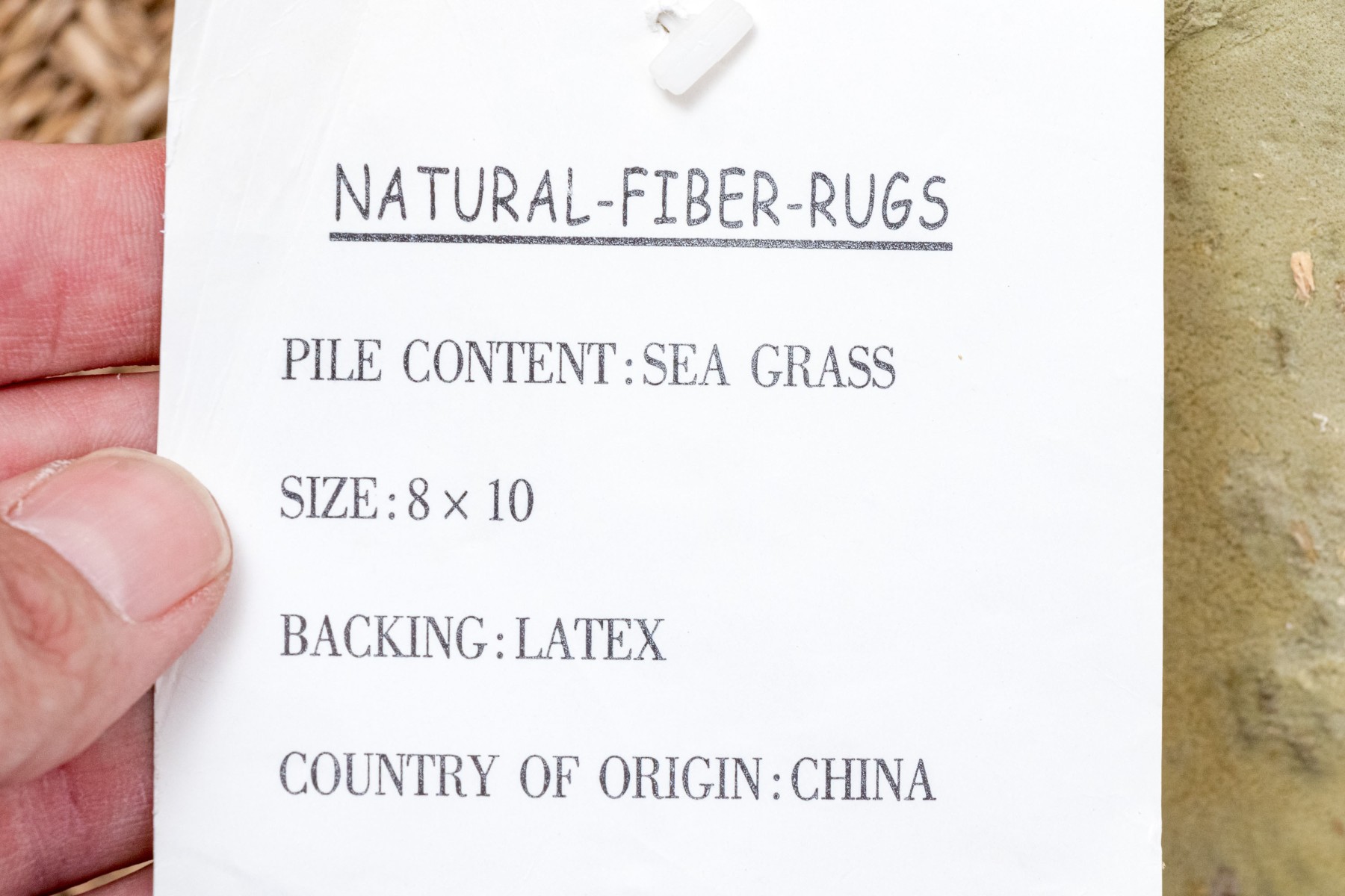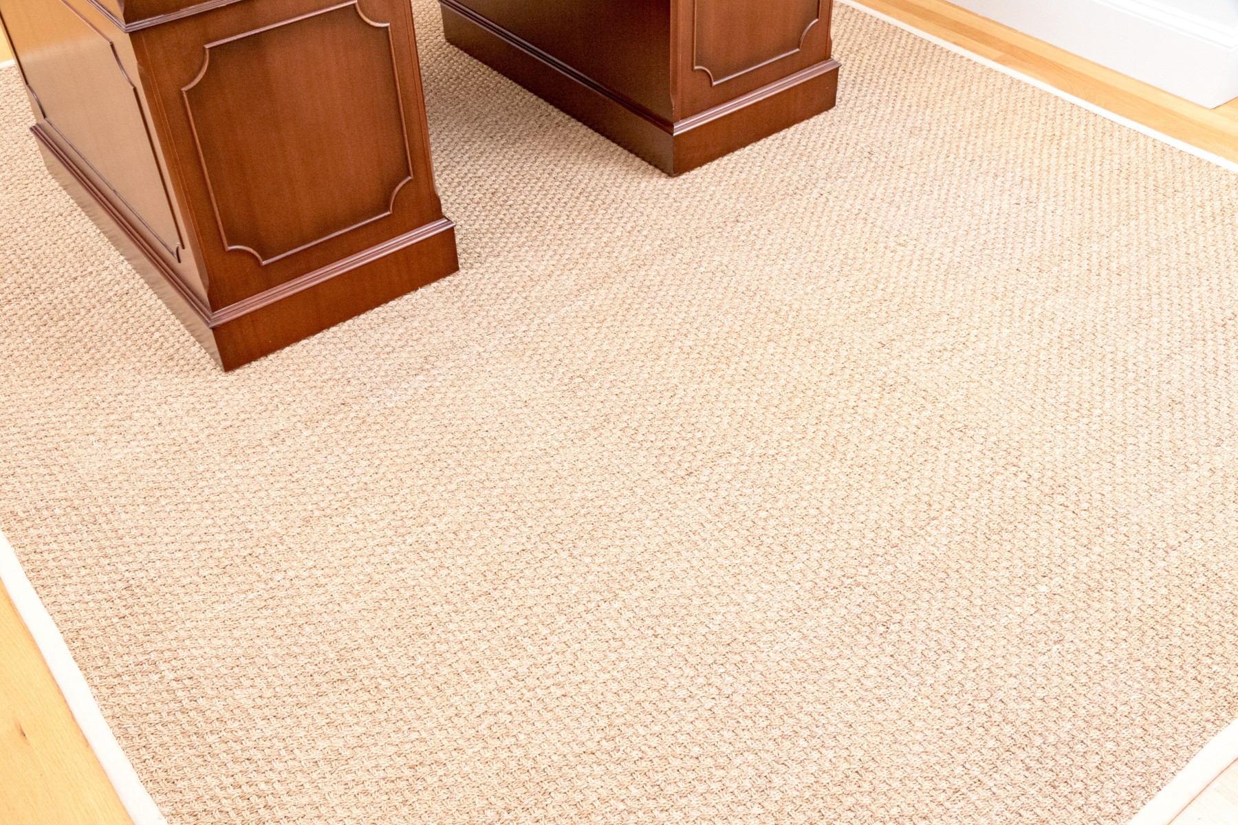Woven pattern, natural seagrass bound in cream twill border, with latex backing.