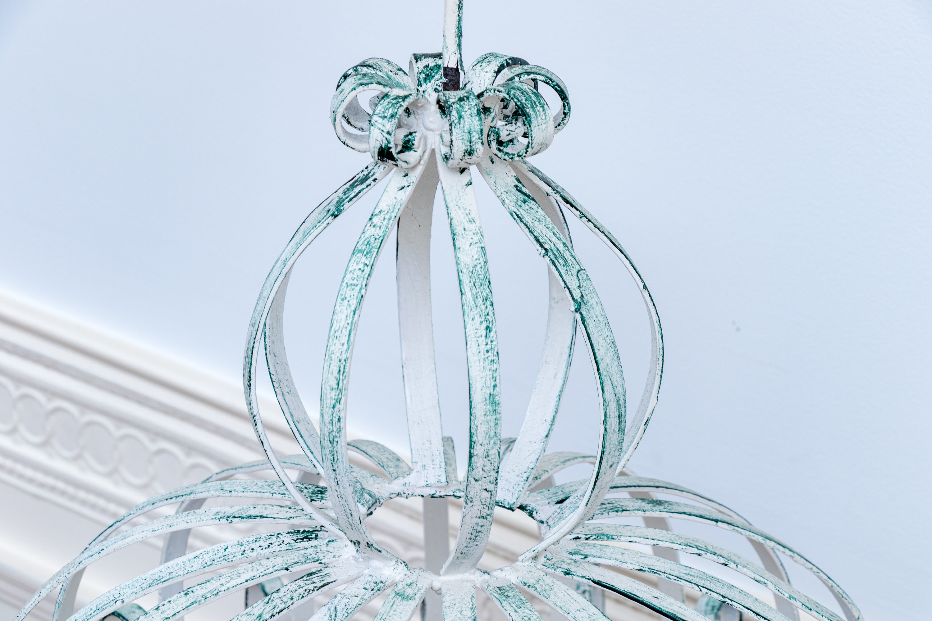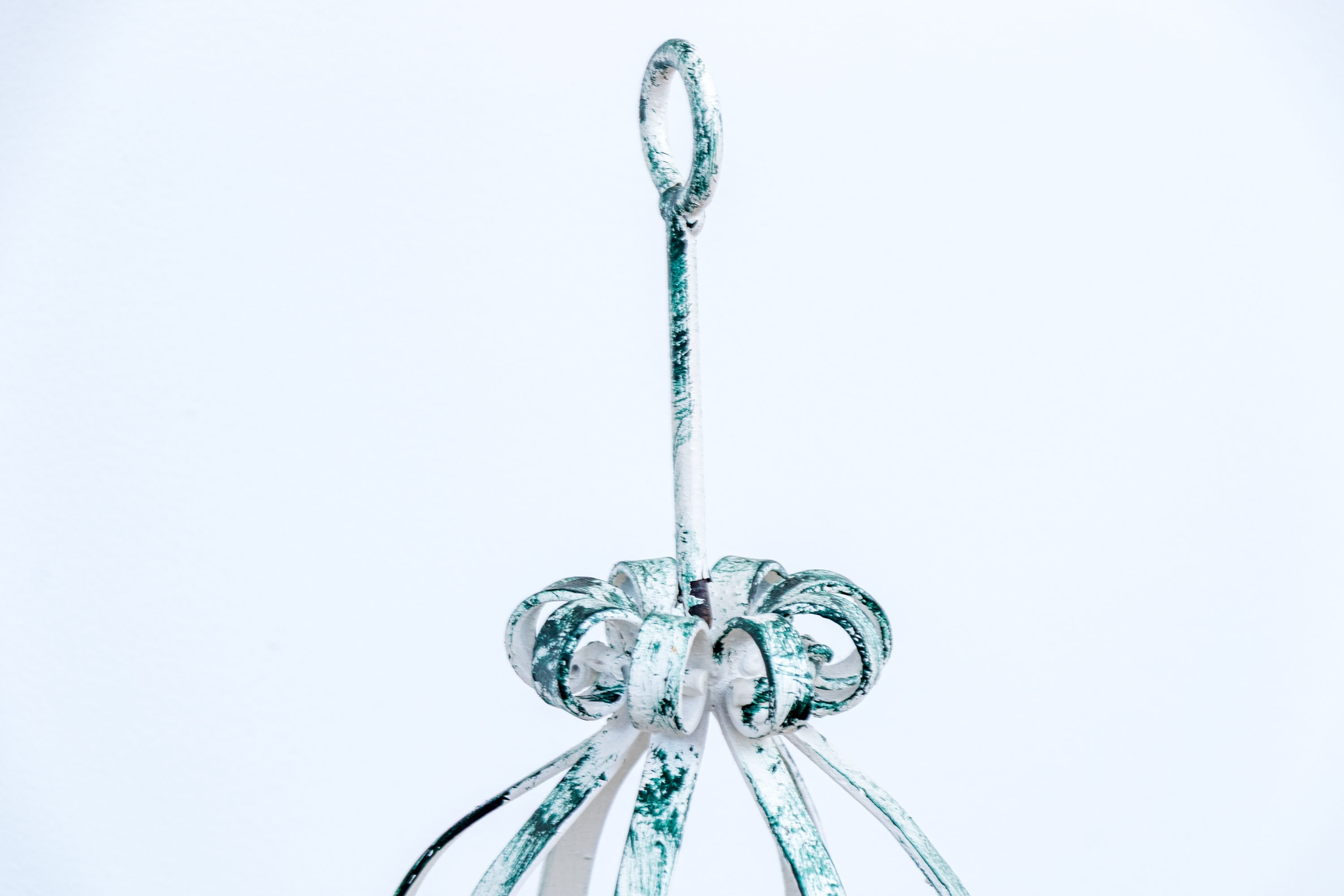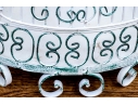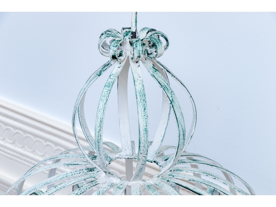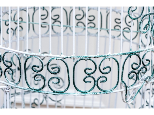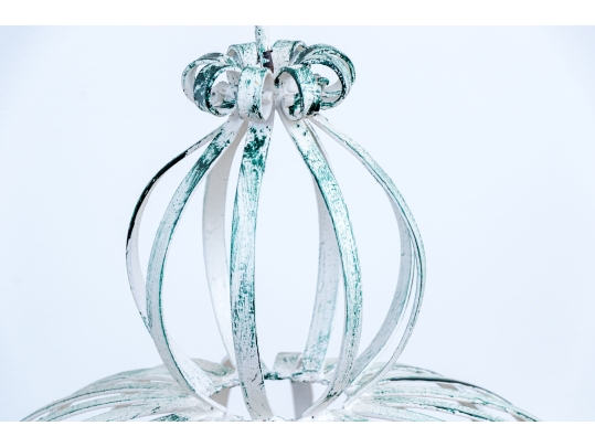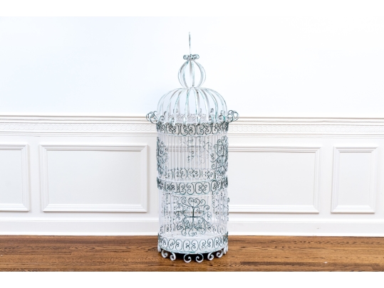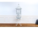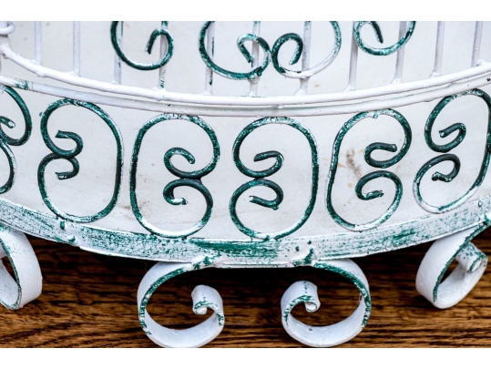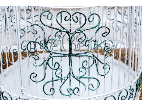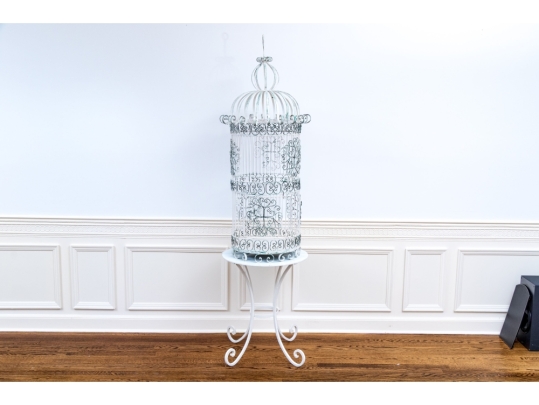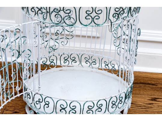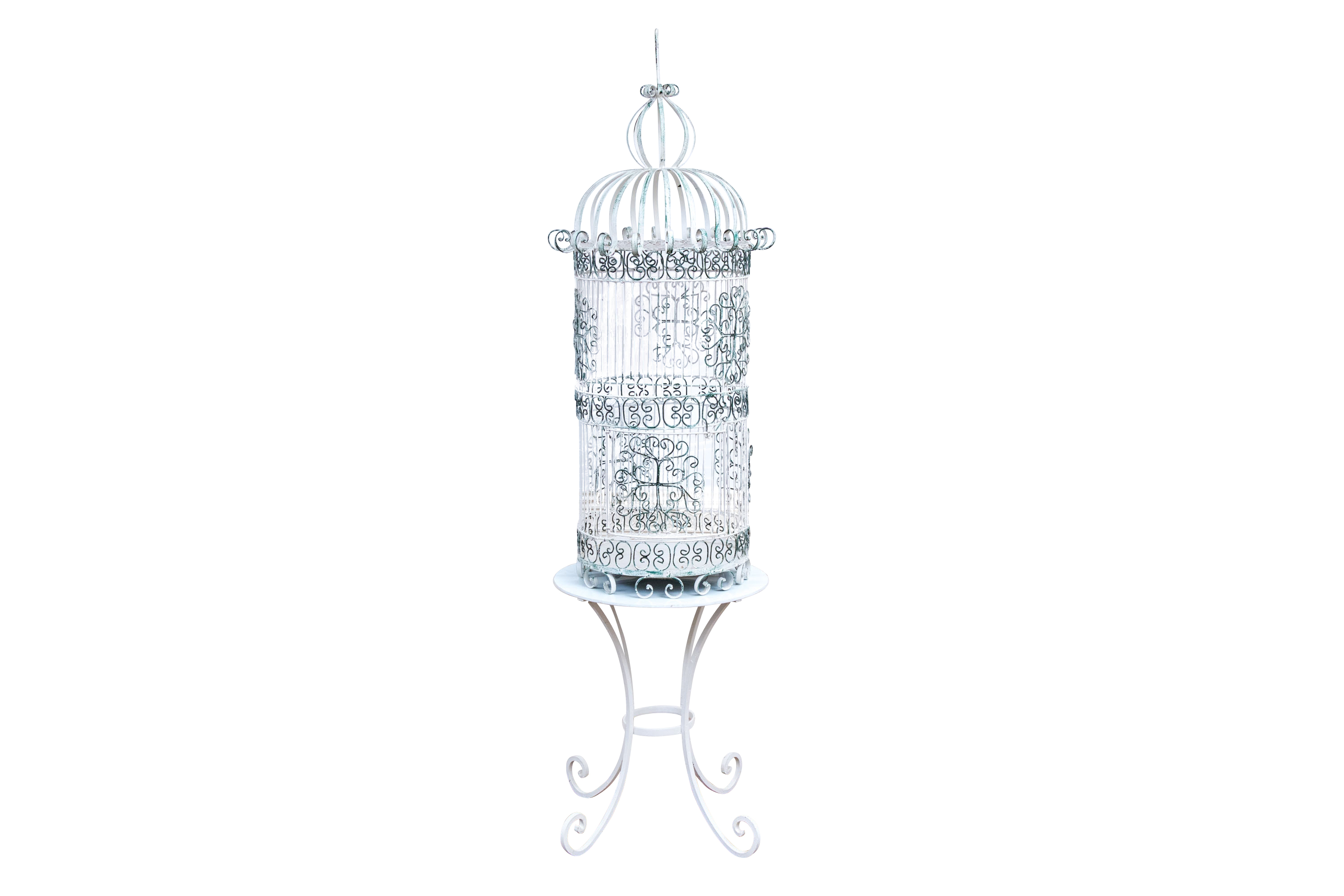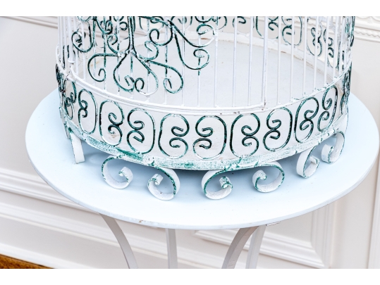 NEED GLASS TOP Vintage Paint Decorated Iron Birdcage On Stand