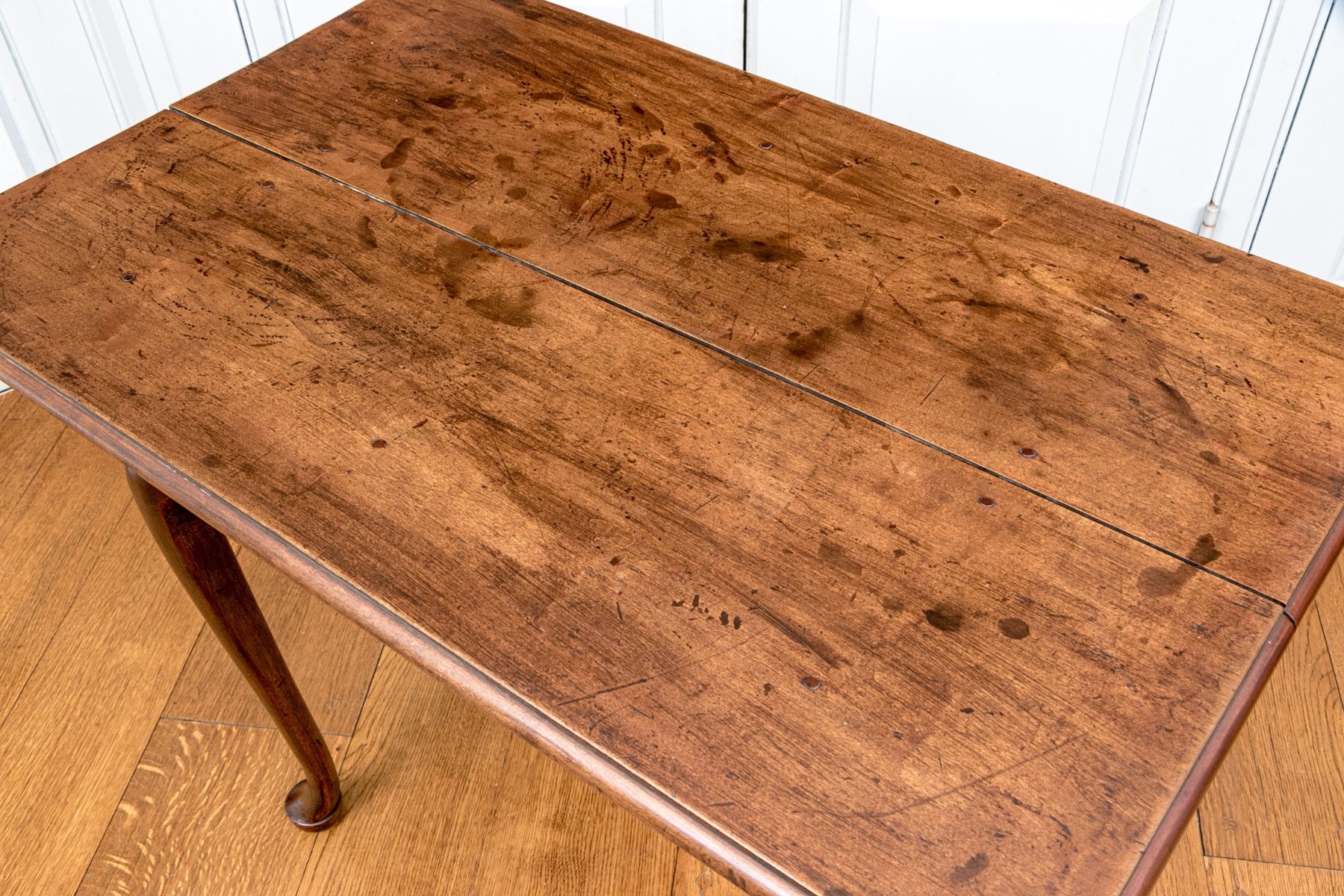 Some of the feet have been previously repaired and added onto. Additionally there is wear to the finish with scuffs and scratches but overall presents well.