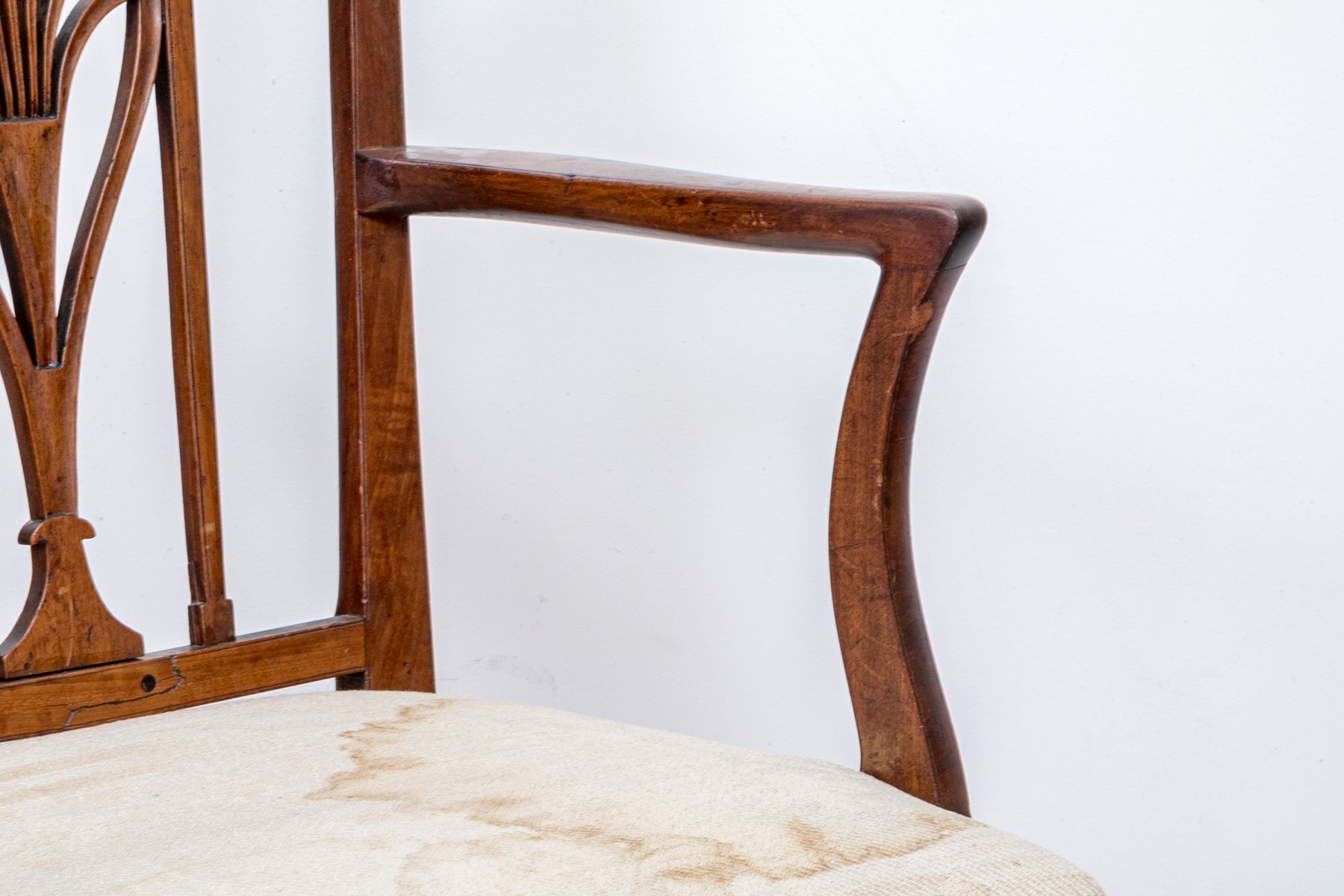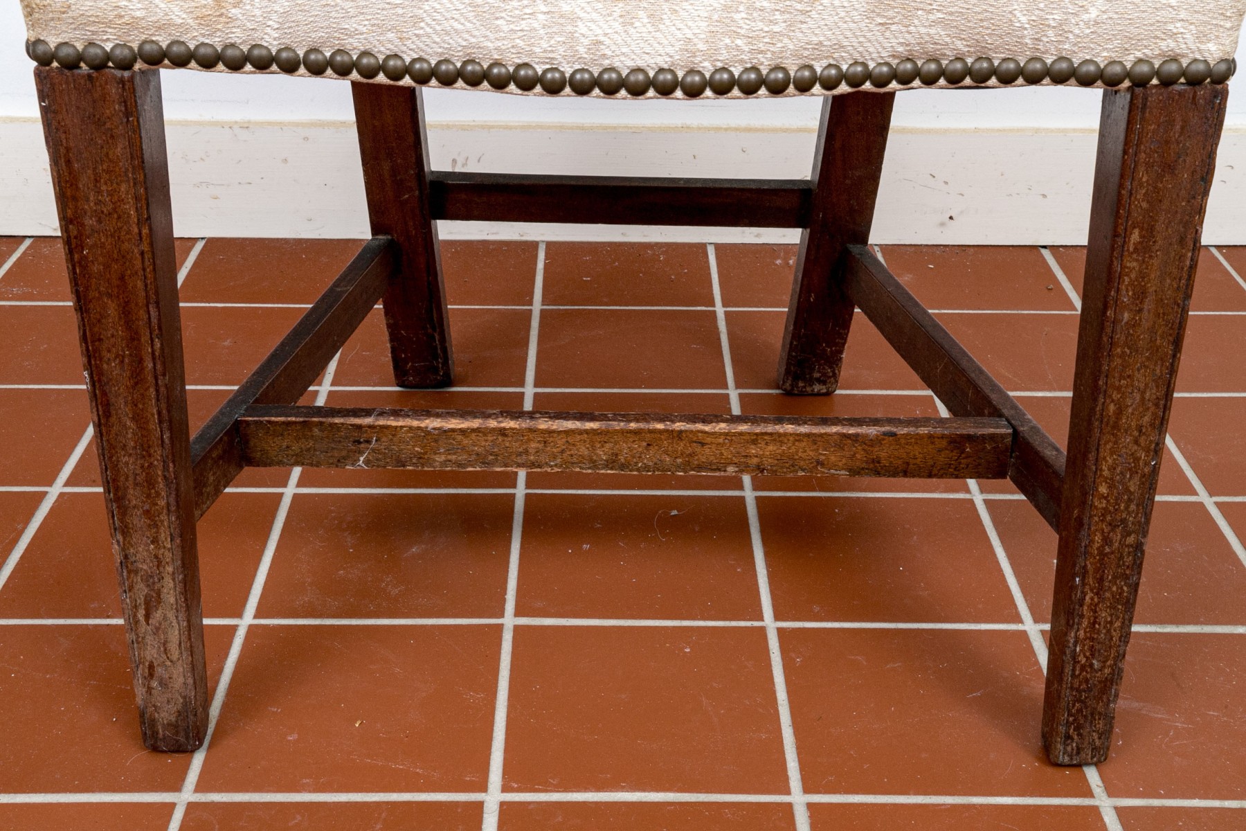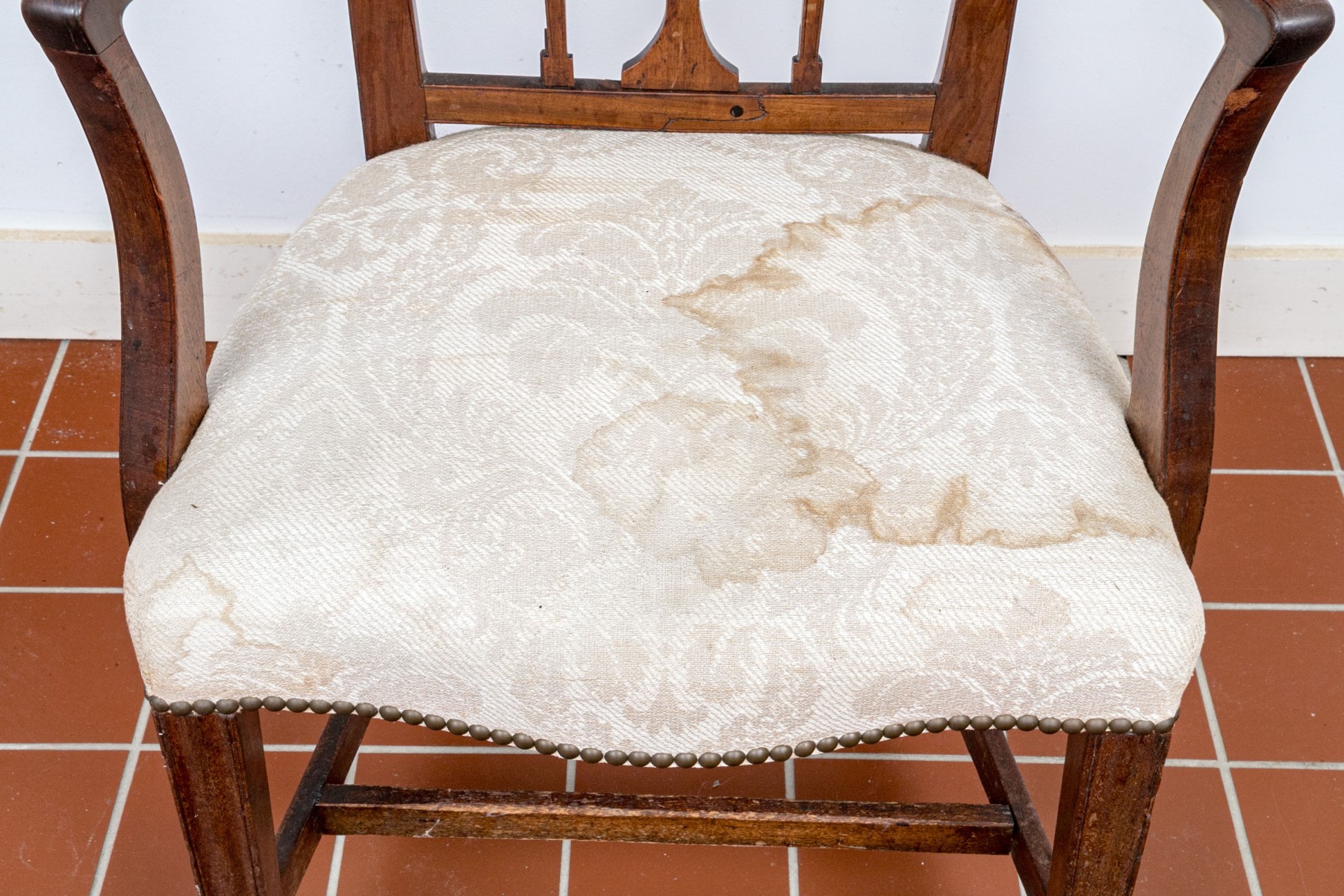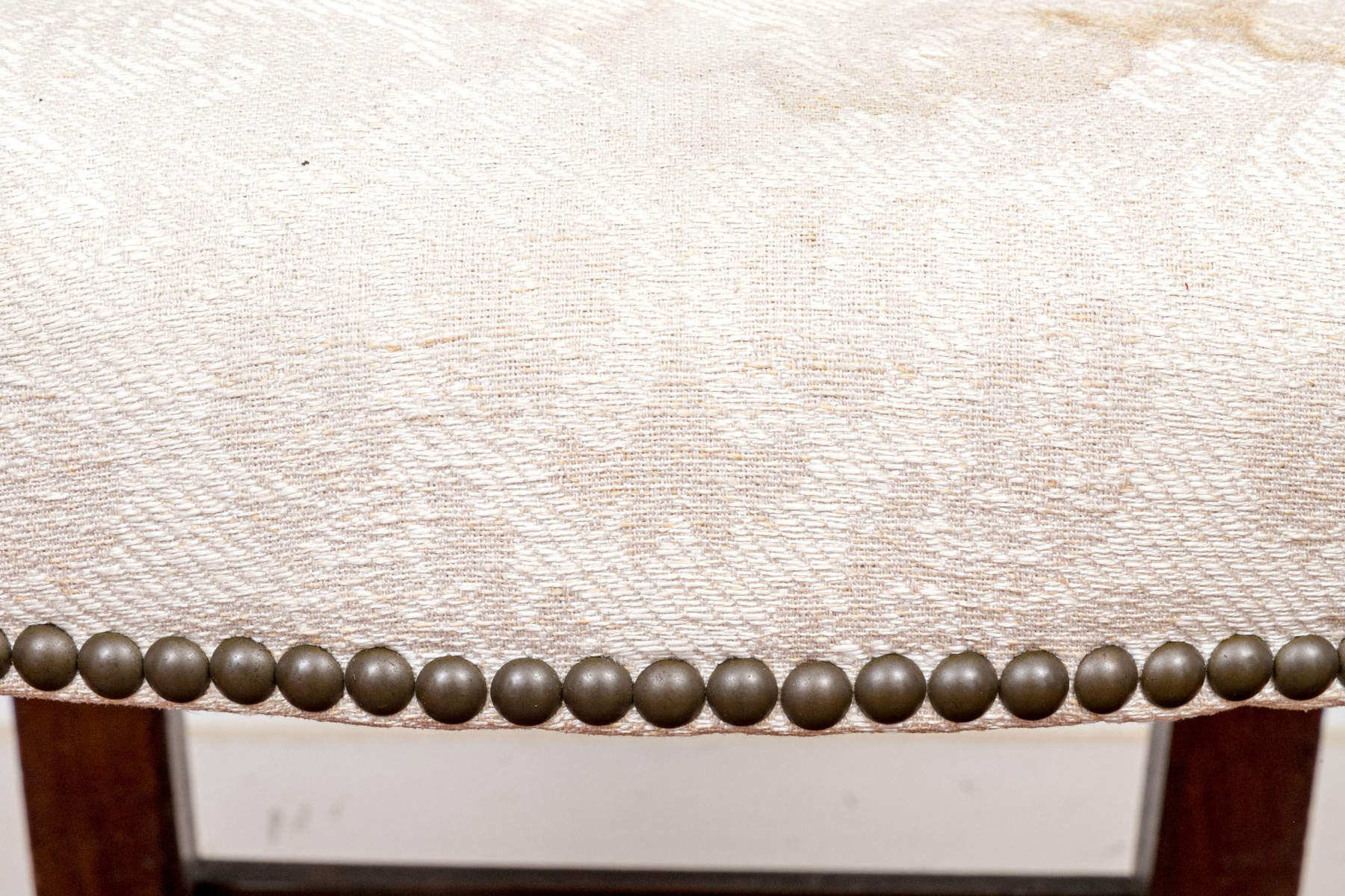 Condition: Heavily stained upholstered seat, needs to be reupholstered, old repairs to the seat with cracks to the joinery. See lot images for further visual inspection as they are considered part of the lot condition report.