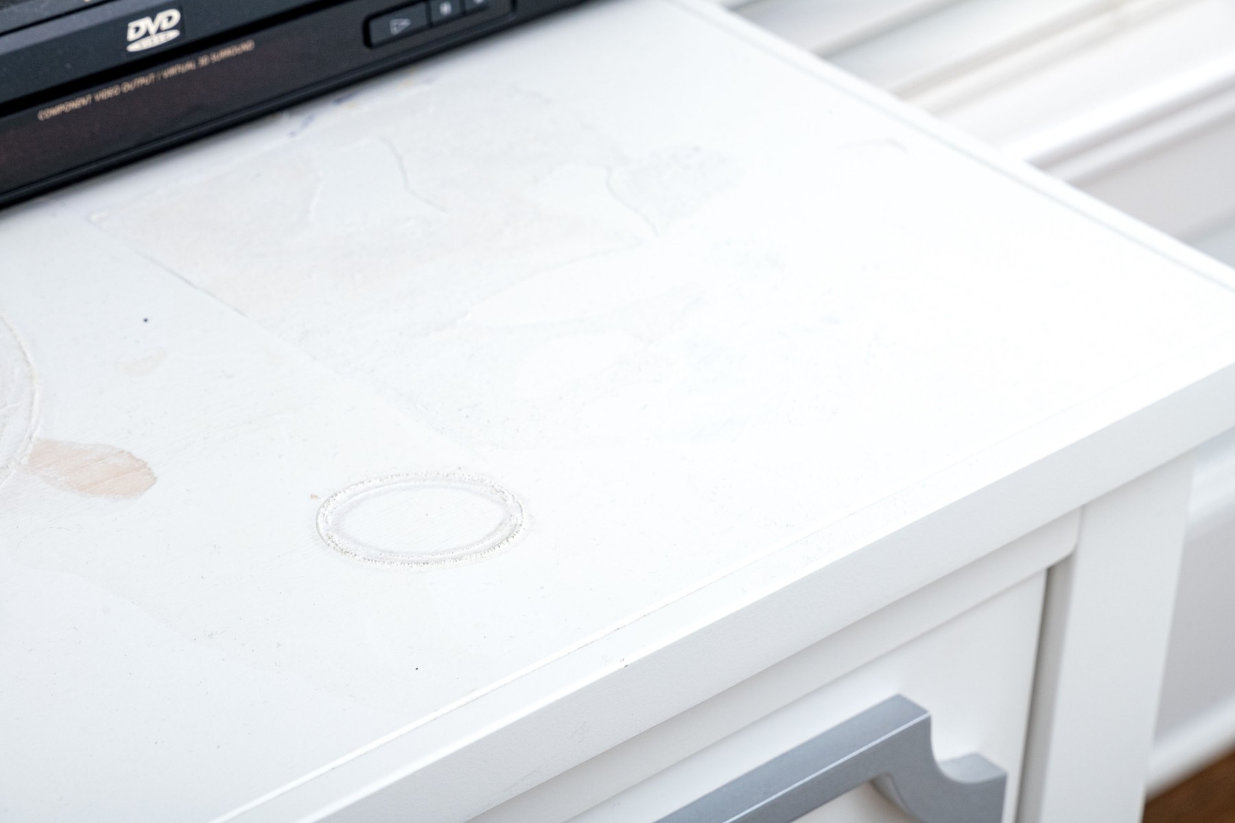 As is with heavy staining and finish wear to the top, but a great piece overall.