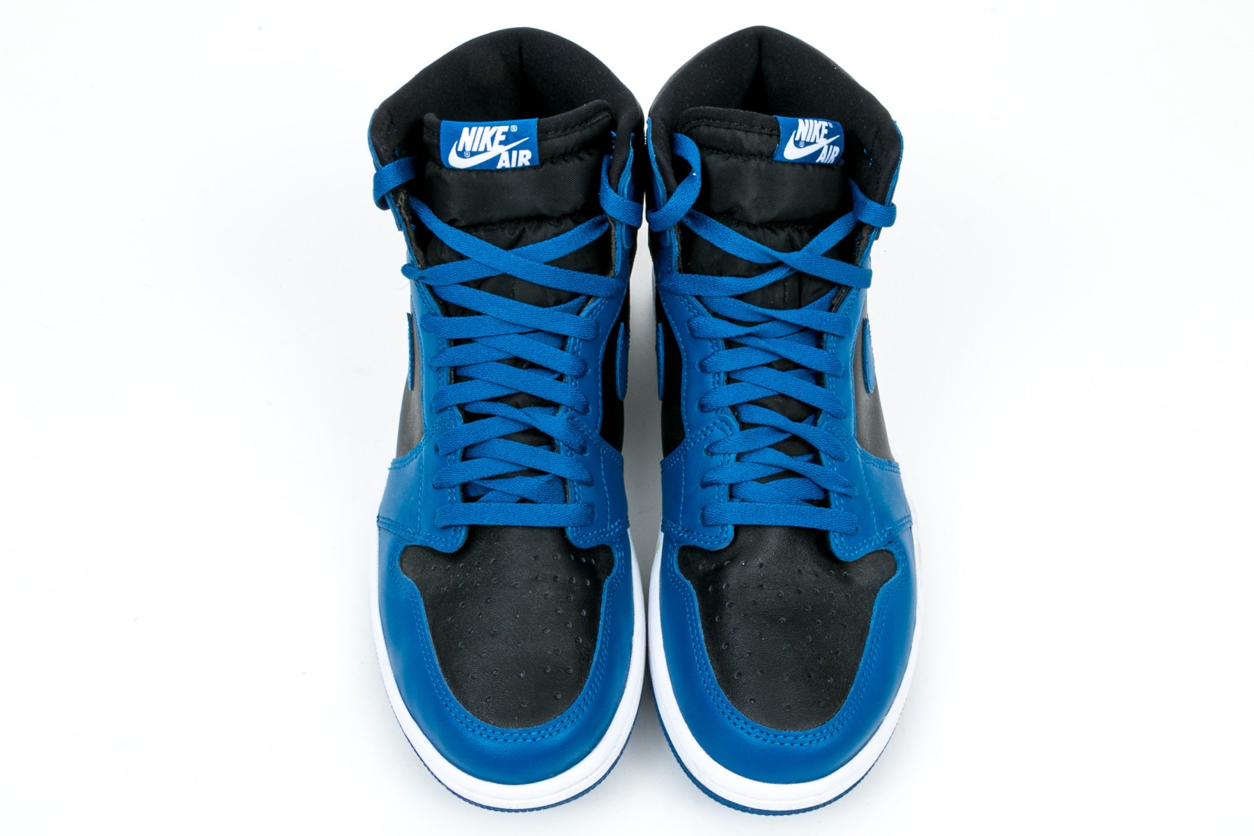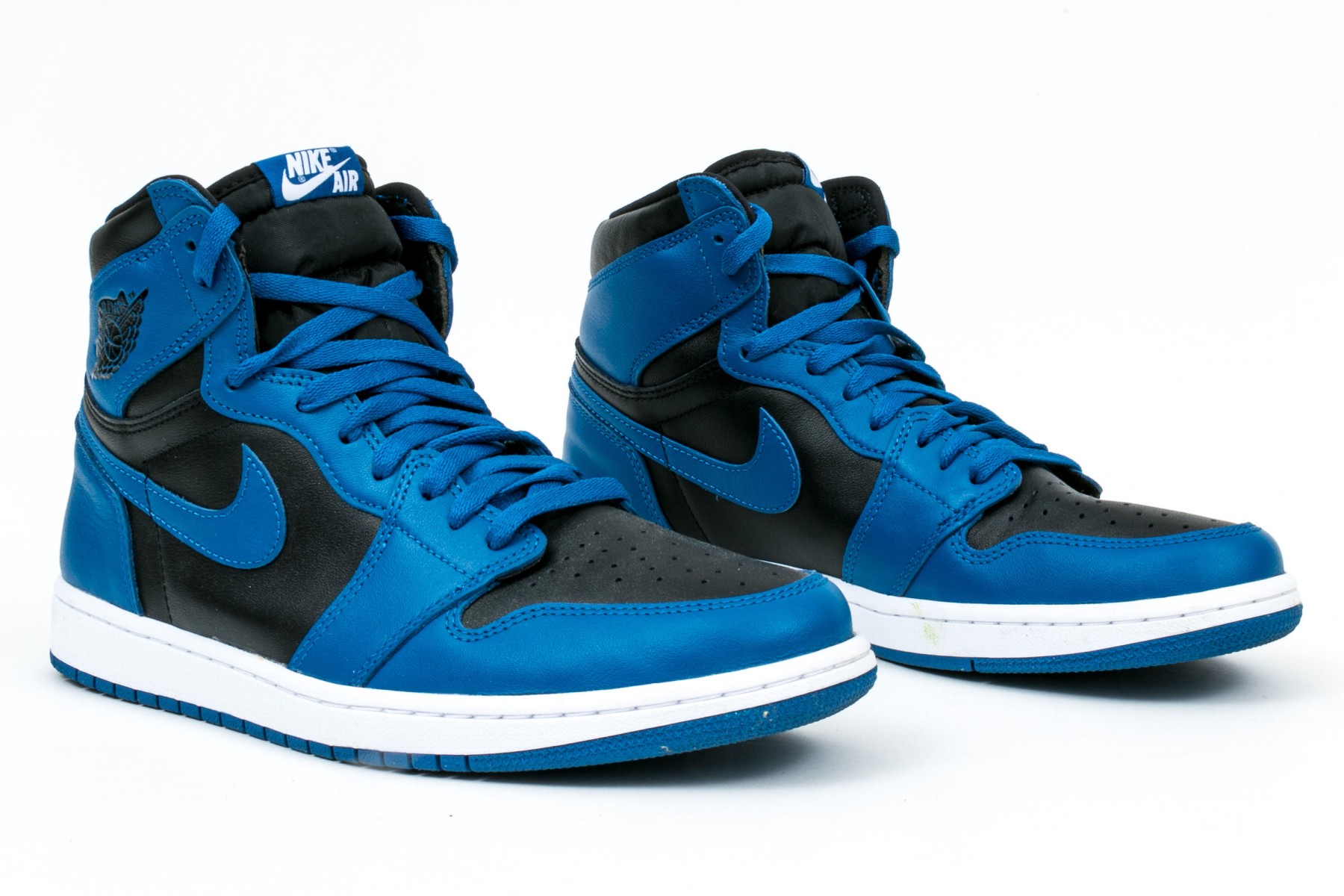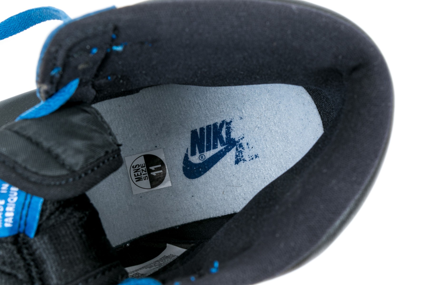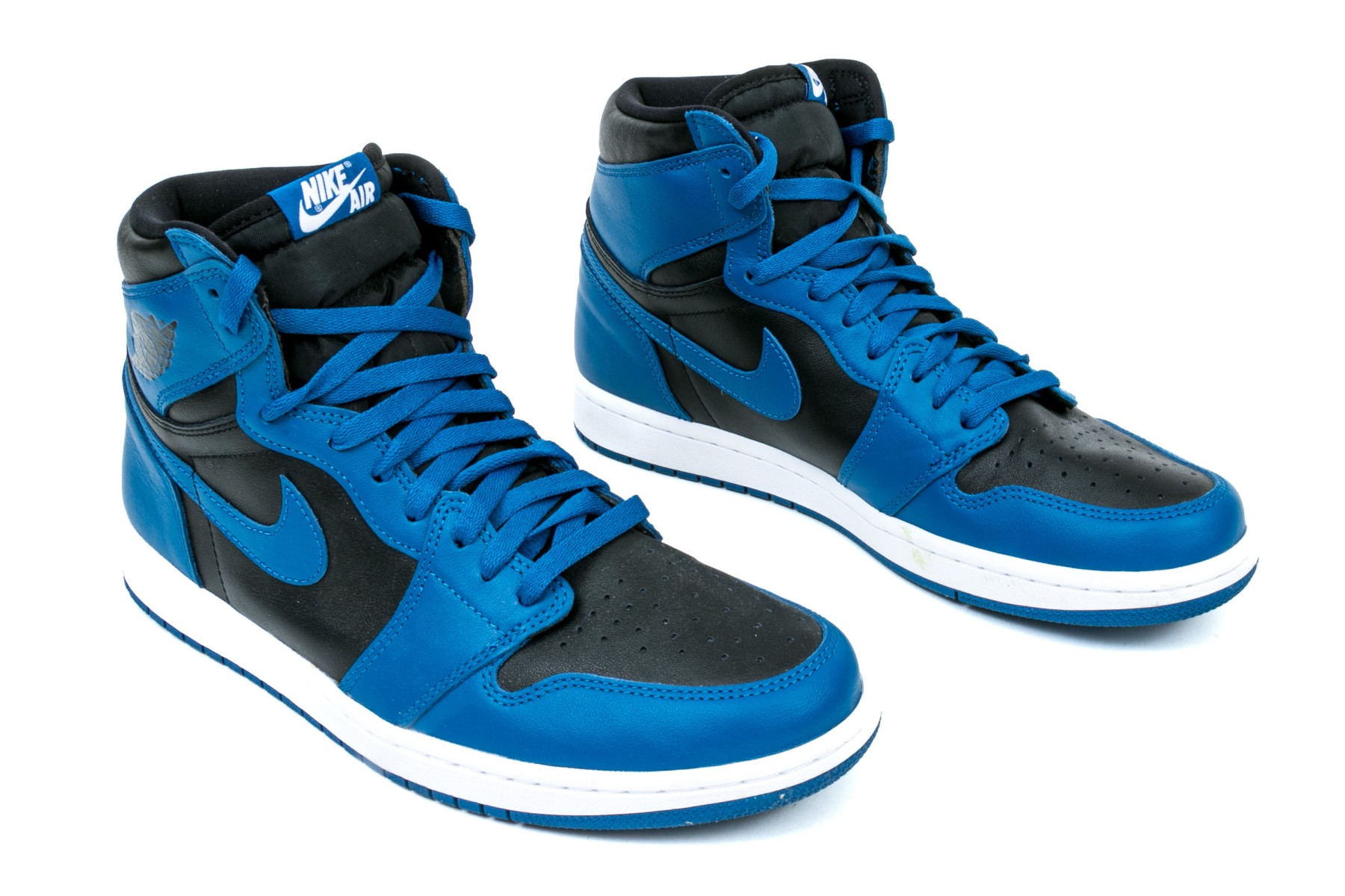 Nike chic leather high top Air Jordans, black, blue, white, size 11