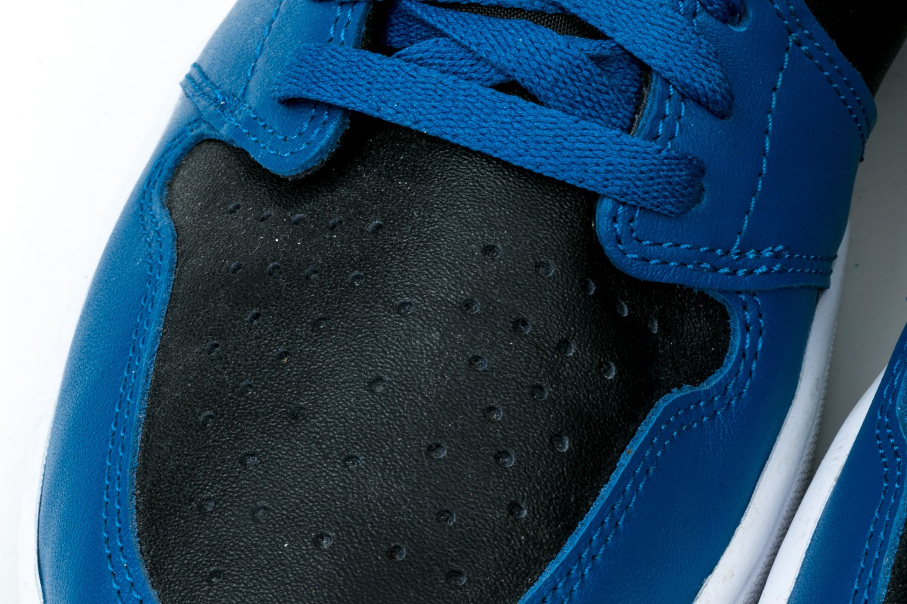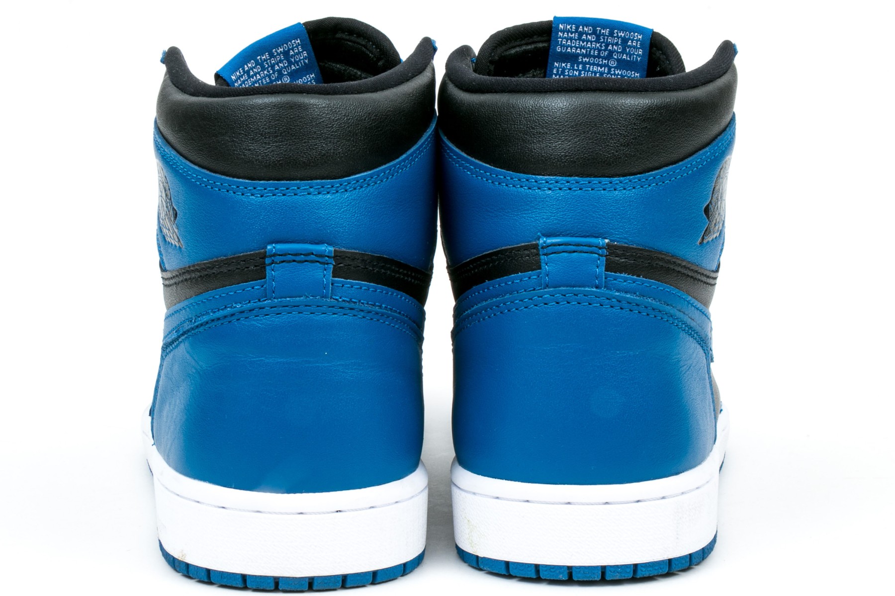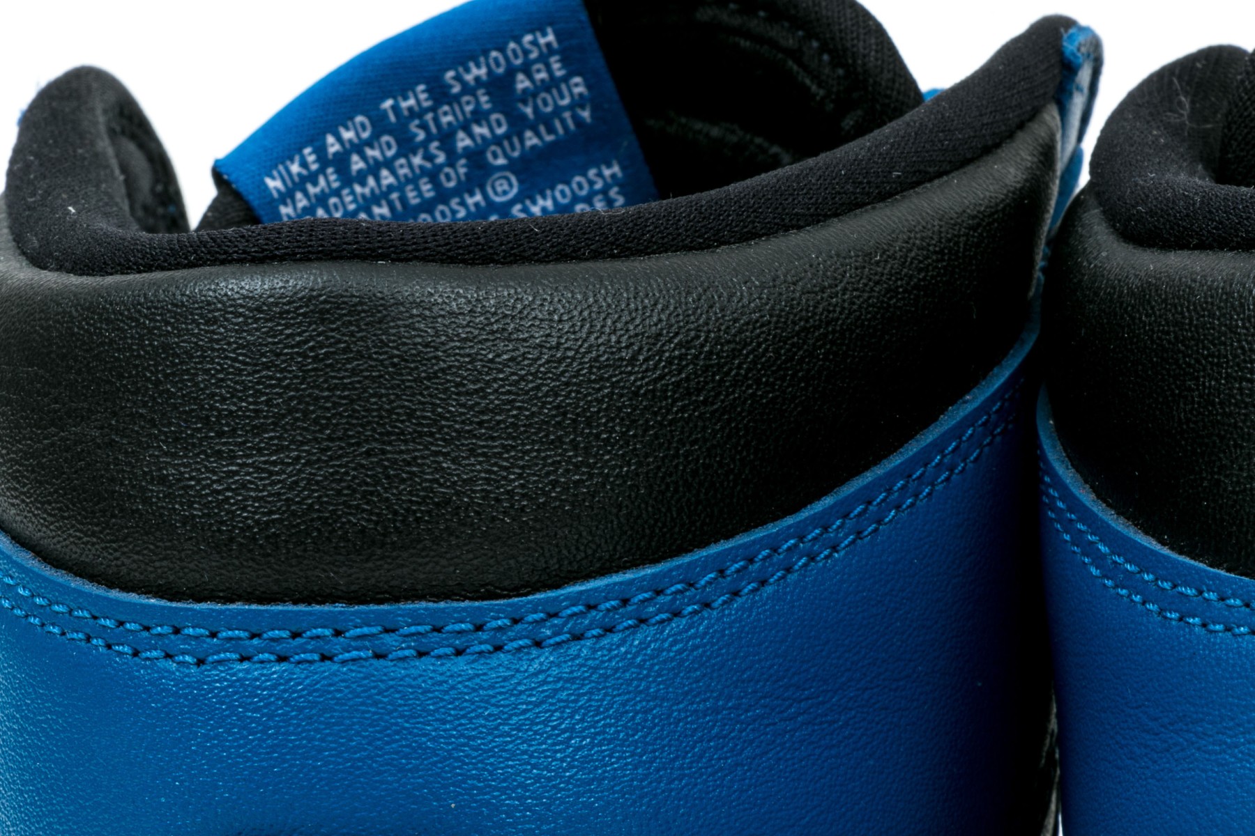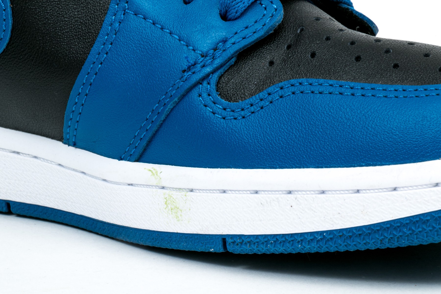 Nike chic leather high top Air Jordans, black, blue, white, size 11