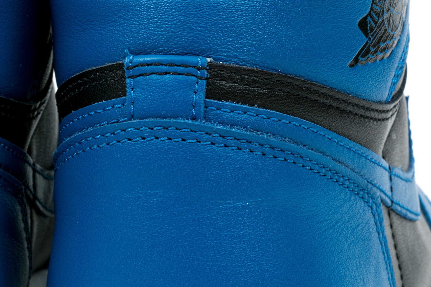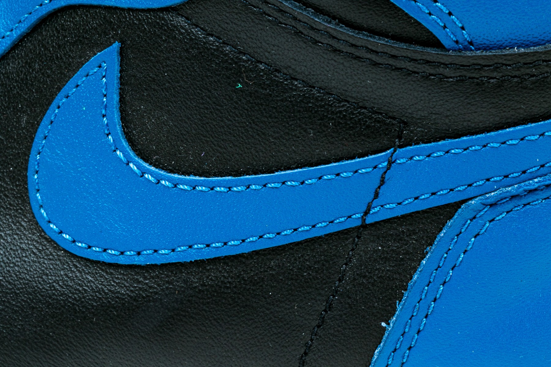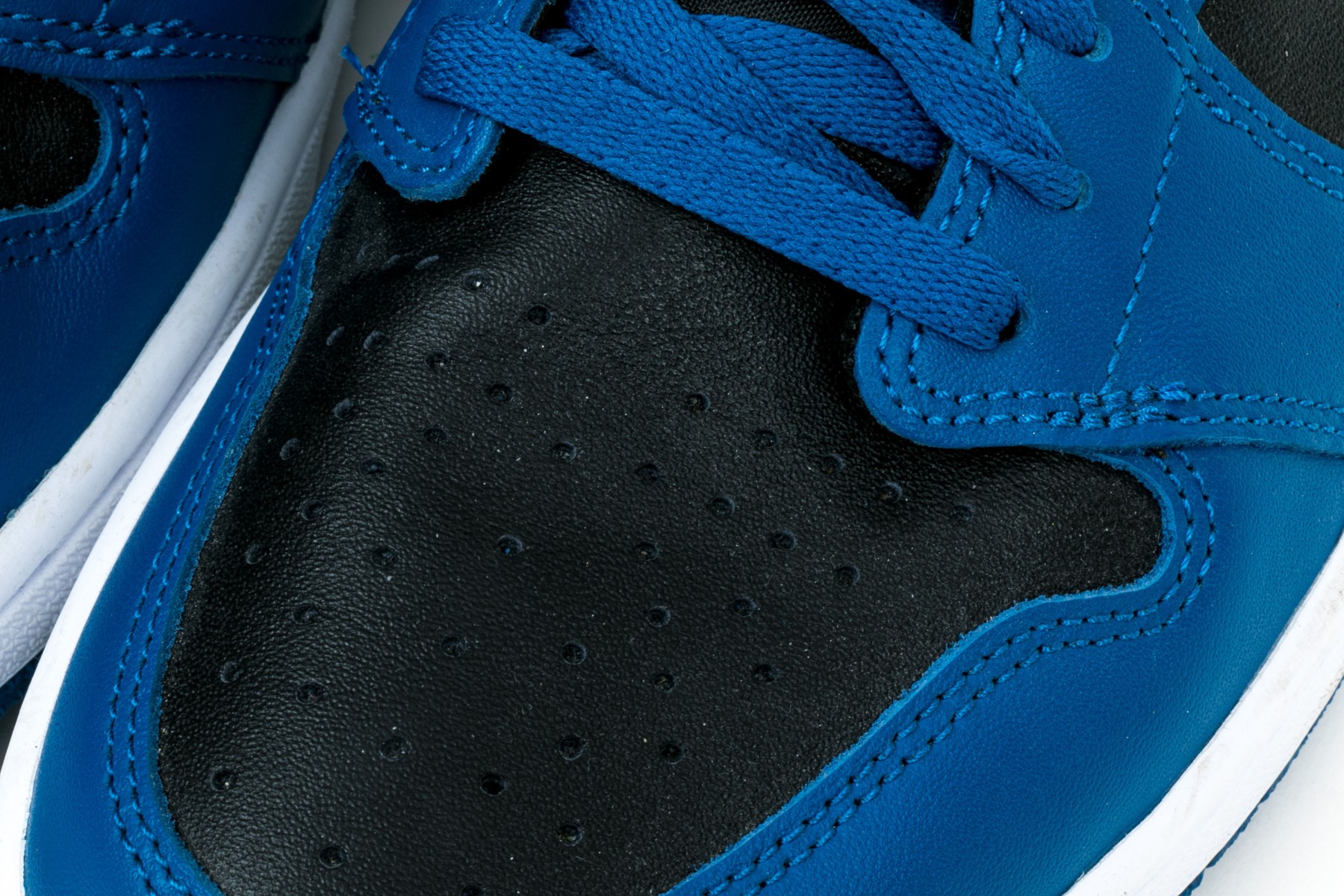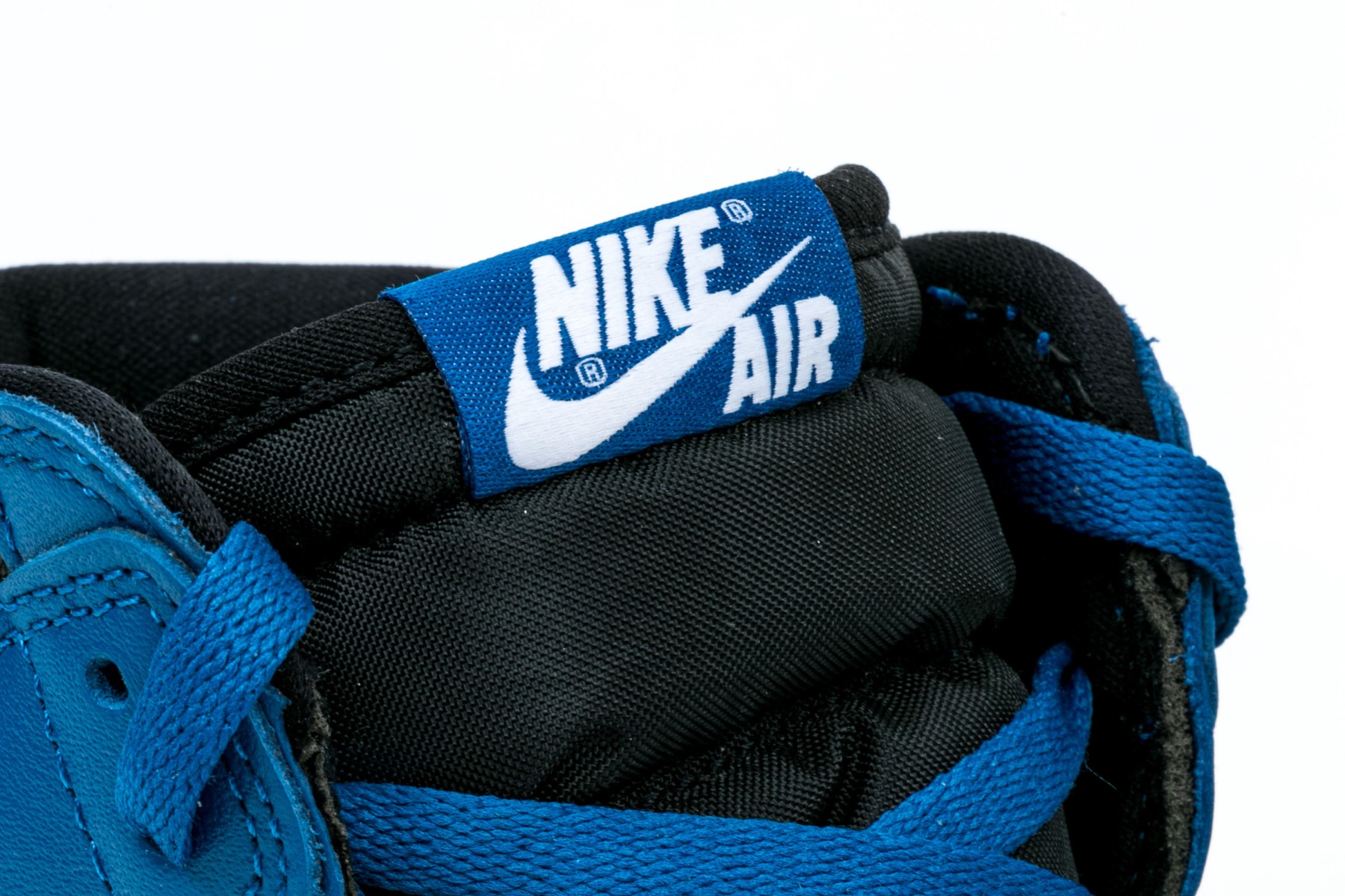 Nike chic leather high top Air Jordans, black, blue, white, size 11