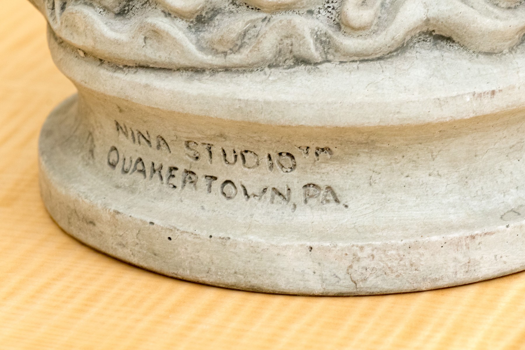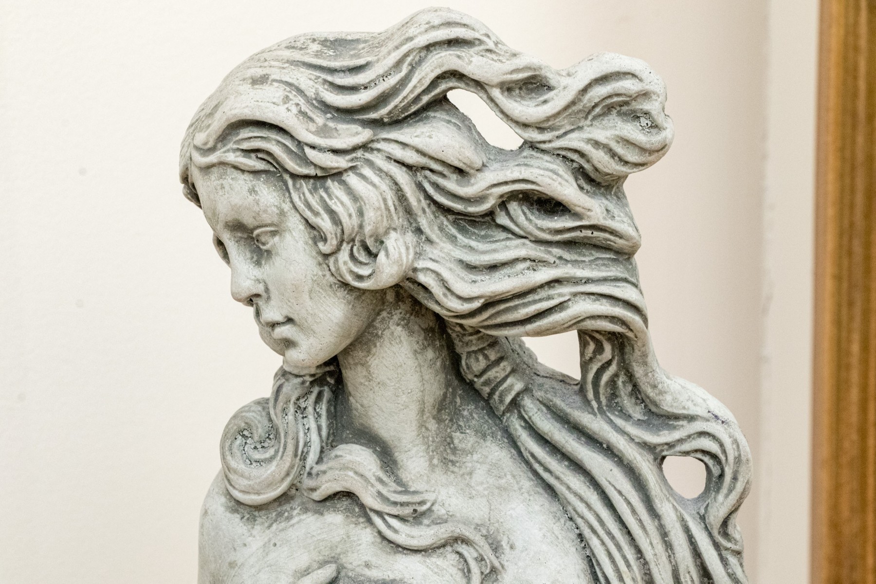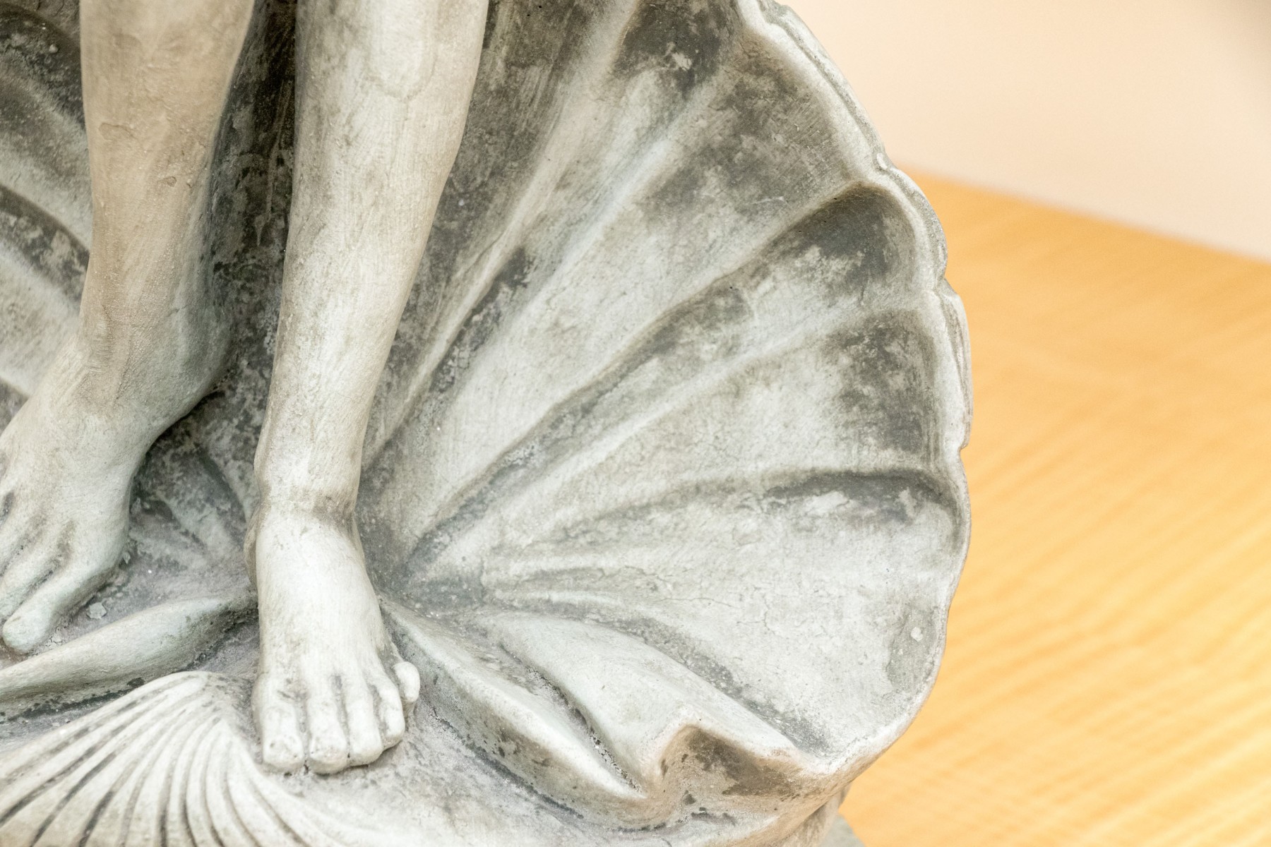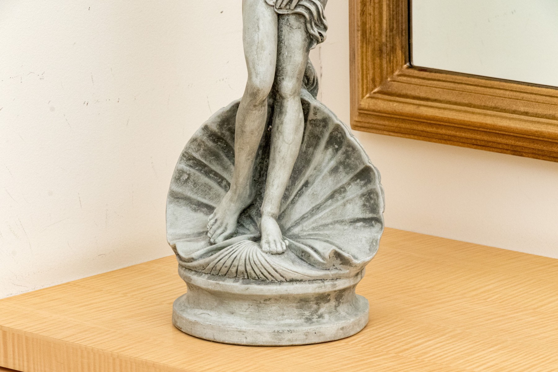 Nina Studio Quakertown, PA reproduction sculpture of Botticelli's Birth of Venus in an antiqued gray finish. Marked near the base.