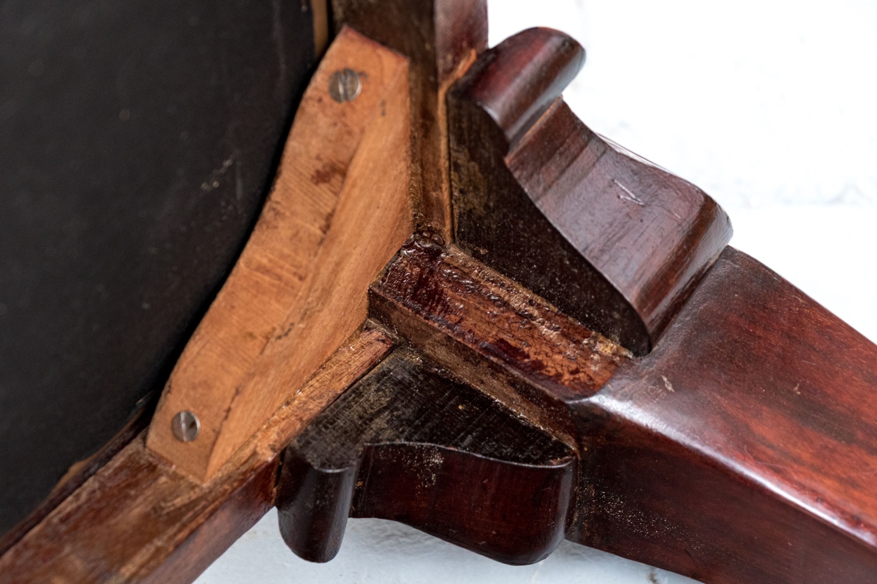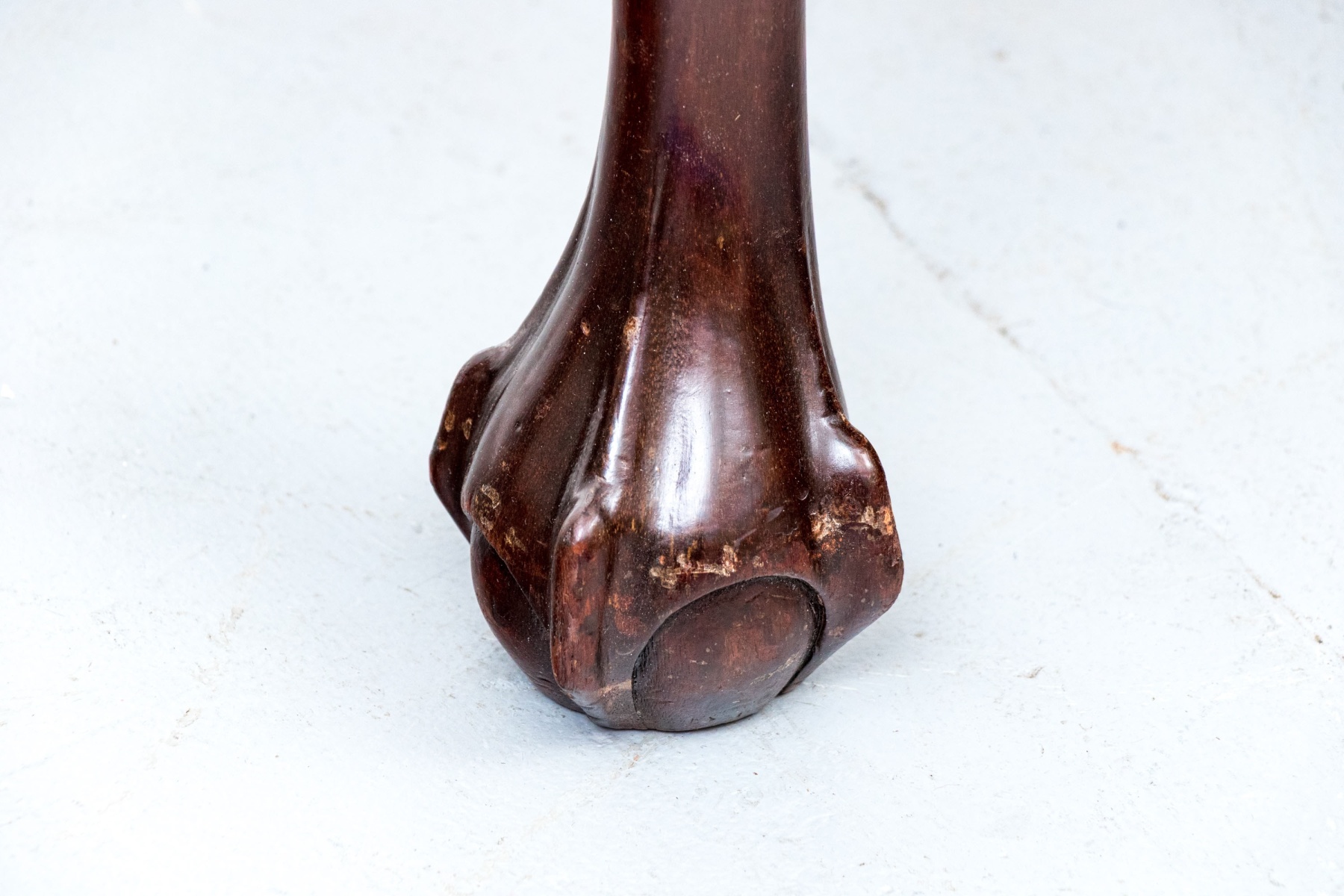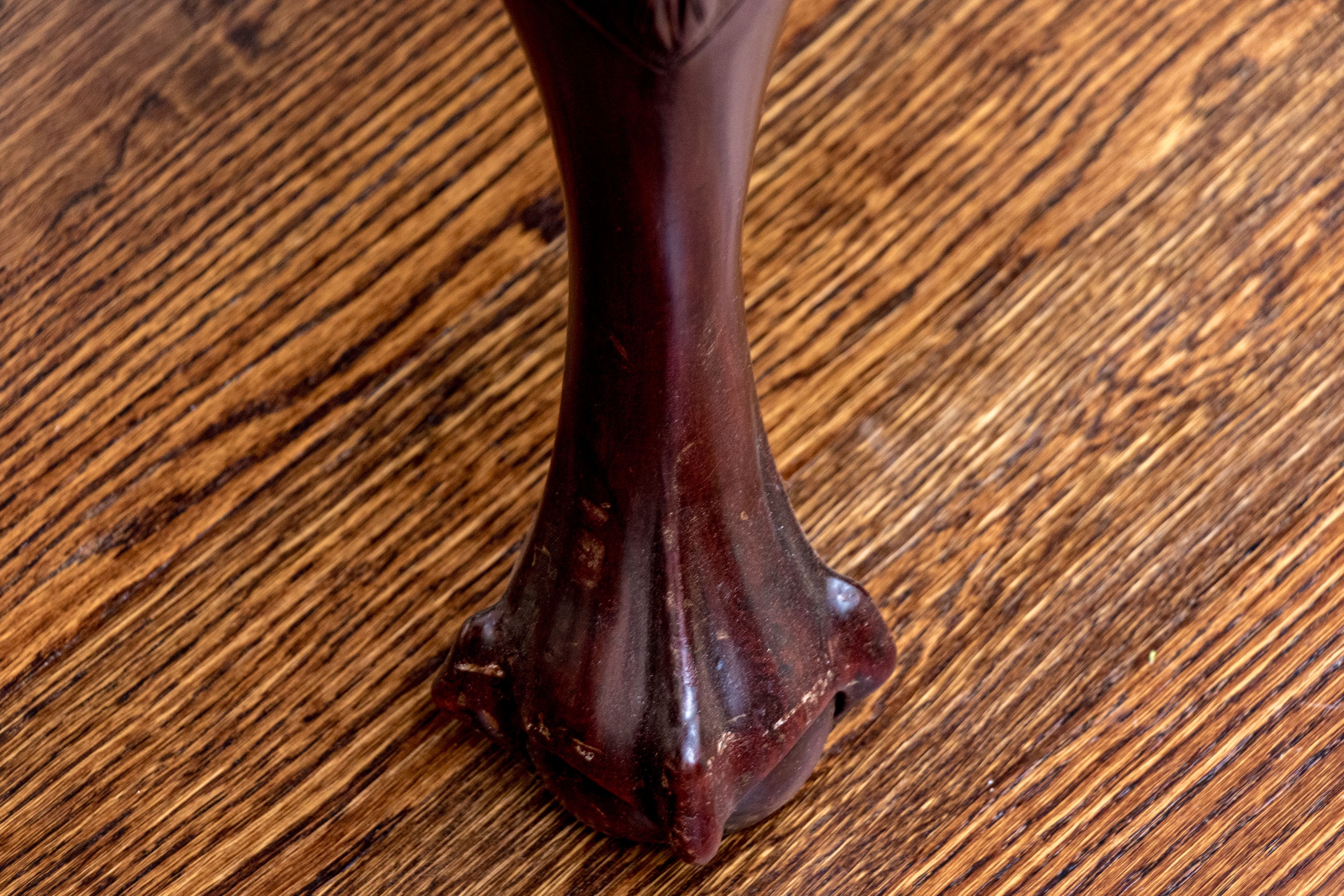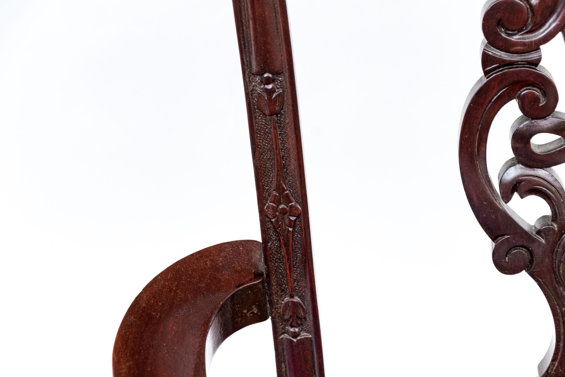 Condition: Please see detail photos. Various signs of acceptable age and use include an old repair to one seat back, one seat with a faint ring mark, marks to the seats, scratches and wear to front edge, legs, knees and arms. The aforementioned is for accuracy as the set retains a strong Chippendale presentation. The joinery is strong and solid.