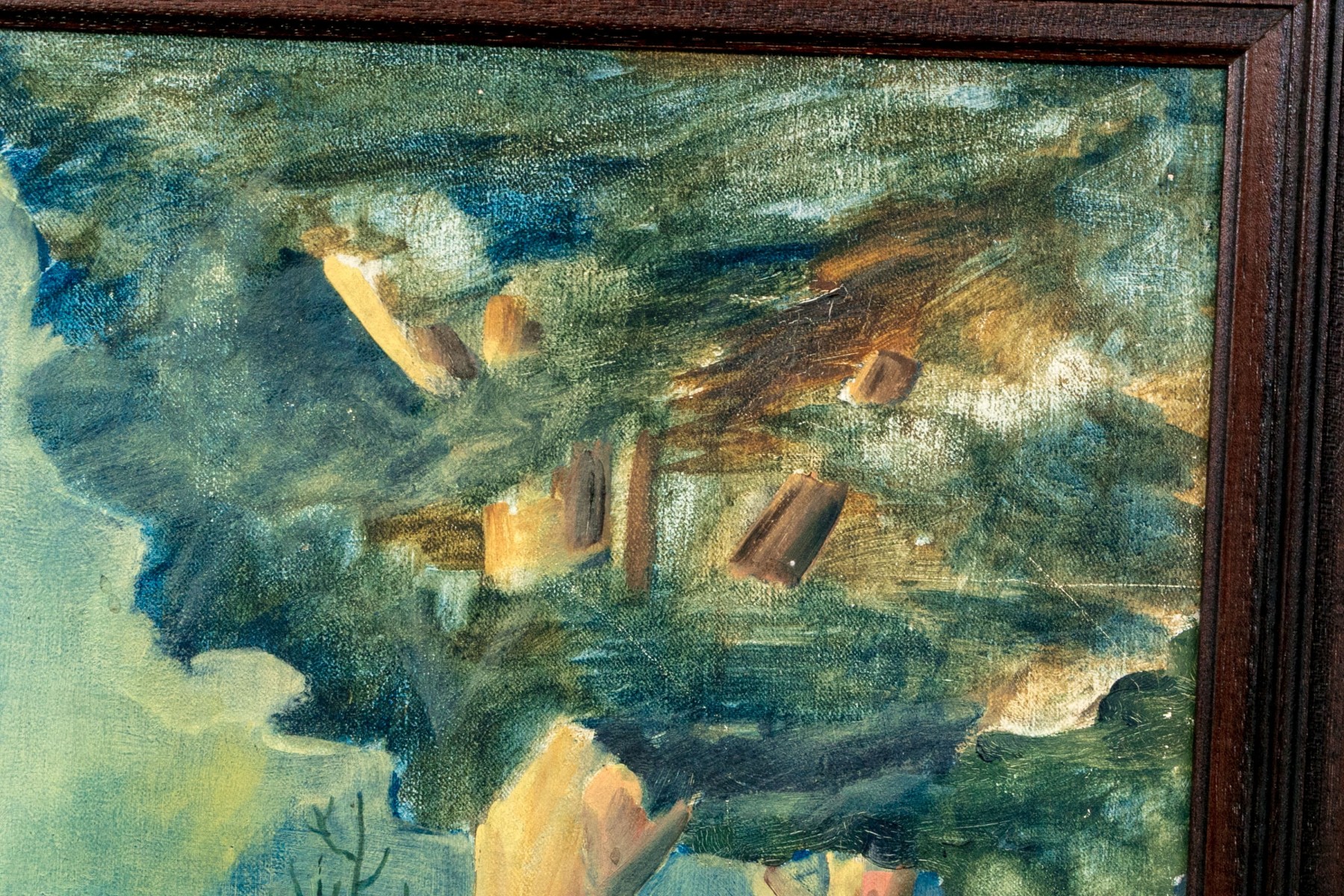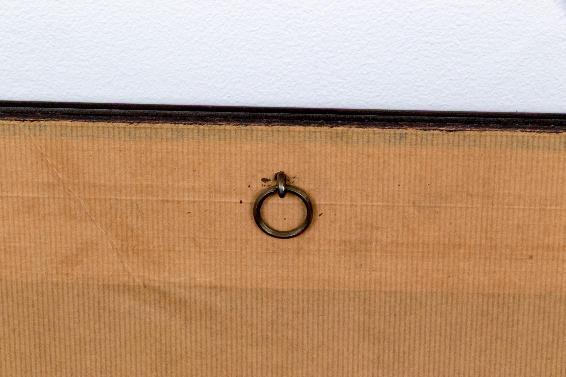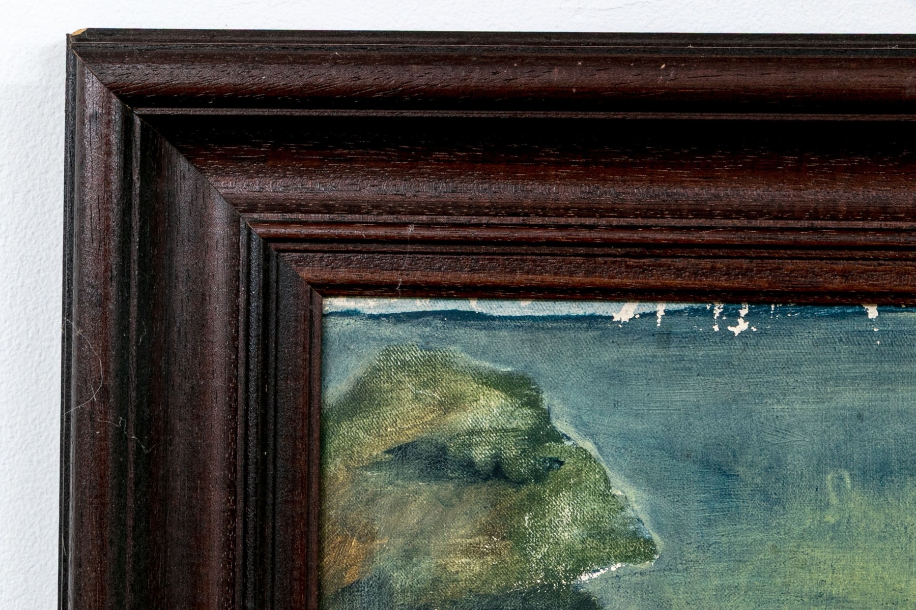 Displayed in a dark brown finished wood frame.