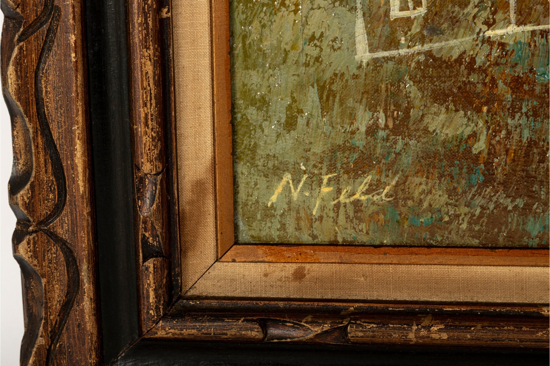 Vintage oil on canvas painting, signed "N. Field". Presented in carved wood frame.